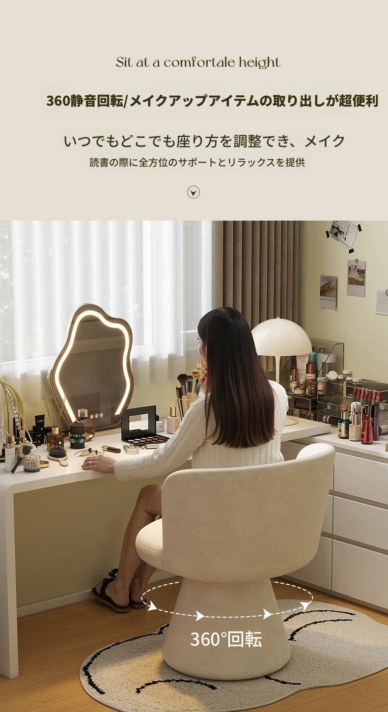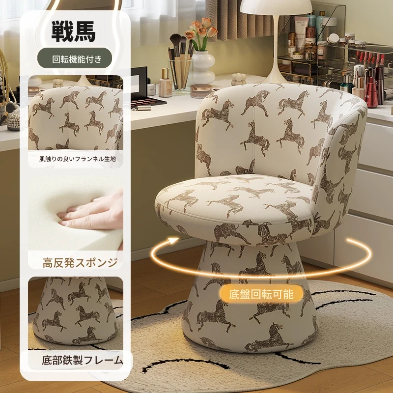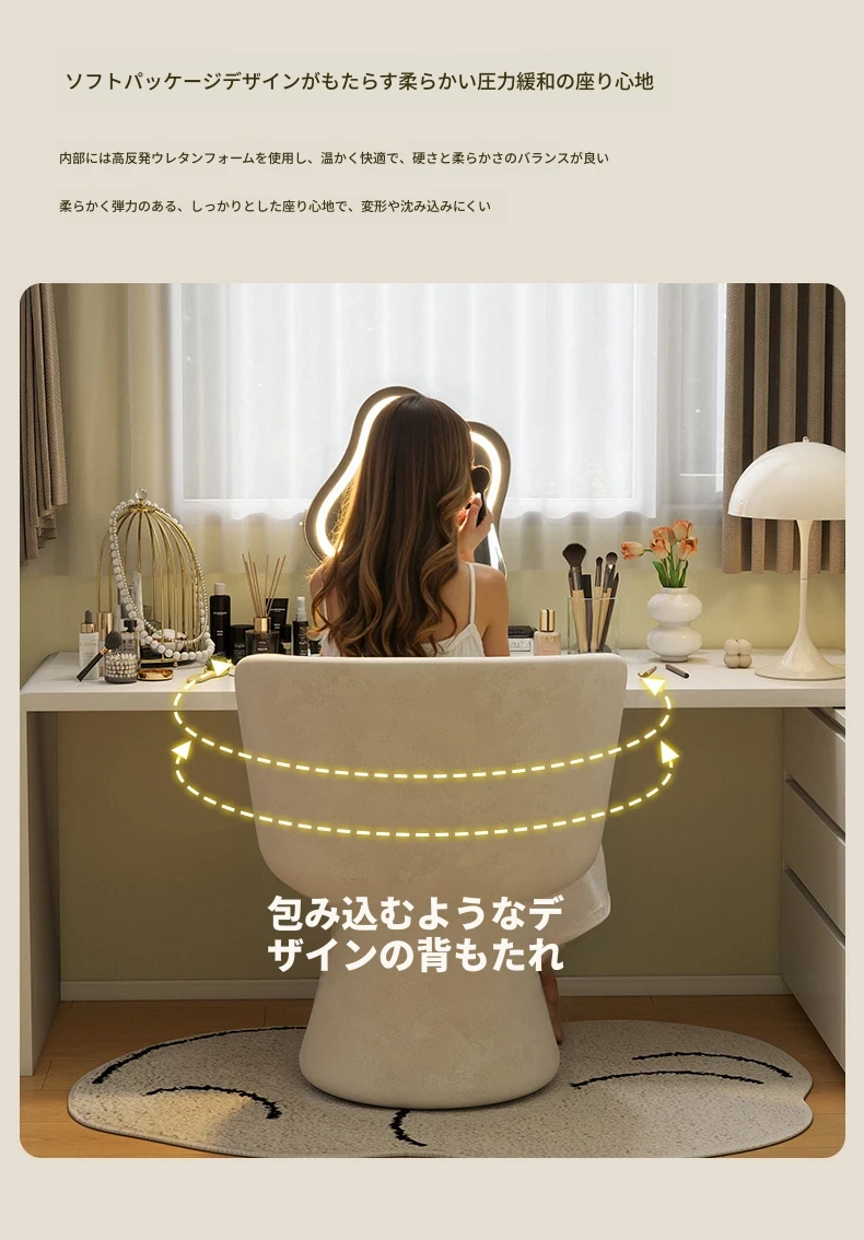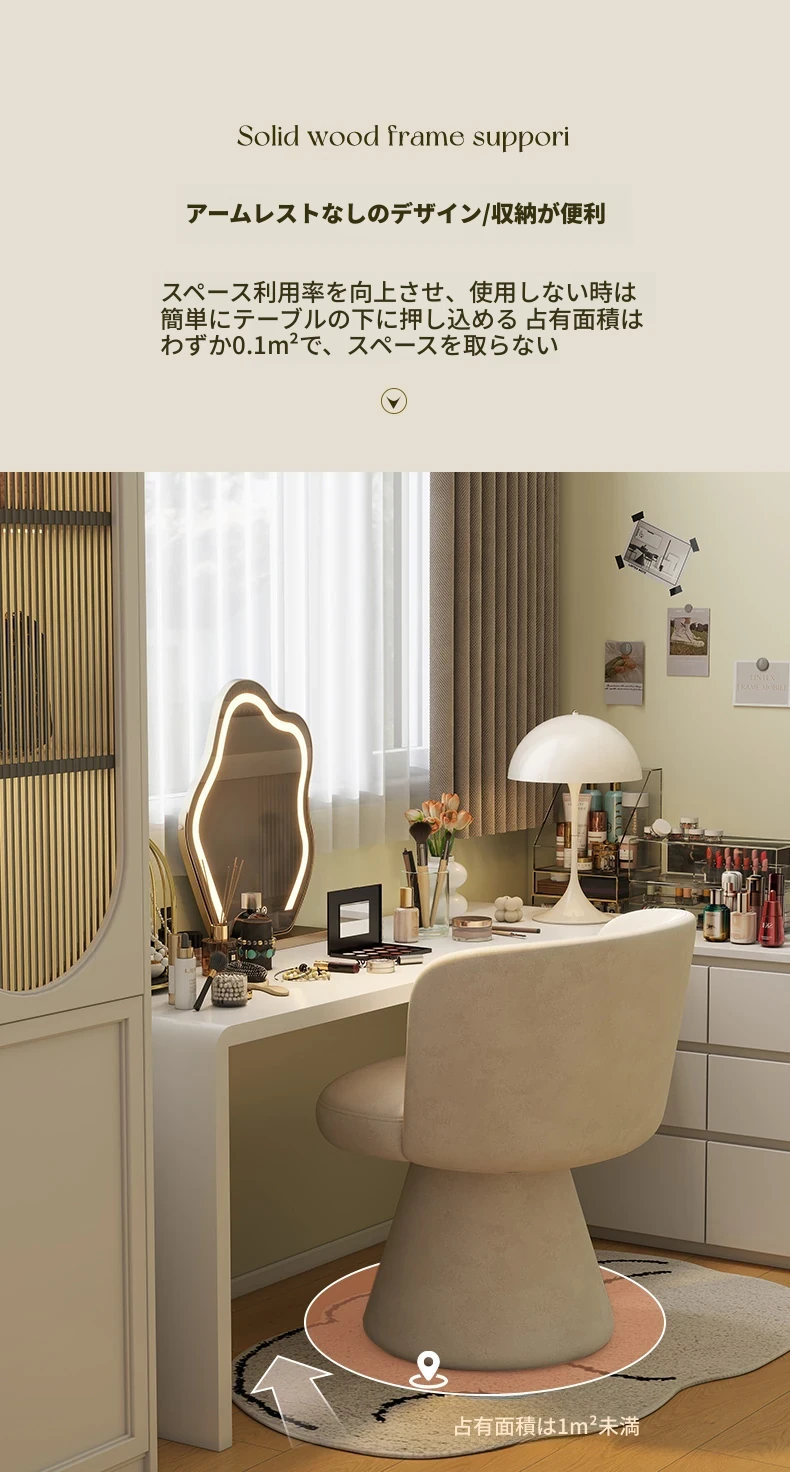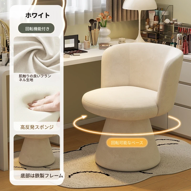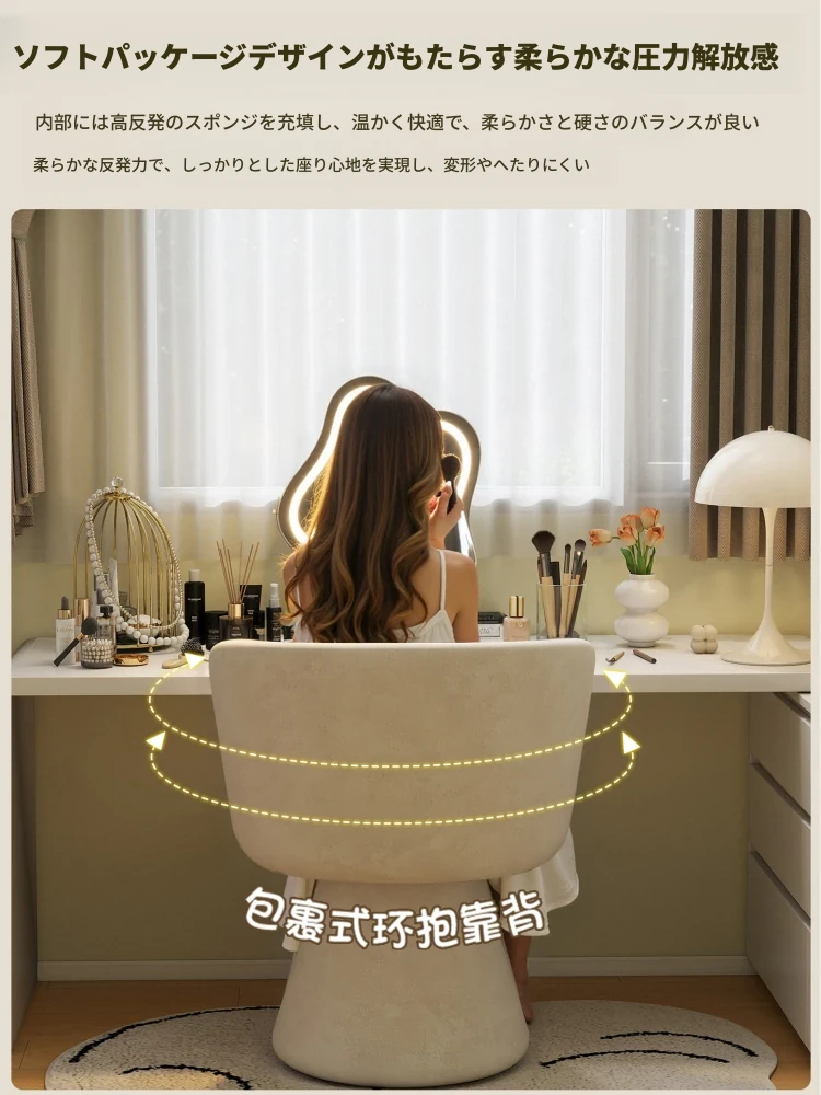 北欧スタイルの回転化粧椅子 - 高級感あふれるデザイン、女子の寝室にぴったりのスタイリッシュなドレッシングテーブル用チェア。デザイナーが手掛けた一人用のクローゼット用スツール。