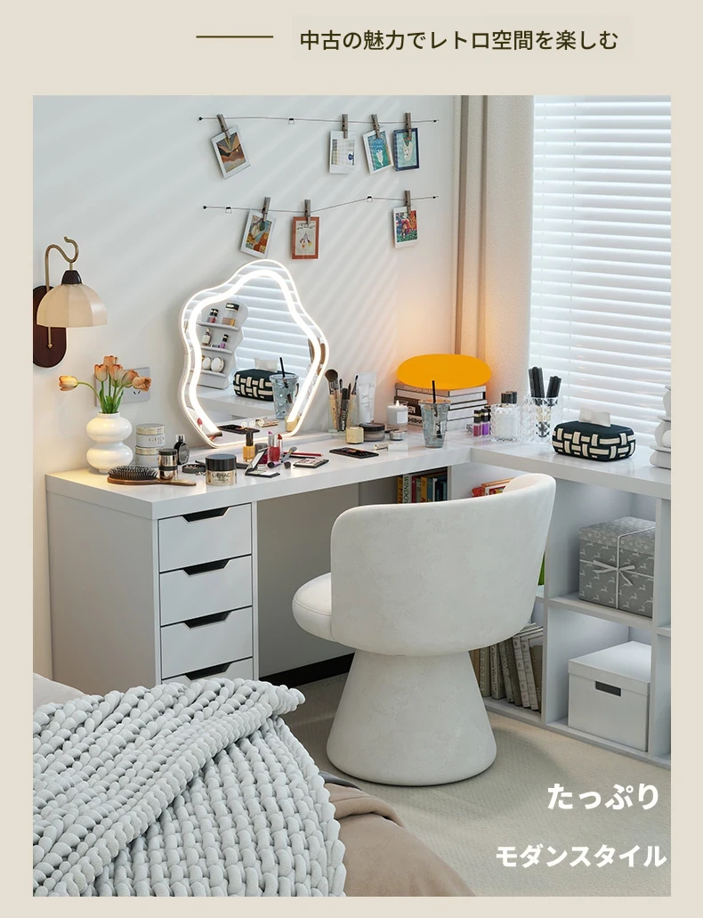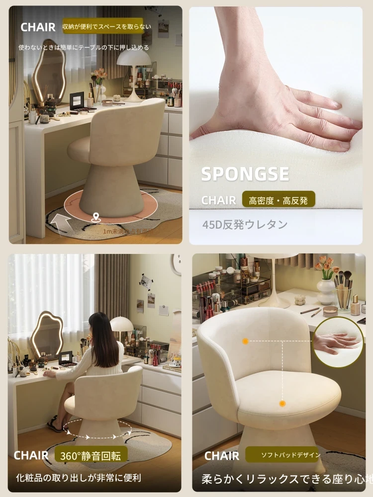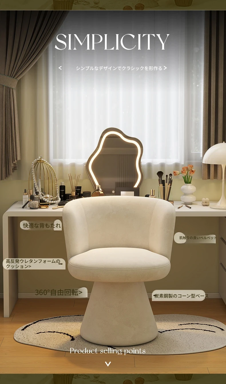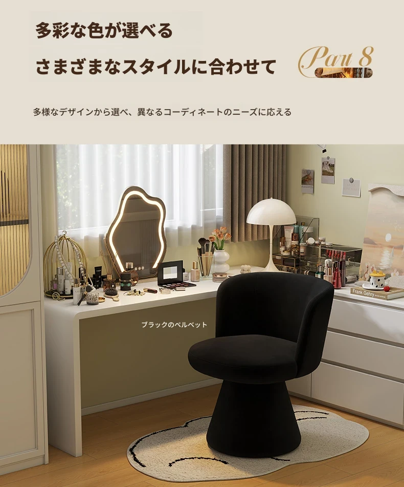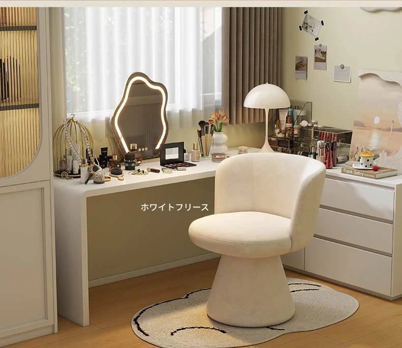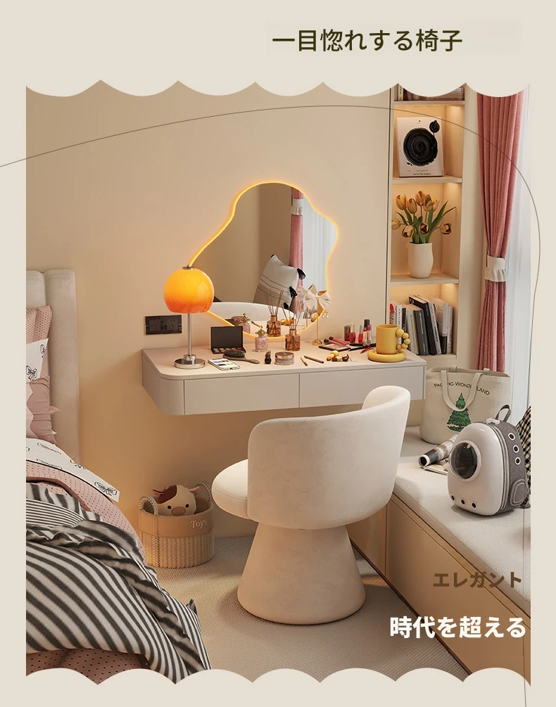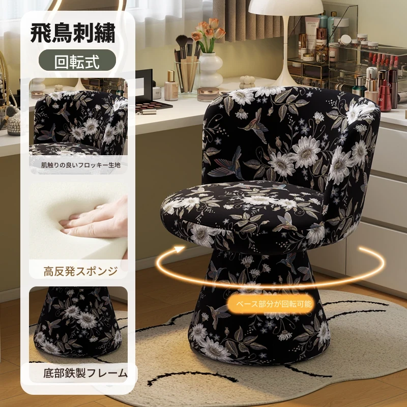 北欧スタイルの回転化粧椅子 - 高級感あふれるデザイン、女子の寝室にぴったりのスタイリッシュなドレッシングテーブル用チェア。デザイナーが手掛けた一人用のクローゼット用スツール。