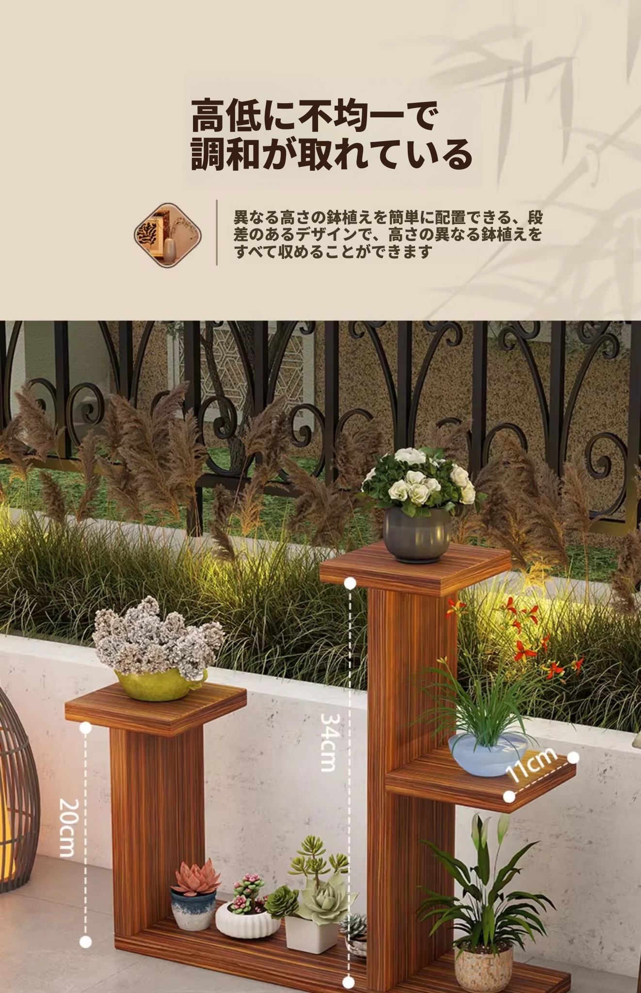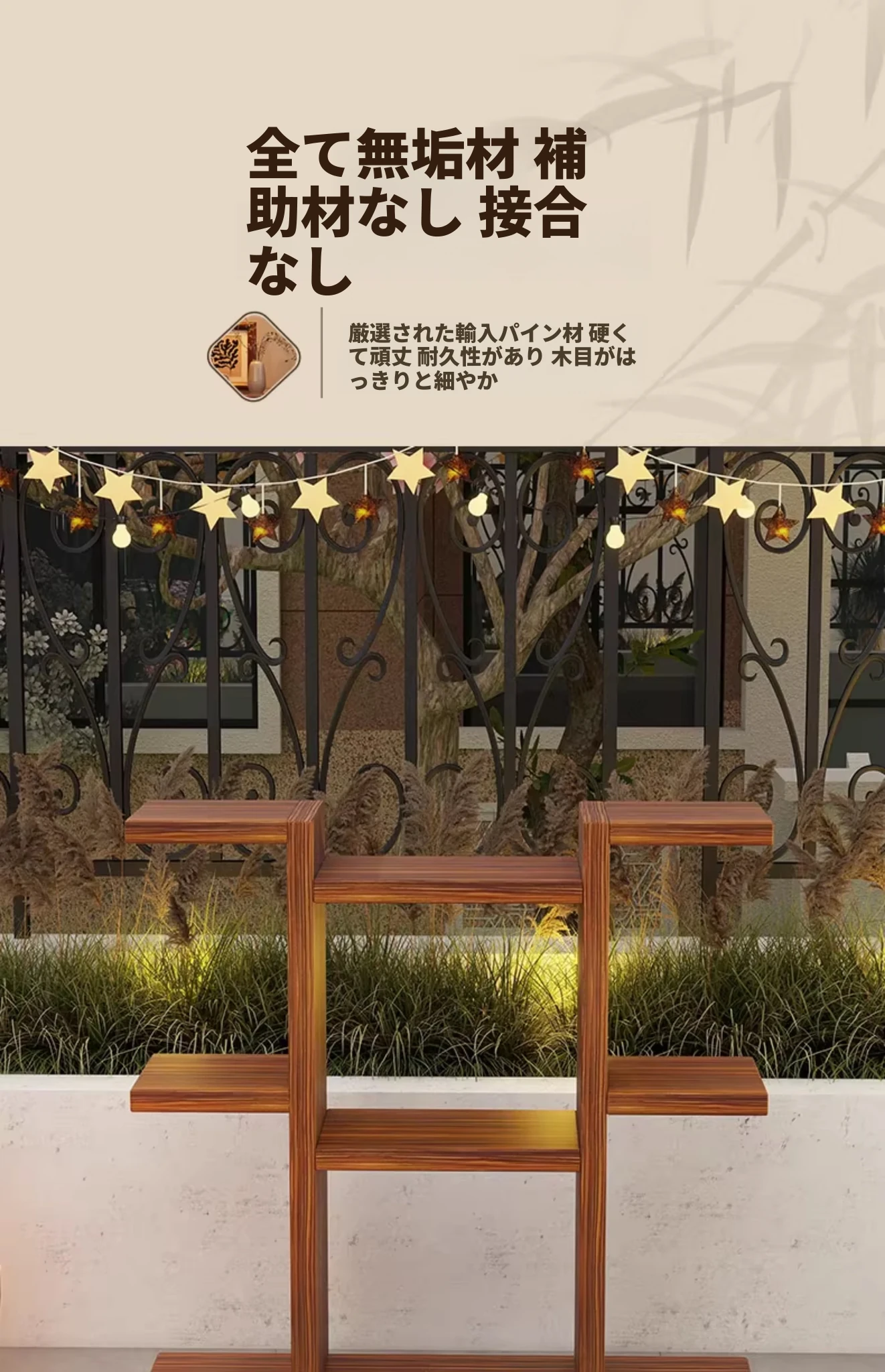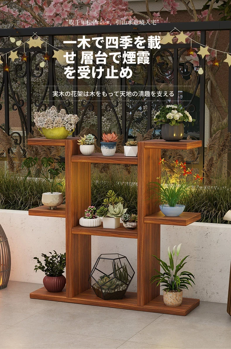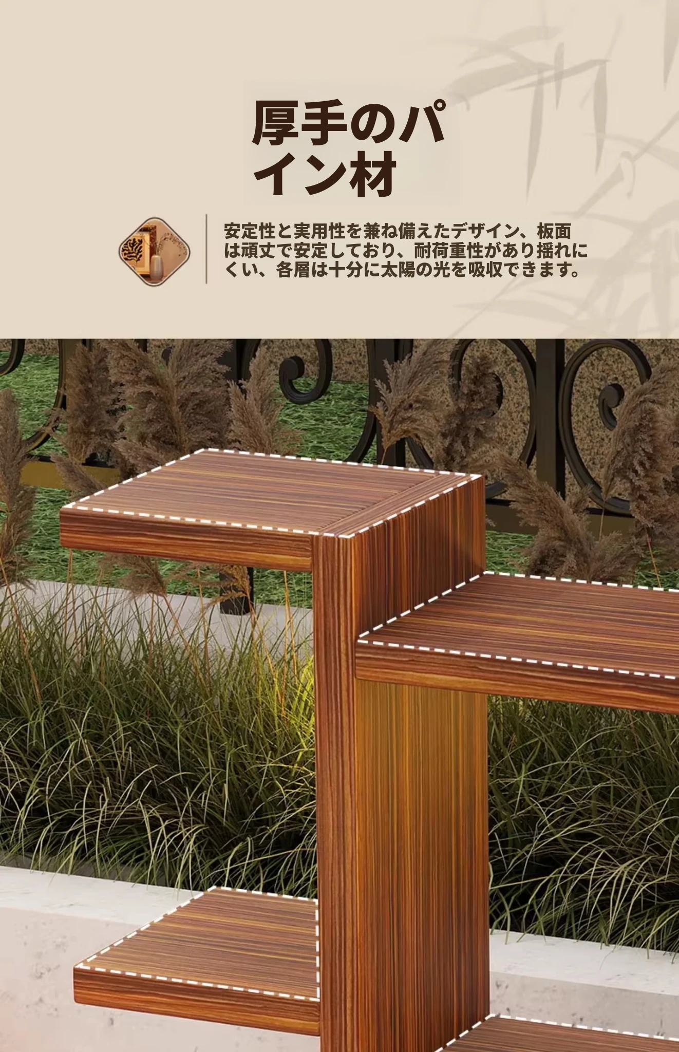 バルコニーフラワースタンド - 屋外庭園用の頑丈な本格木製ラック。リビングや庭にぴったりな特別設計で、多肉植物や観葉植物を美しくディスプレイ!広めのスペースで、あなたのガーデンを彩ります。