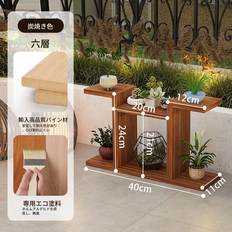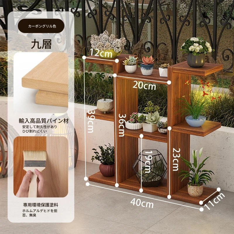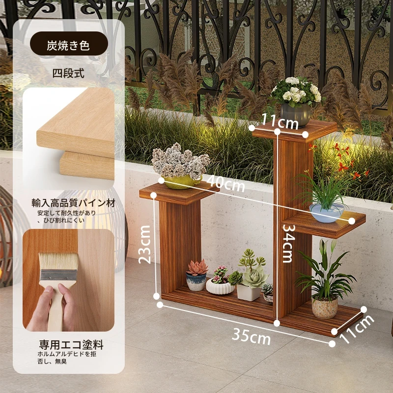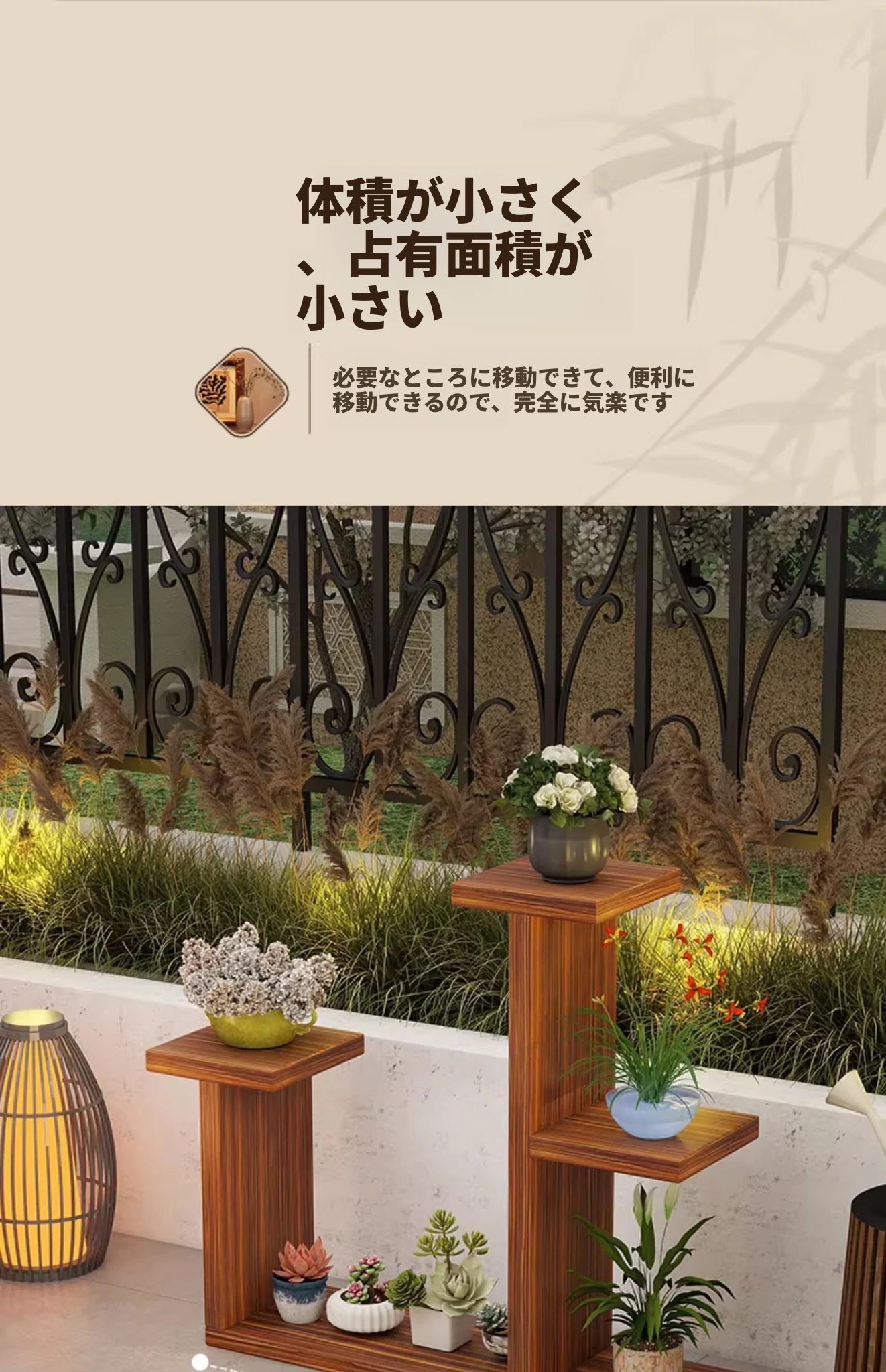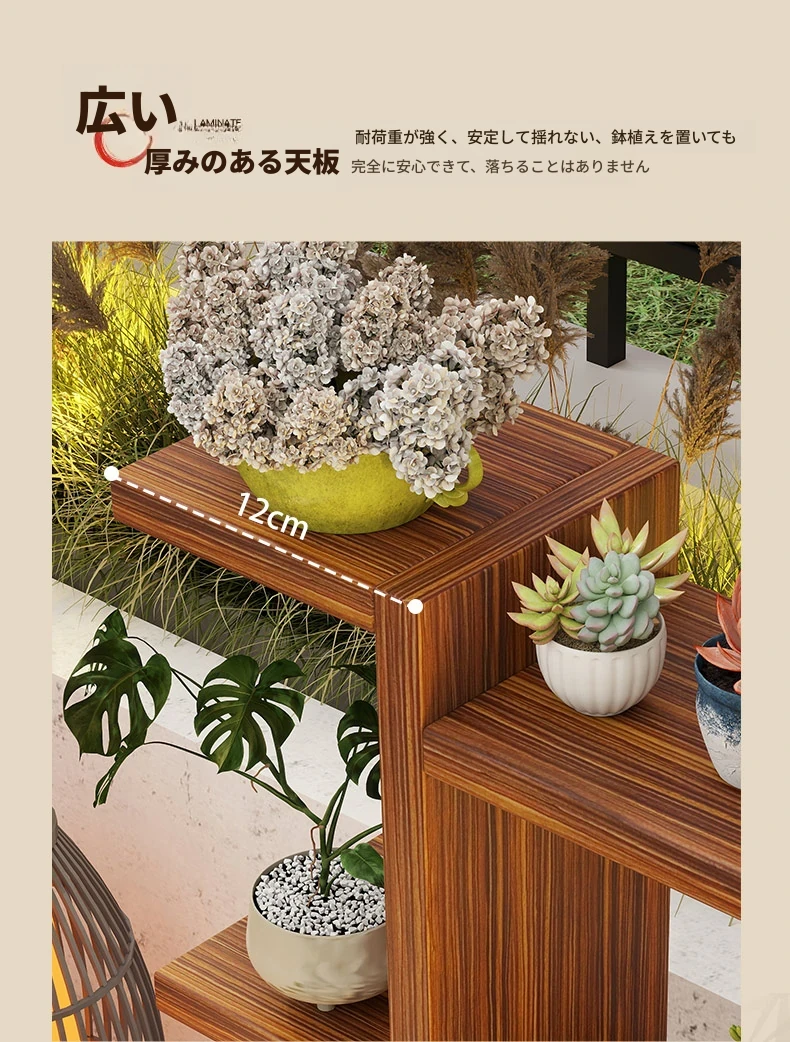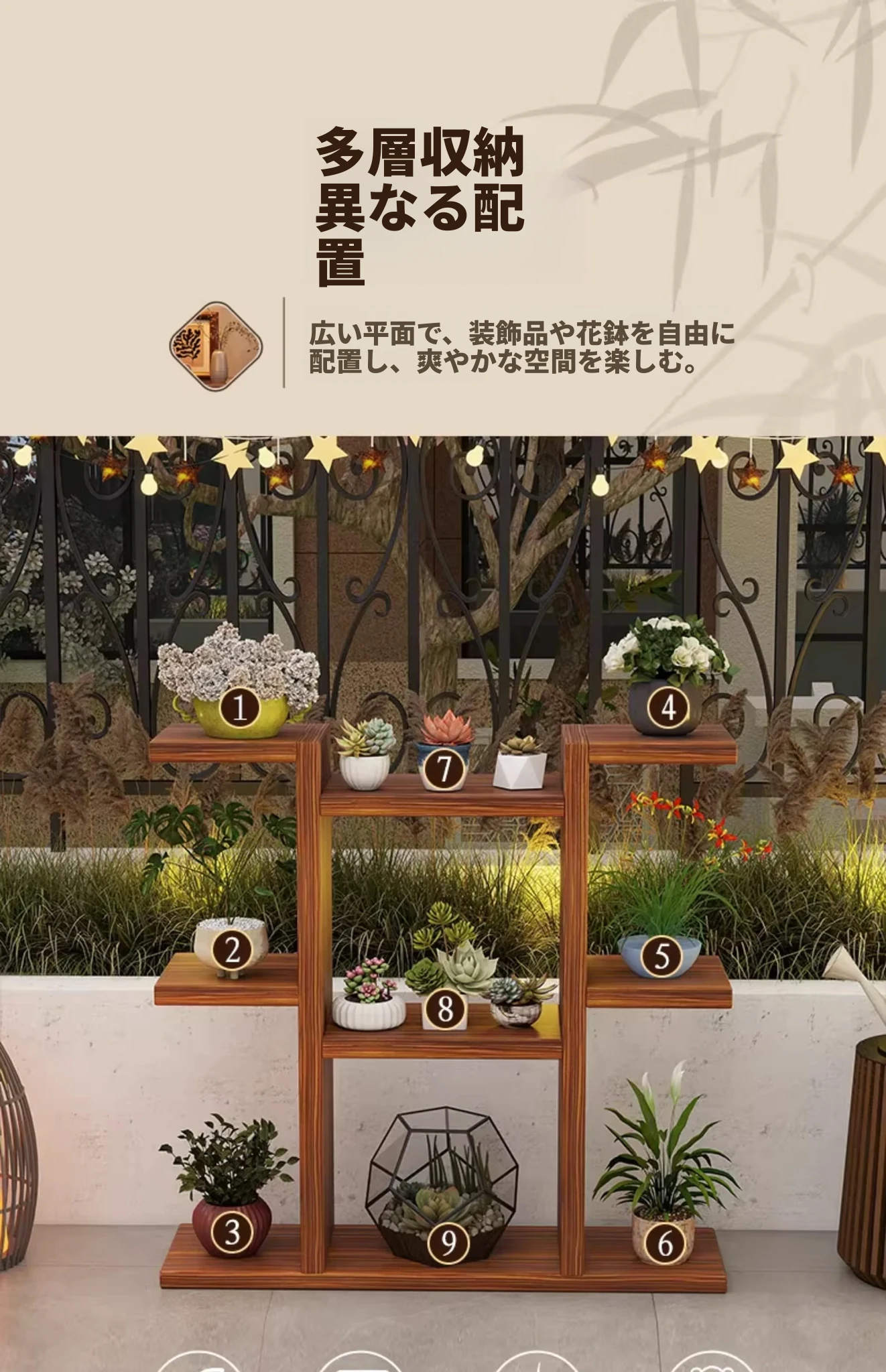 バルコニーフラワースタンド - 屋外庭園用の頑丈な本格木製ラック。リビングや庭にぴったりな特別設計で、多肉植物や観葉植物を美しくディスプレイ!広めのスペースで、あなたのガーデンを彩ります。