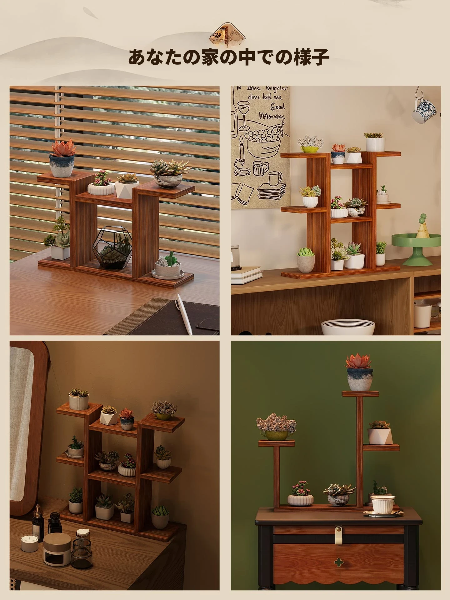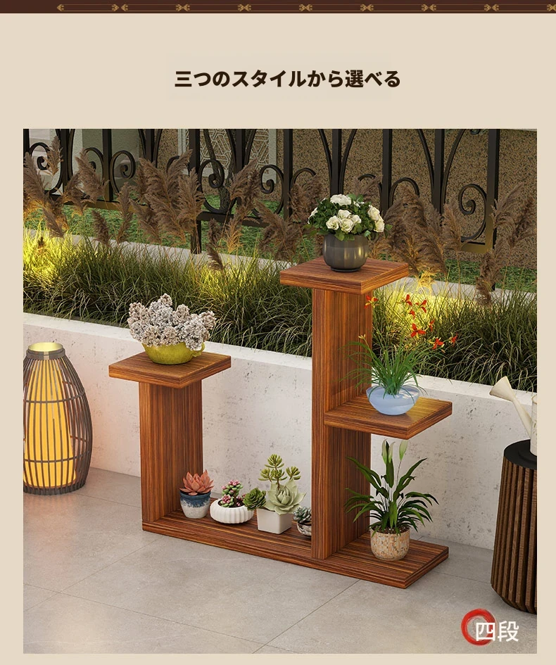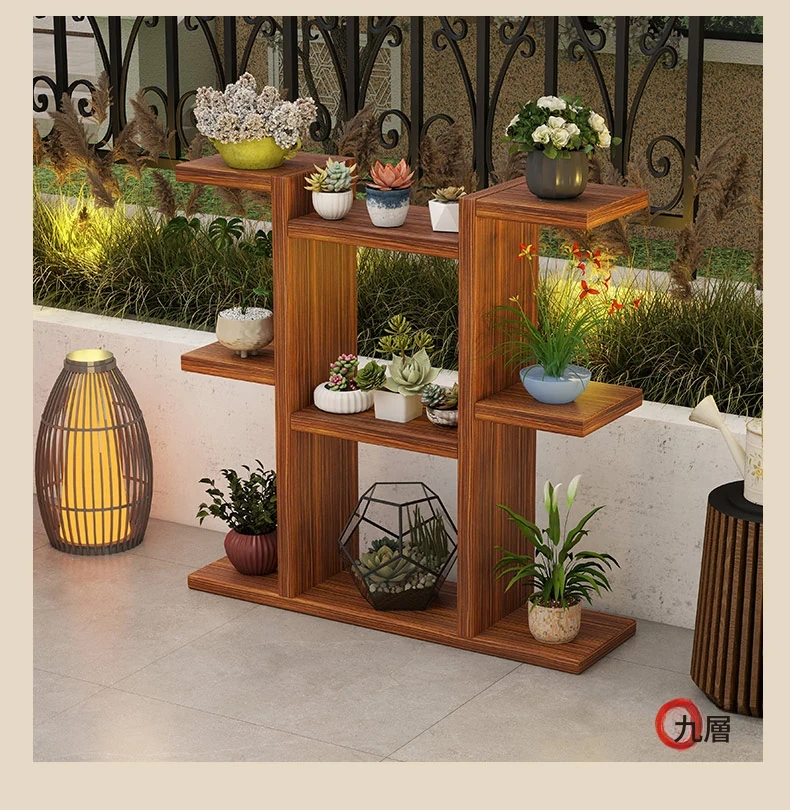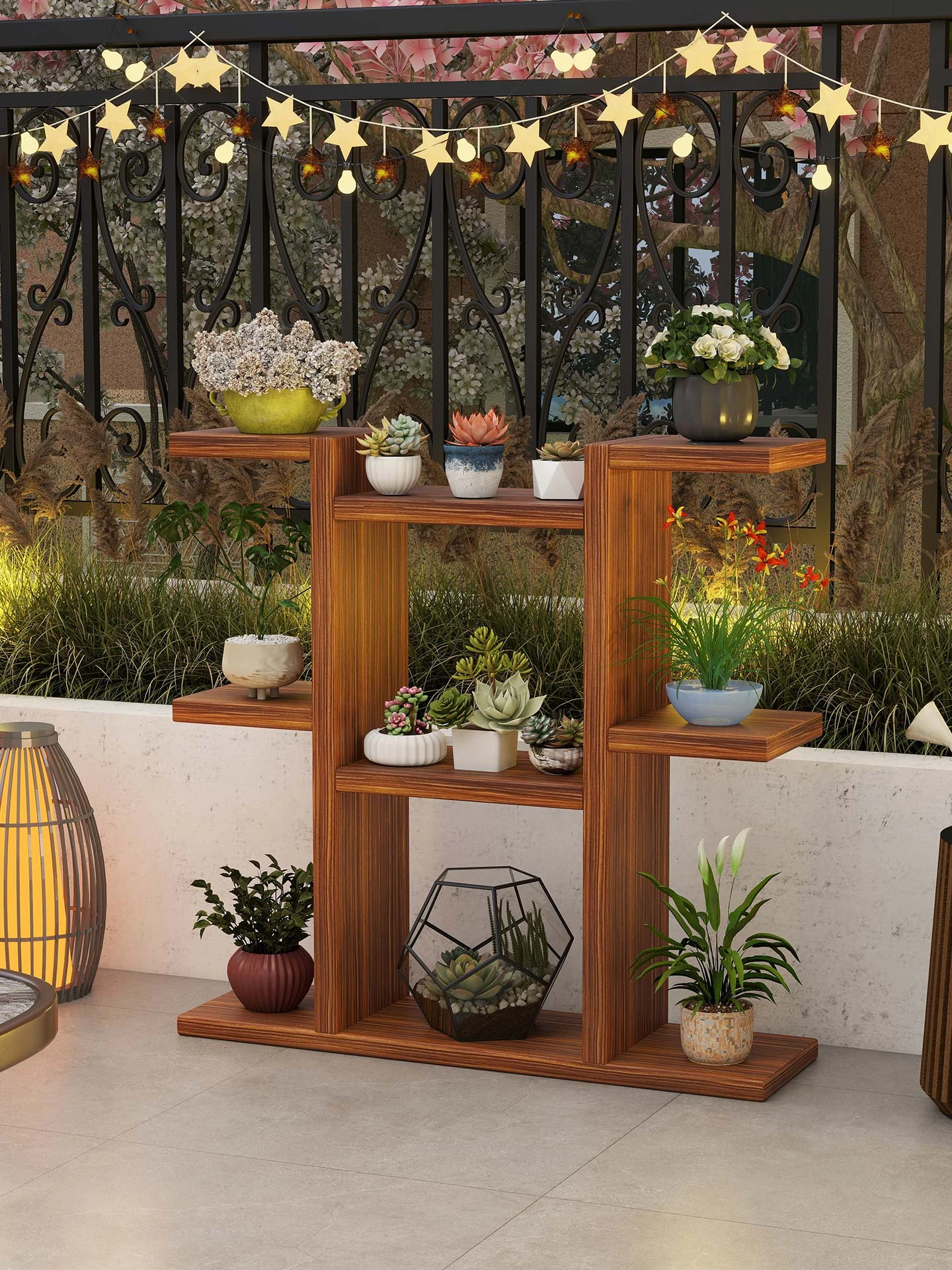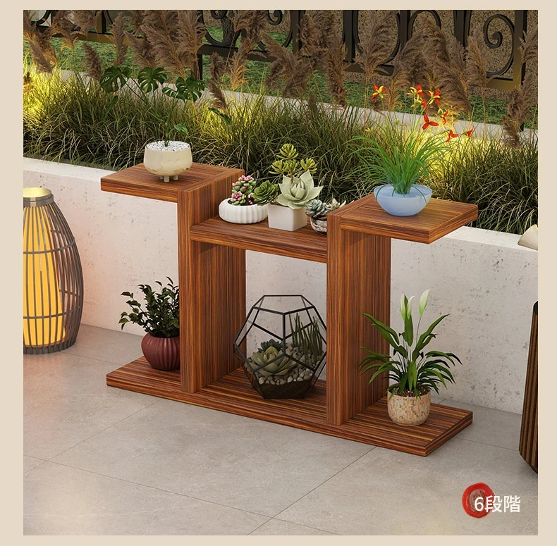 バルコニーフラワースタンド - 屋外庭園用の頑丈な本格木製ラック。リビングや庭にぴったりな特別設計で、多肉植物や観葉植物を美しくディスプレイ!広めのスペースで、あなたのガーデンを彩ります。