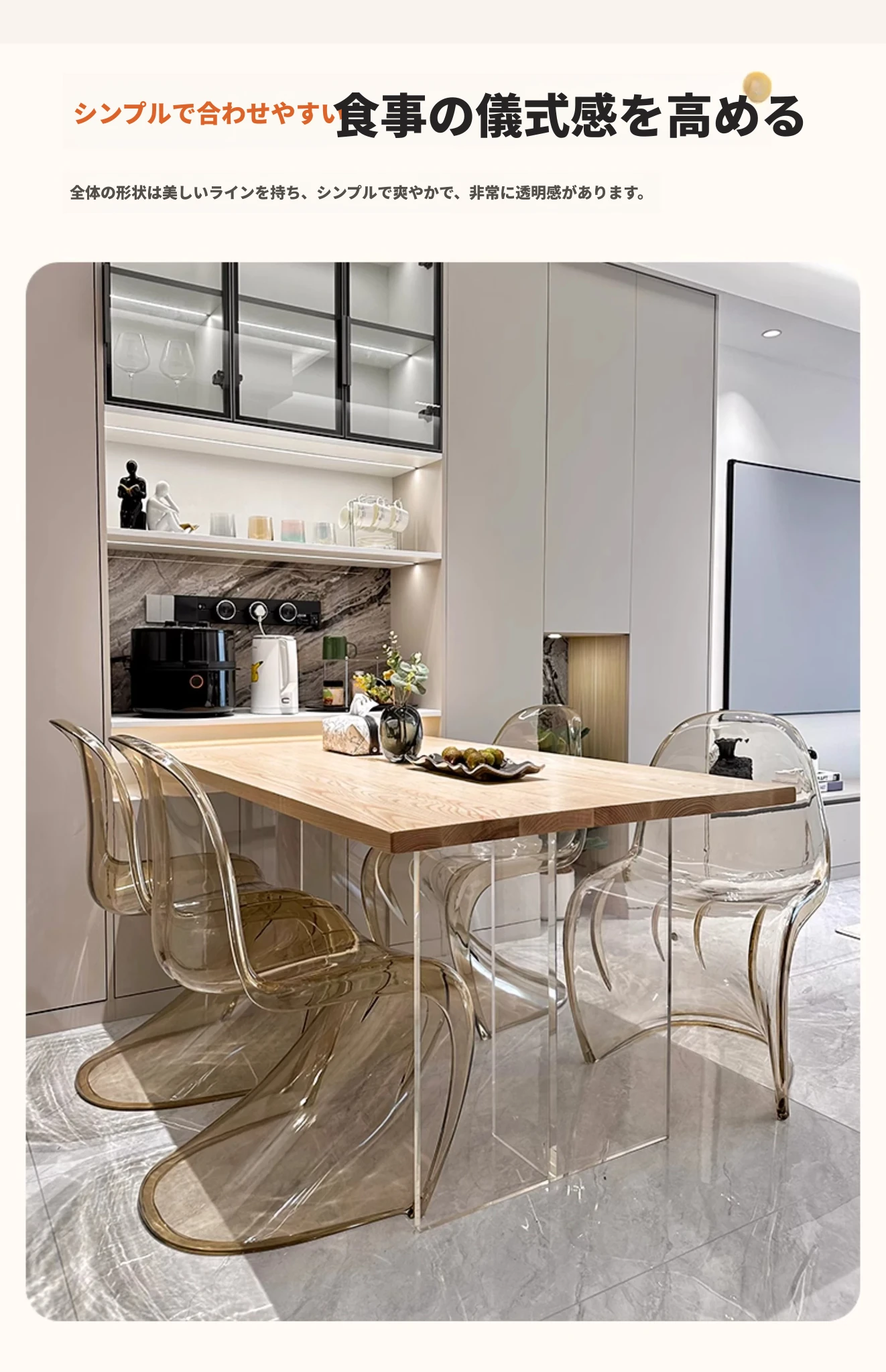 パンドンチェア|おしゃれな透明プラスチック製の北欧風ダイニングチェア|シンプルでモダンなデザイン|化粧台にもぴったりな背もたれ付き椅子|インテリアに映える!