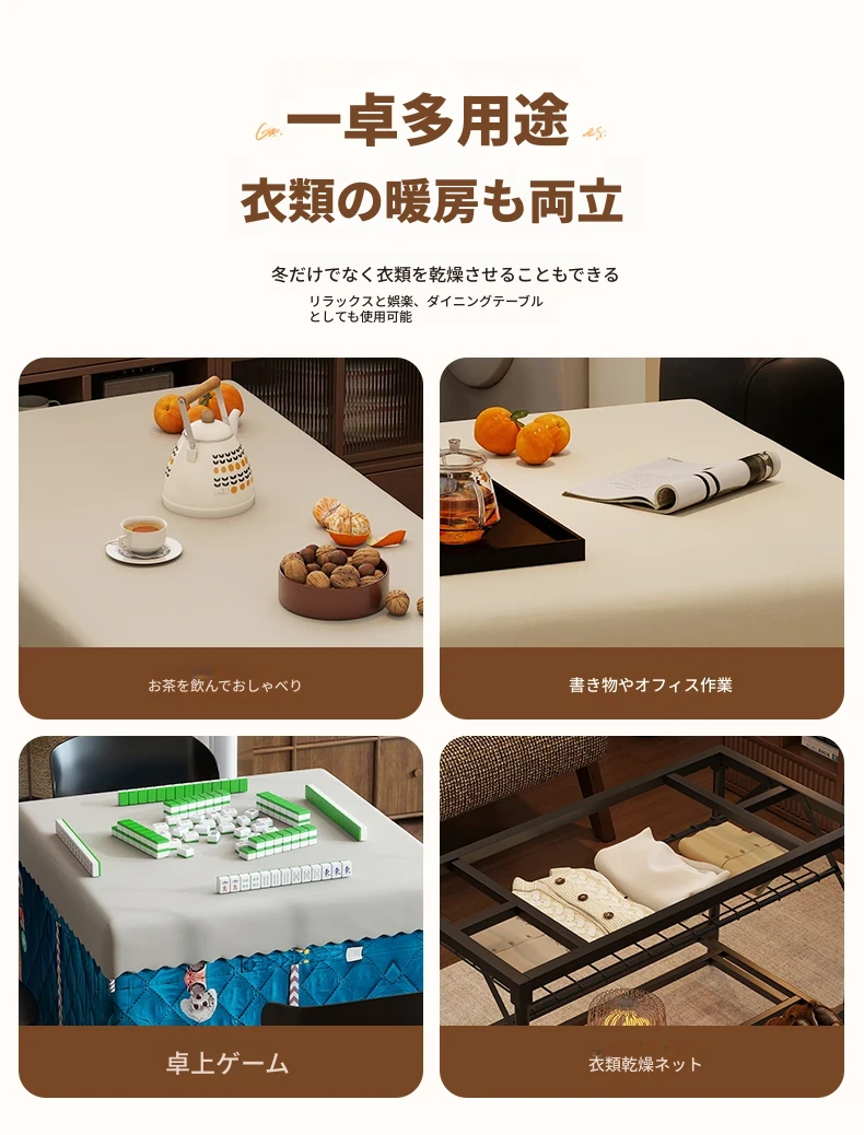 冬の寒さを和らげる!家庭用暖房テーブル - コンパクトで便利な長方形のデザイン、作業や食事に最適。暖かくて快適なひとときをお楽しみください!