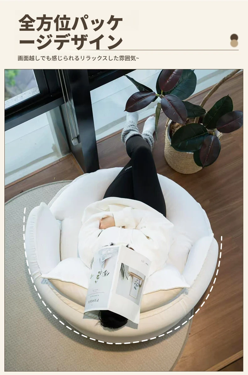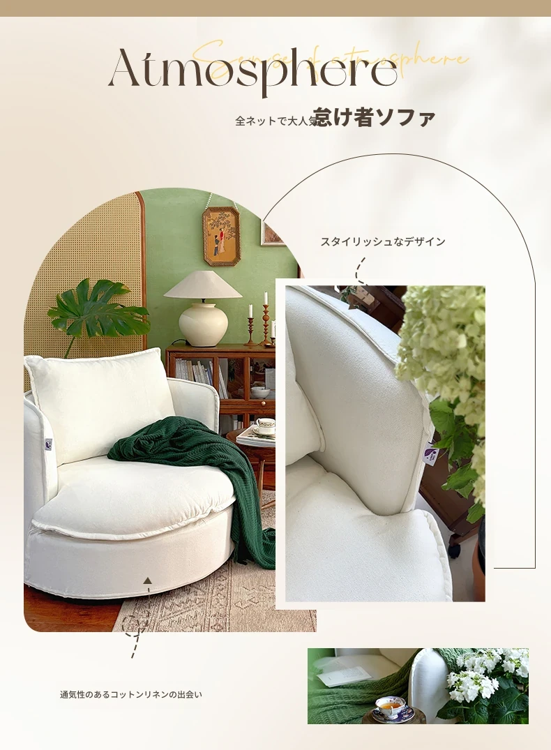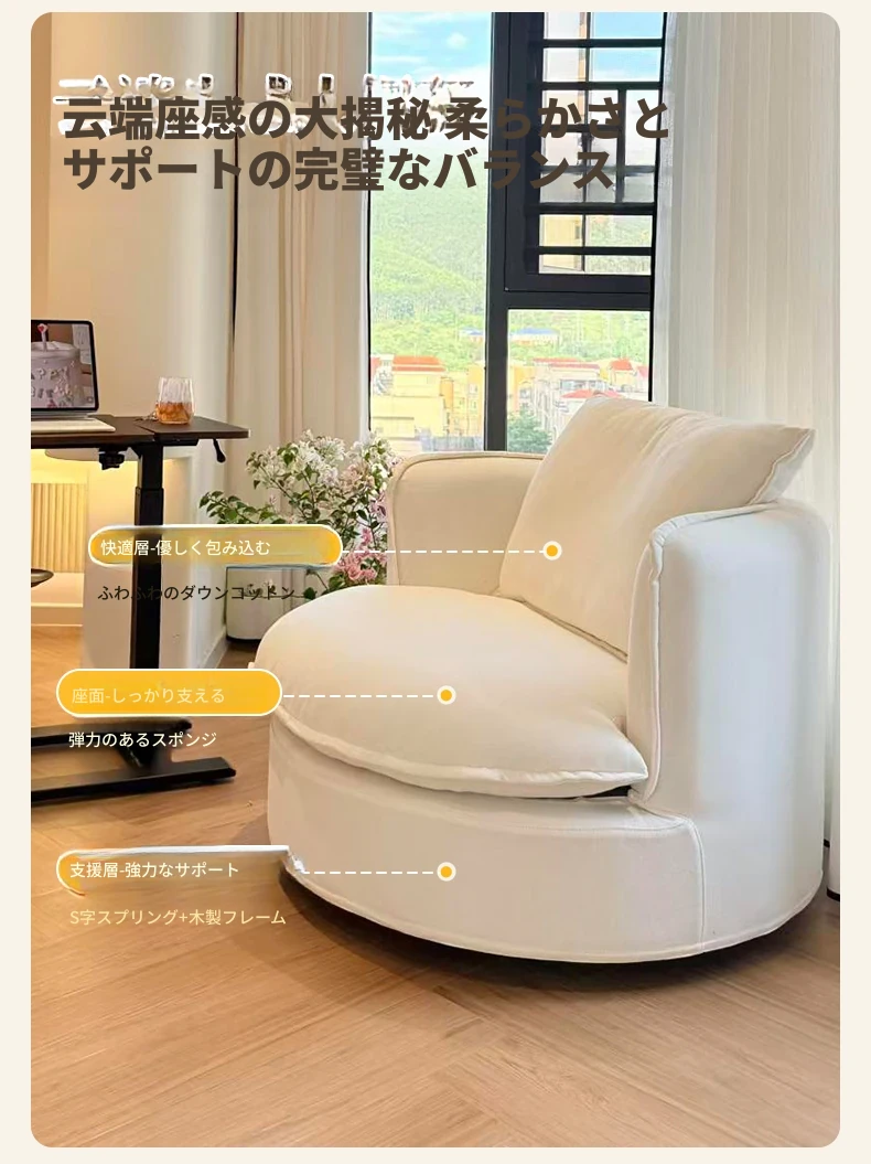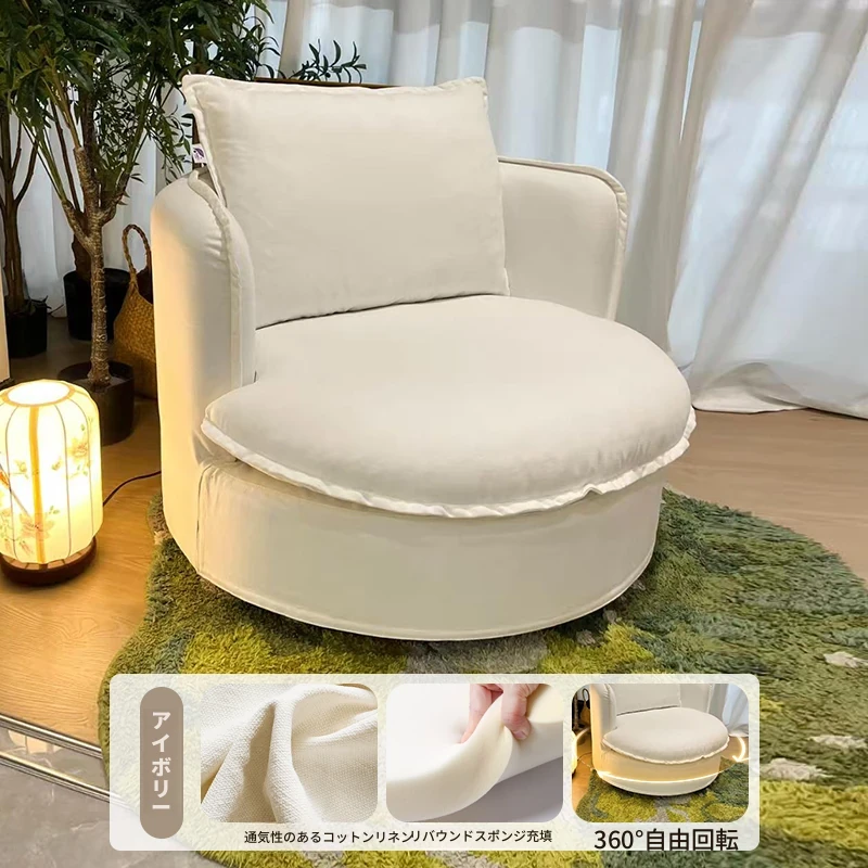 洗えるハンバーガーソファチェア|回転式の一人掛けソファ|シンプルでスタイリッシュなリビング・バルコニー用リラックスチェア|高品質コットンリネン素材使用で快適さ抜群!