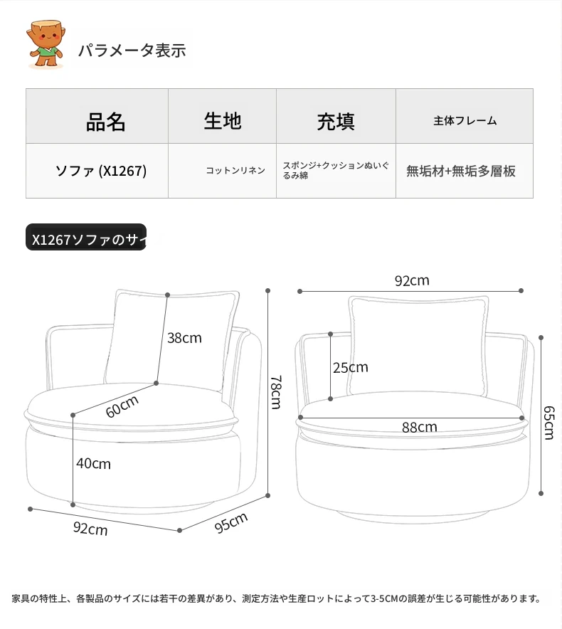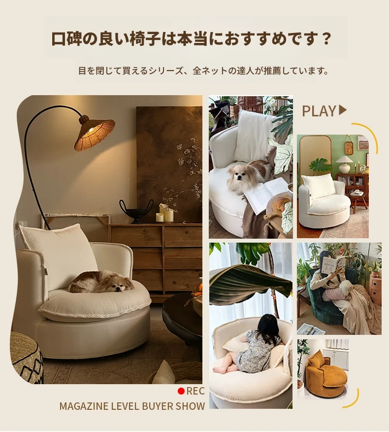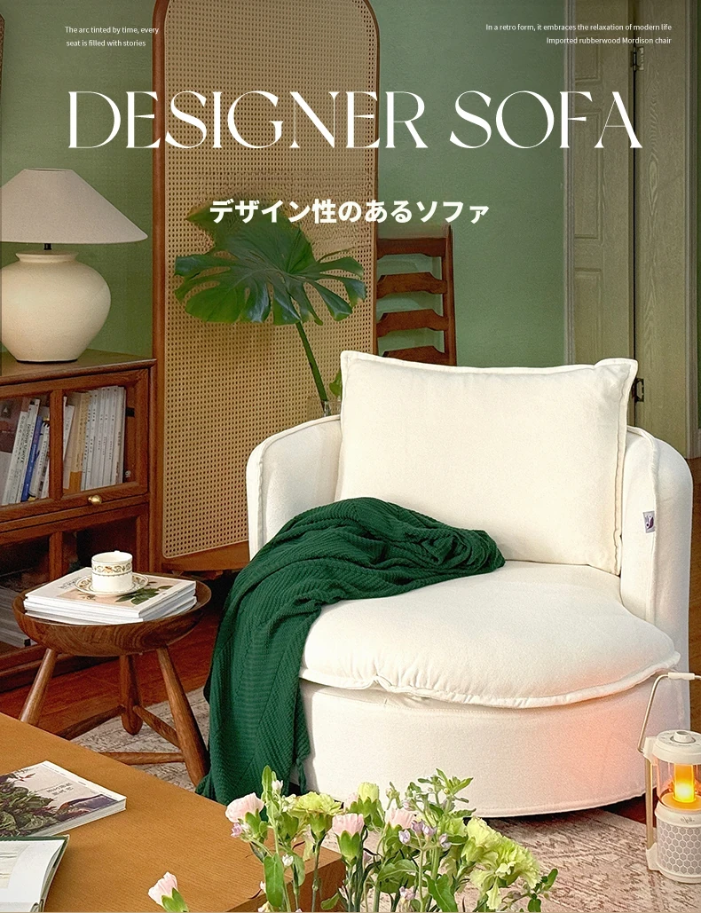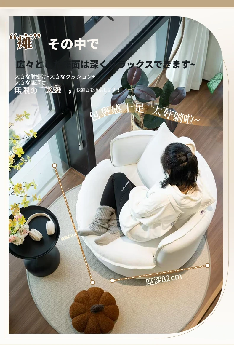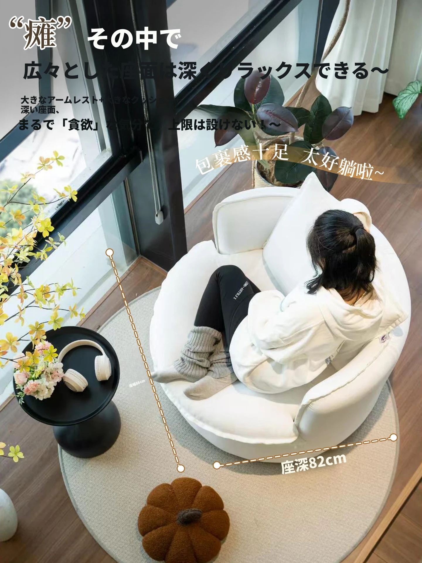 洗えるハンバーガーソファチェア|回転式の一人掛けソファ|シンプルでスタイリッシュなリビング・バルコニー用リラックスチェア|高品質コットンリネン素材使用で快適さ抜群!