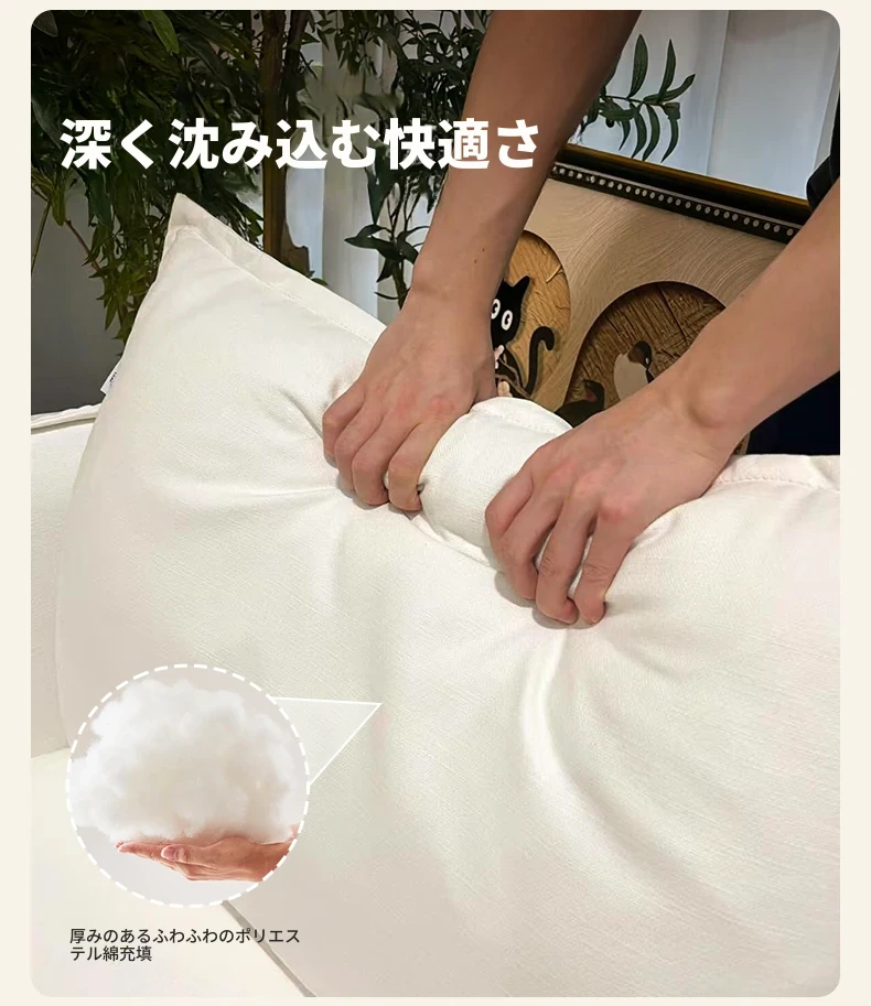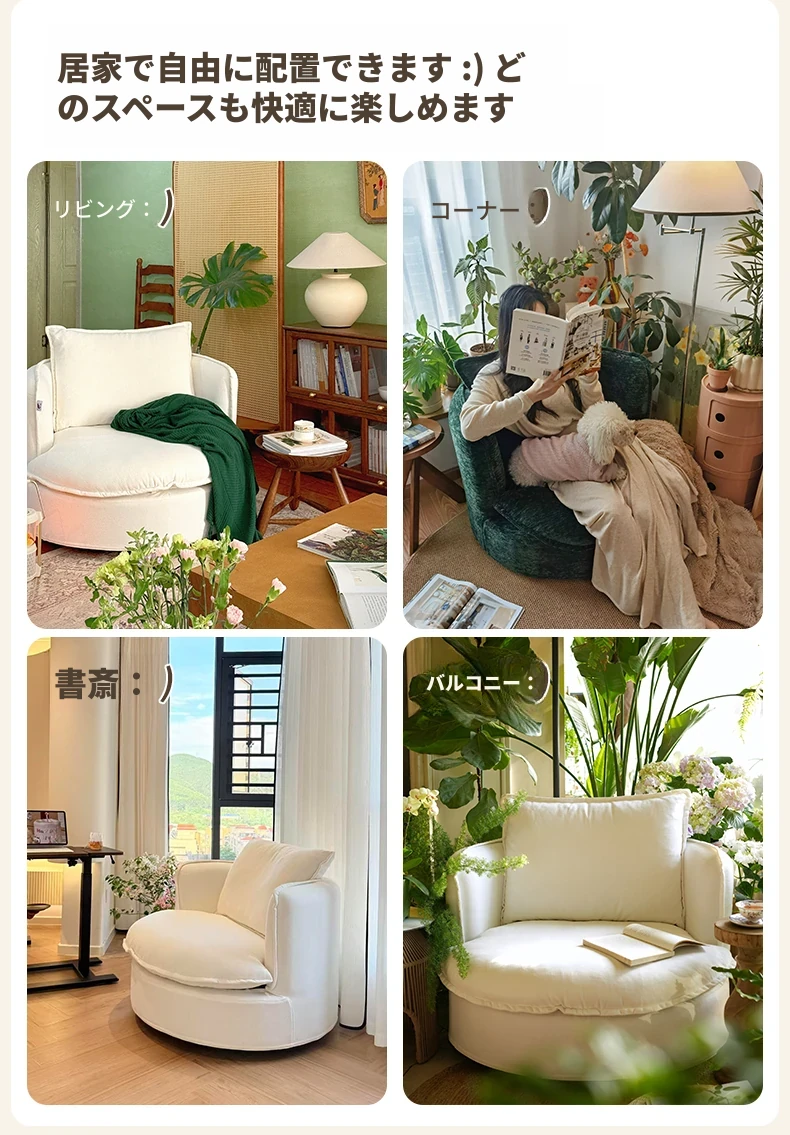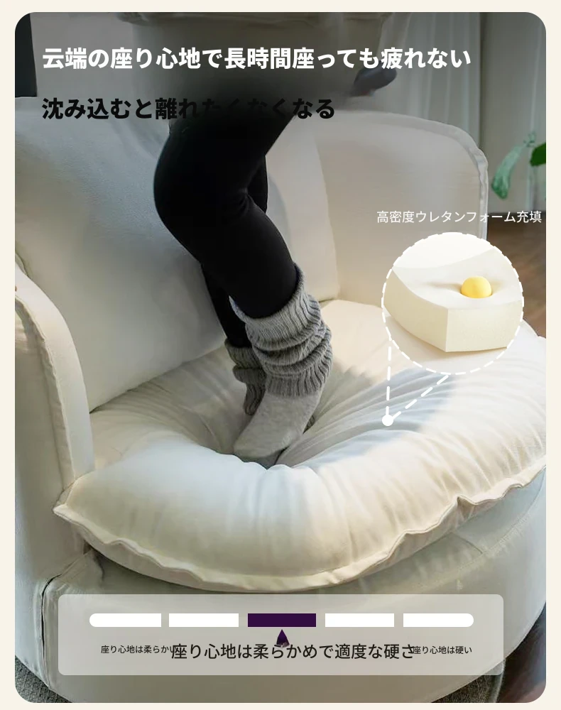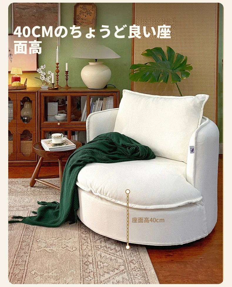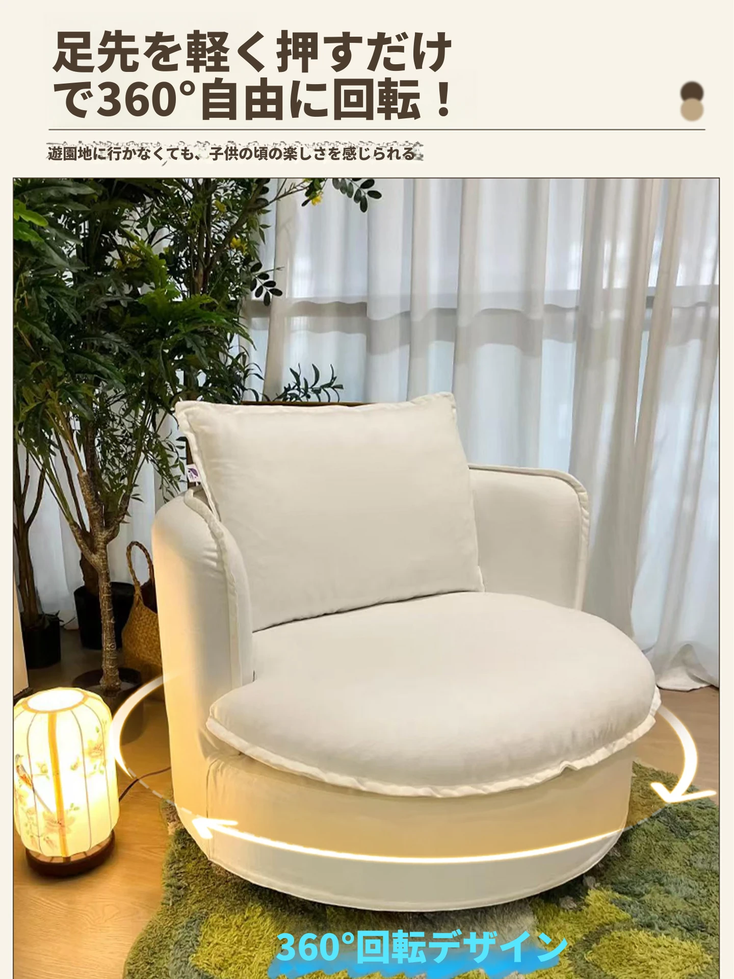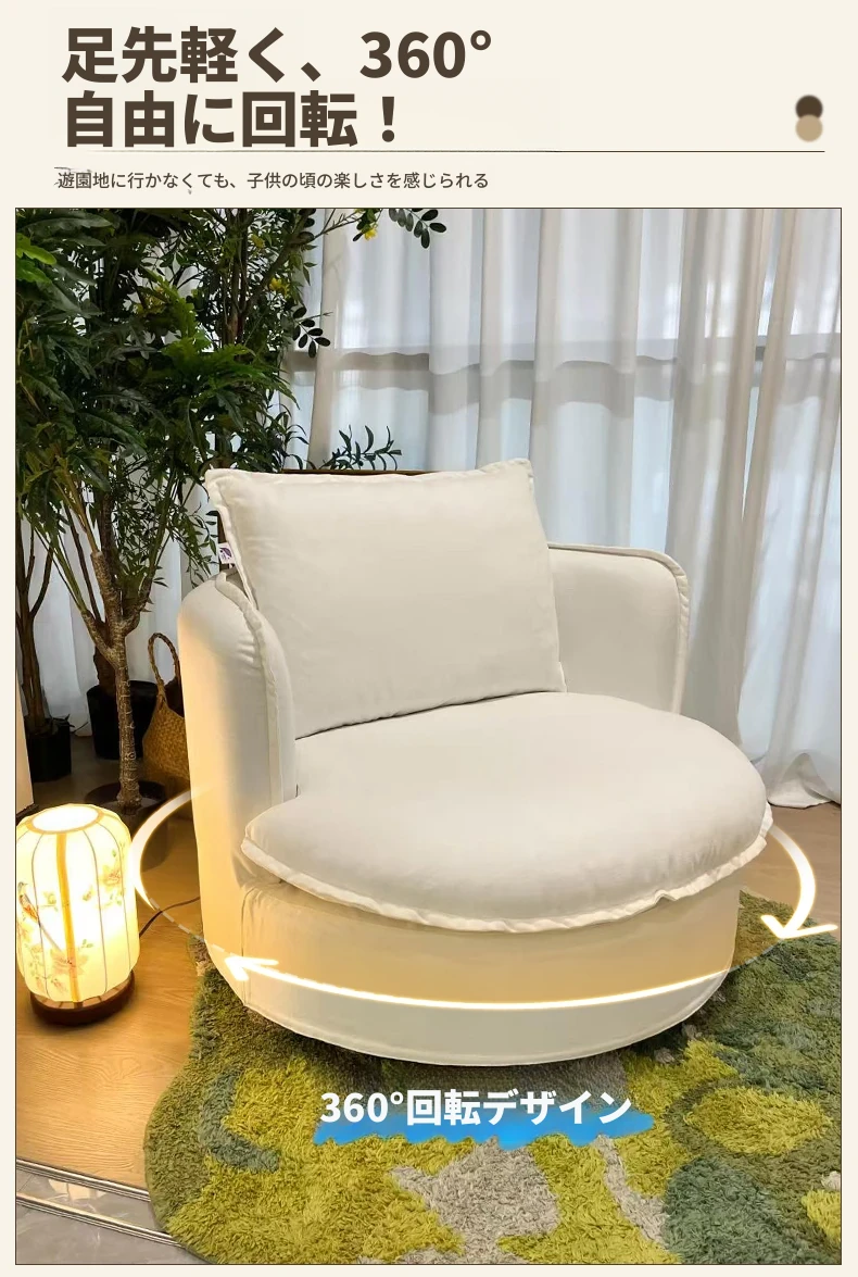アイボリー【360°回転】【クッション座布団は取り外し可能】【組み立て済み発送】