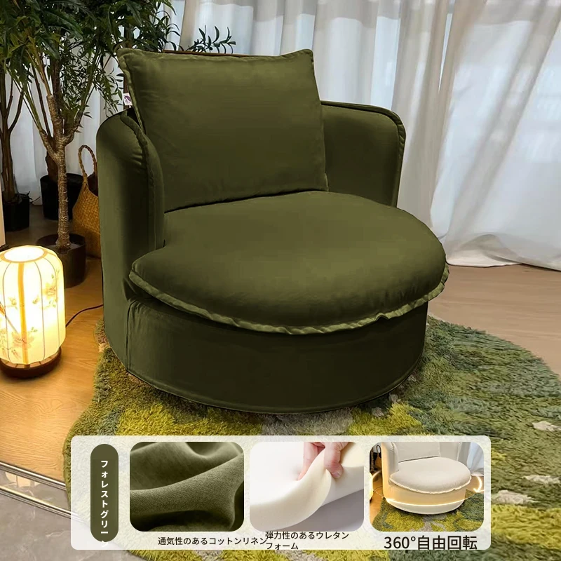 フォレストグリーン【360°回転】【クッション座布団は取り外し可能】【組み立て済み発送】
