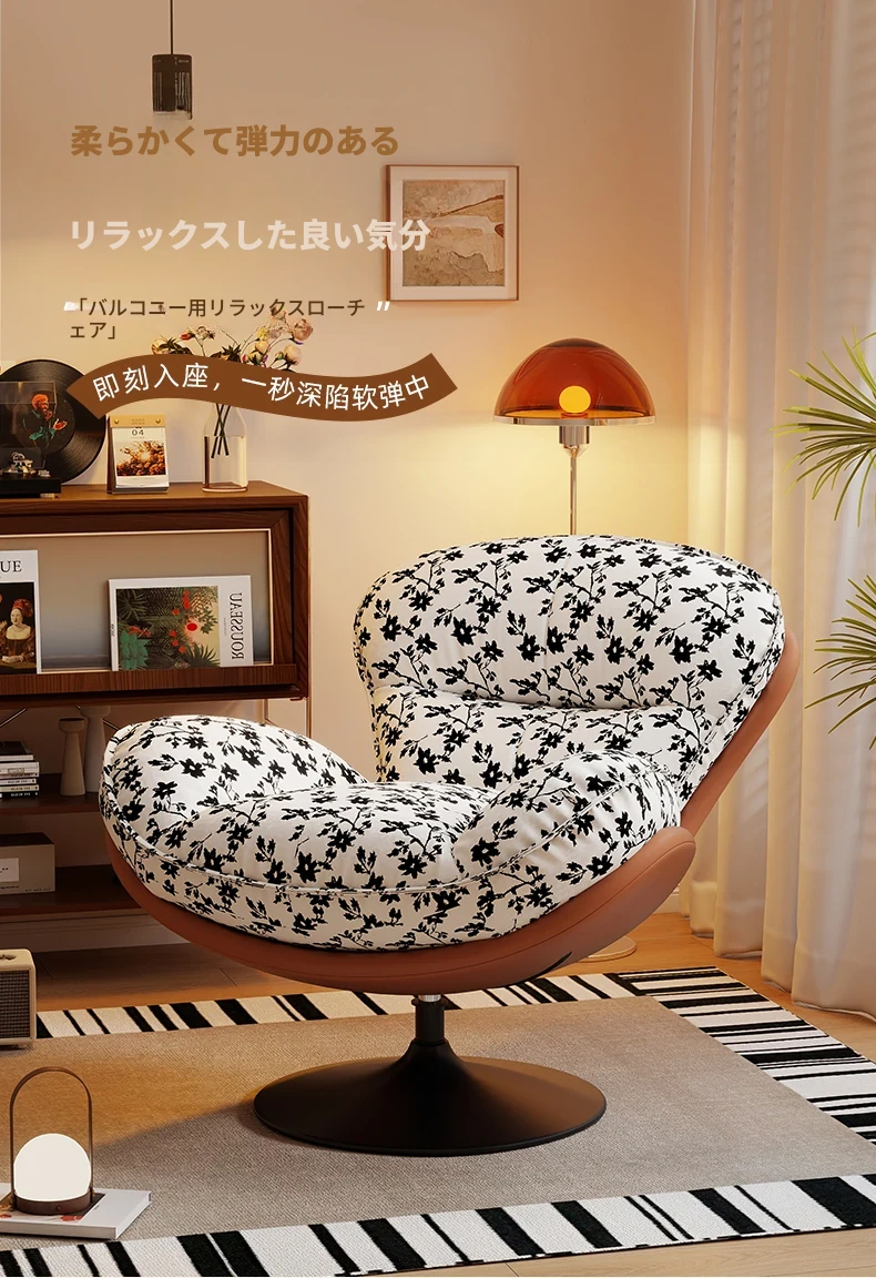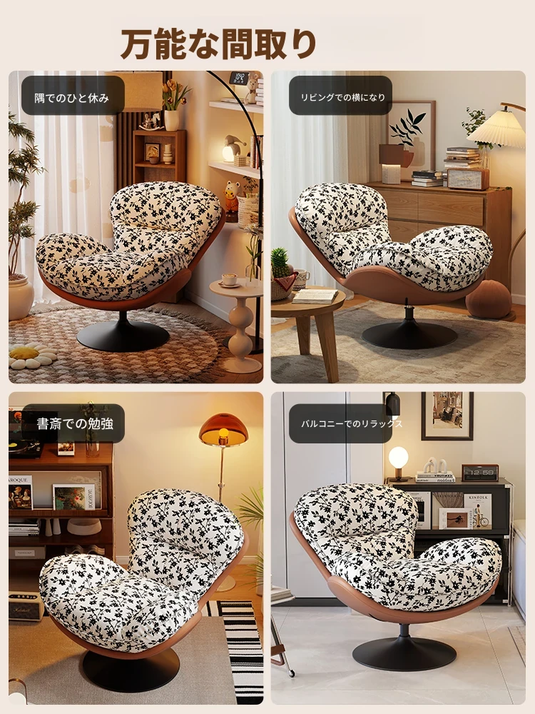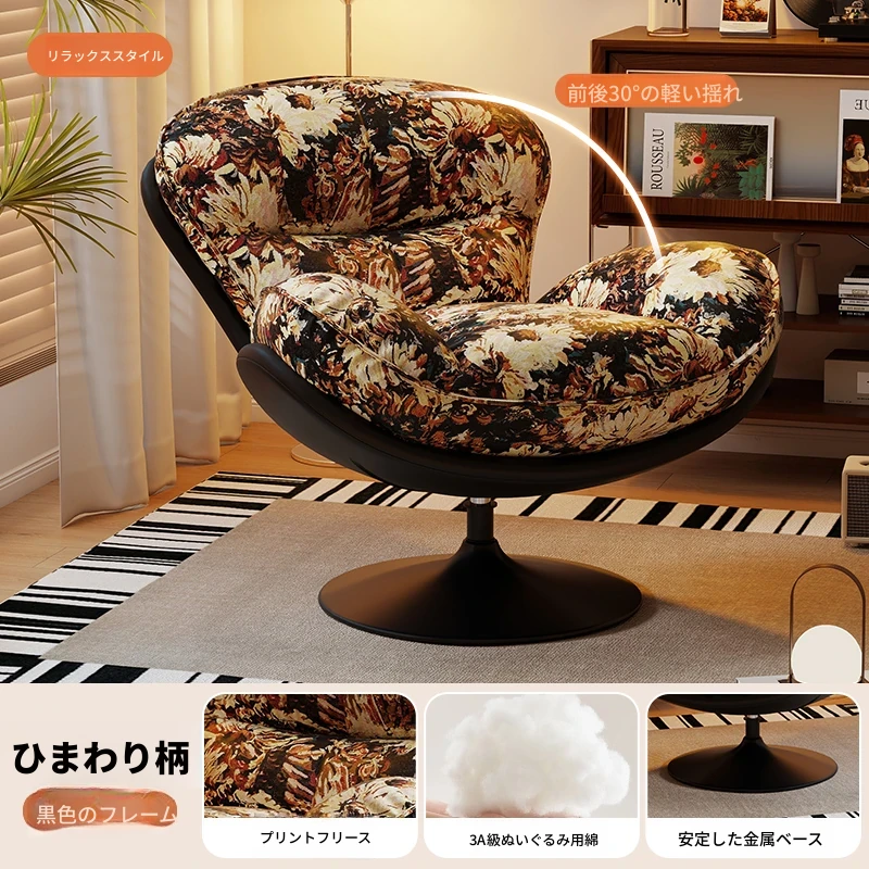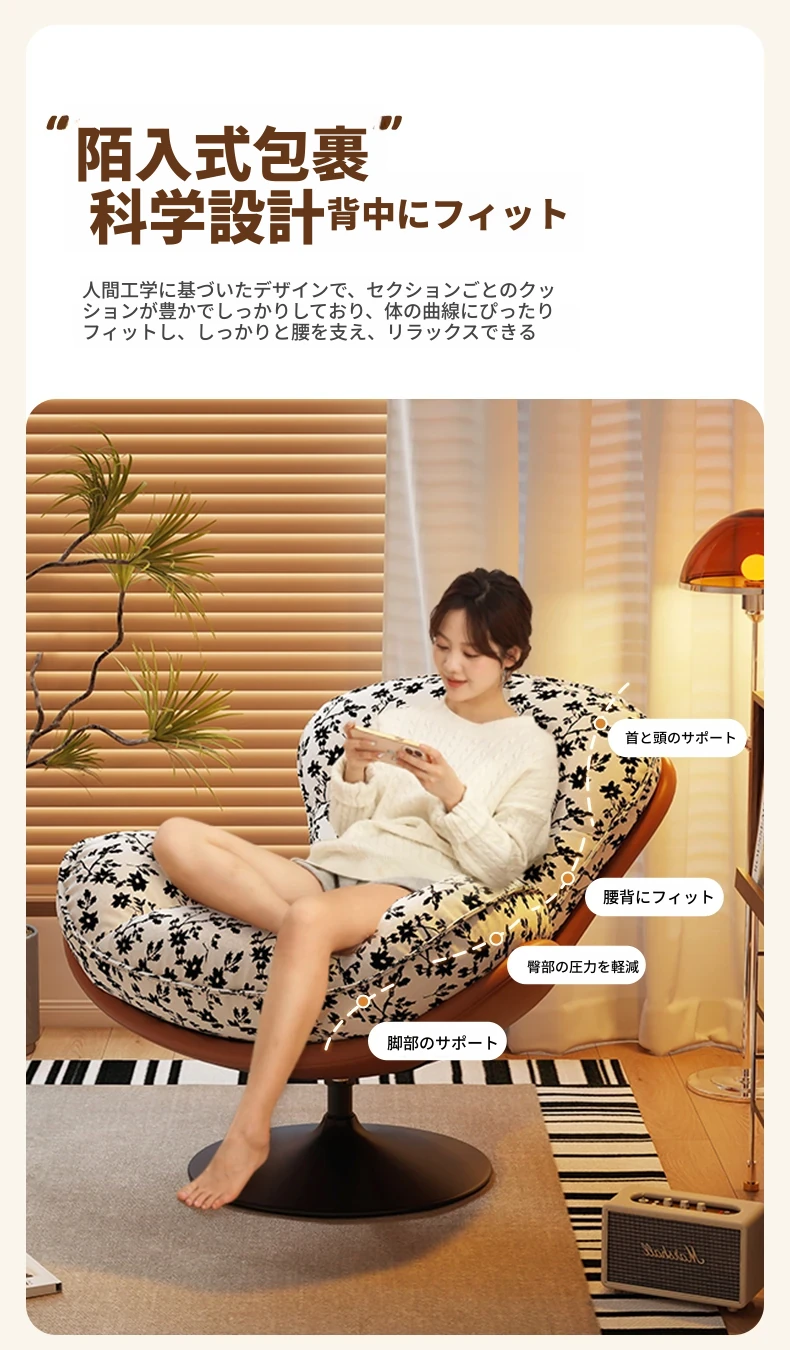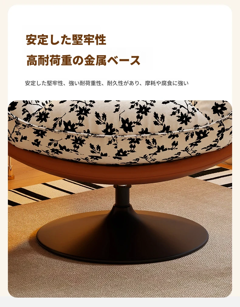 レトロデザインの1人用ソファチェア!バルコニーやリビングにぴったりなリラックス旋回椅子。小さなスペースでも使える、くつろぎの卵型ソファ。あなたの暮らしを素敵に彩ります!