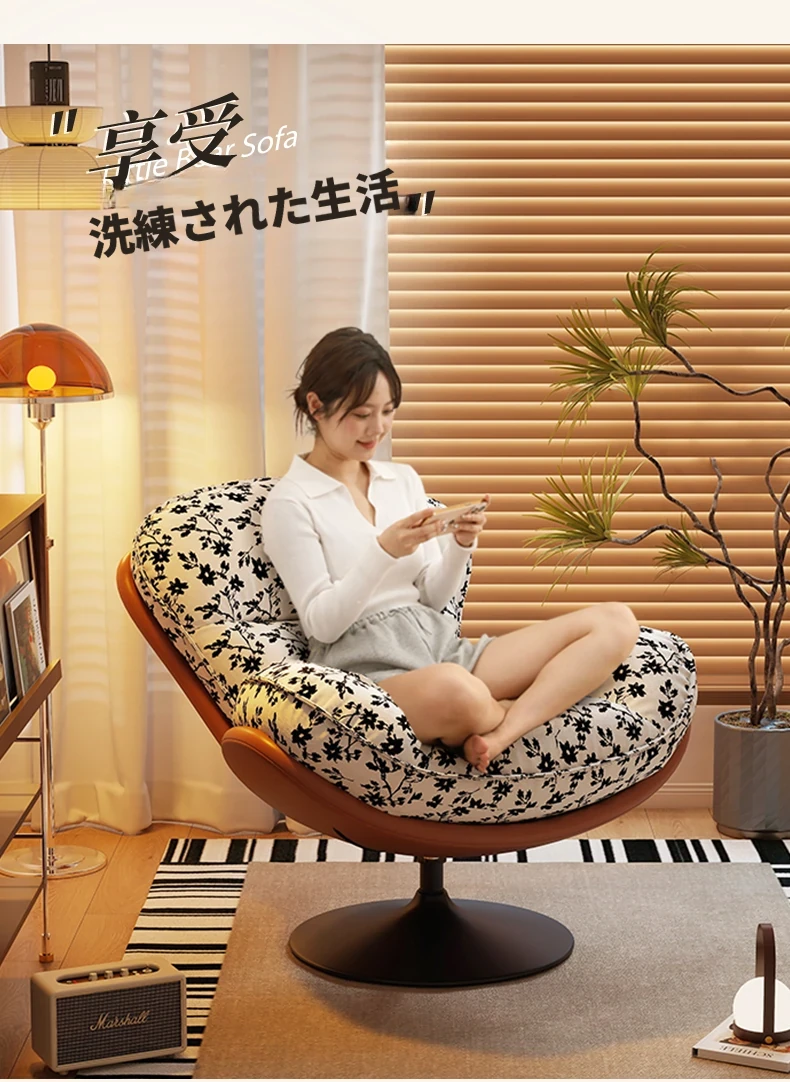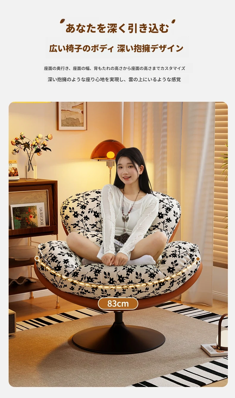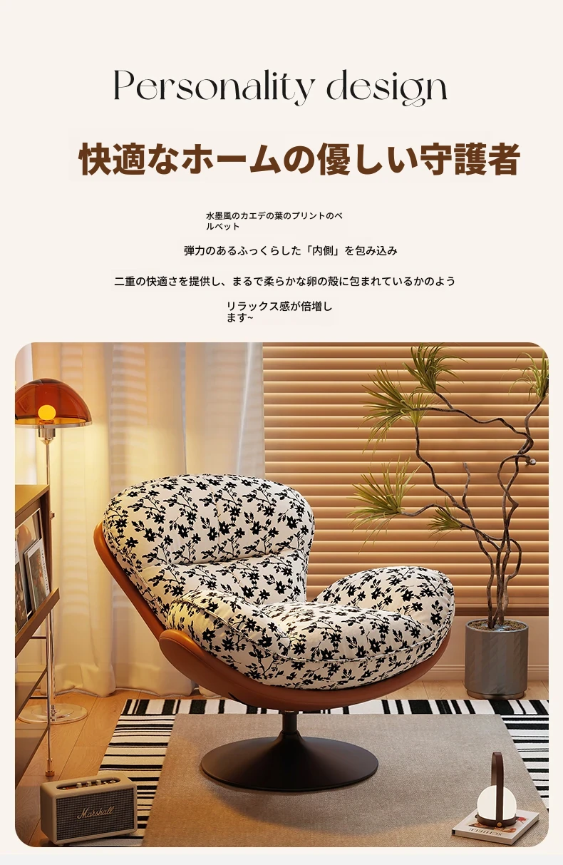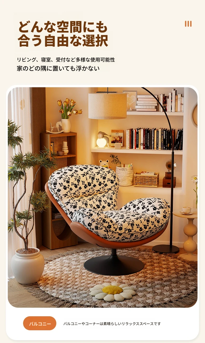 レトロデザインの1人用ソファチェア!バルコニーやリビングにぴったりなリラックス旋回椅子。小さなスペースでも使える、くつろぎの卵型ソファ。あなたの暮らしを素敵に彩ります!
