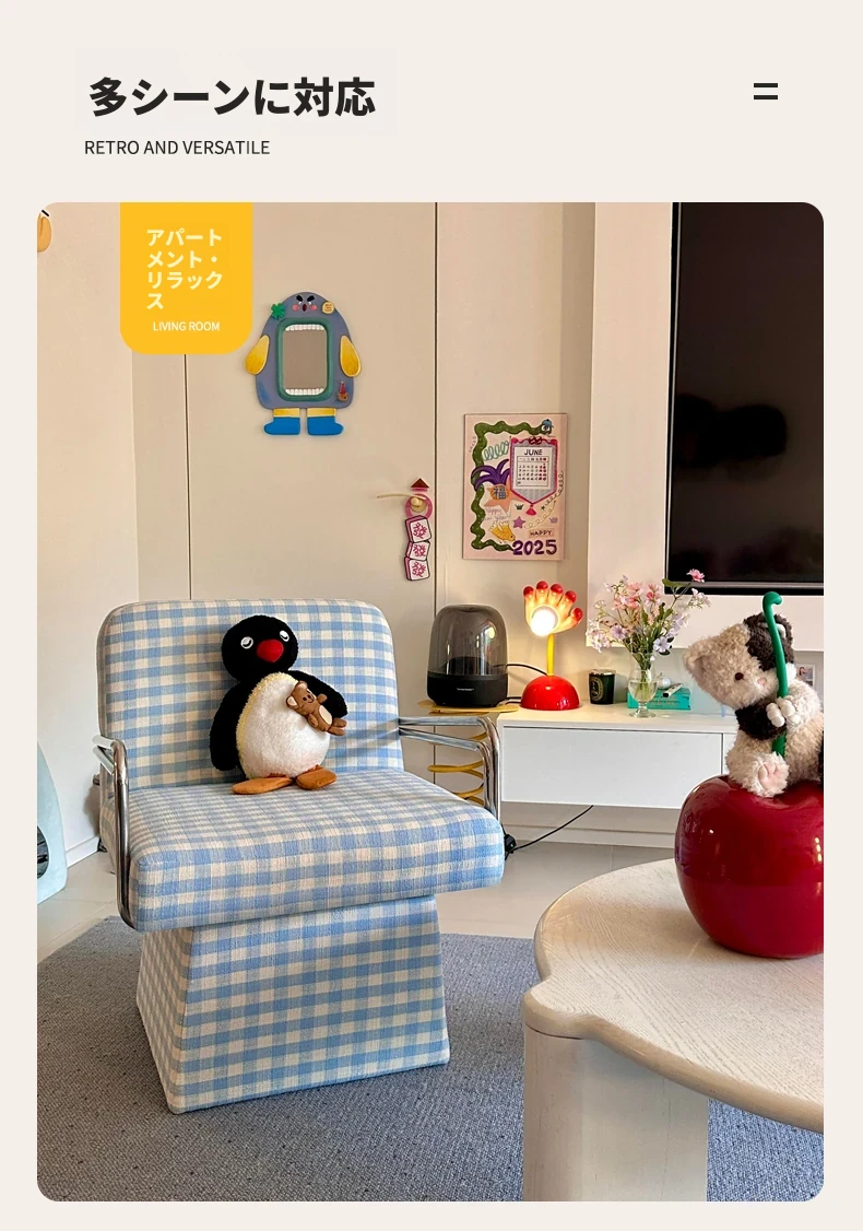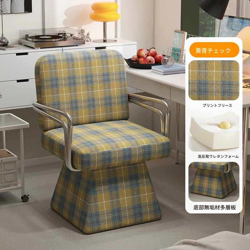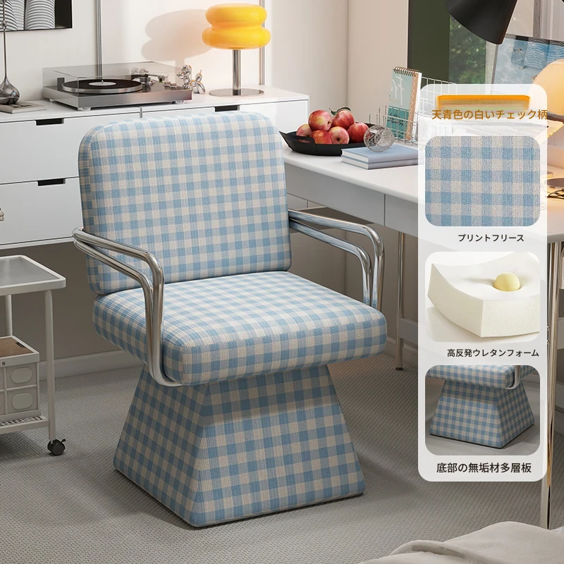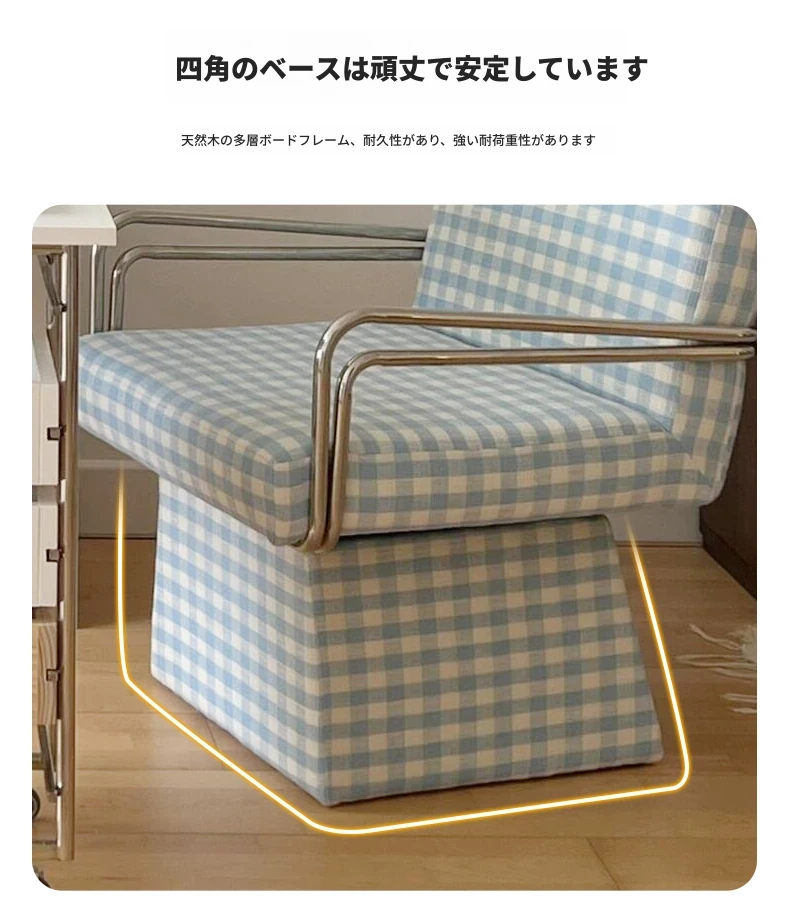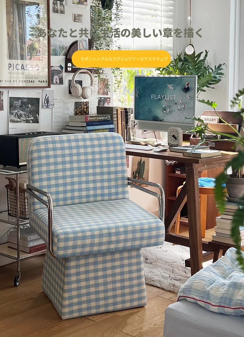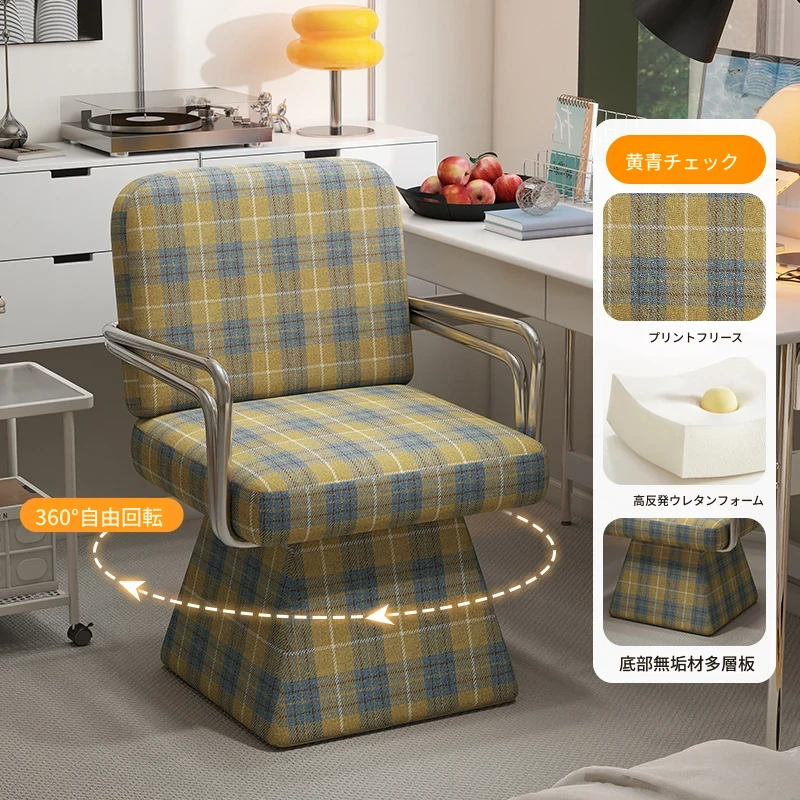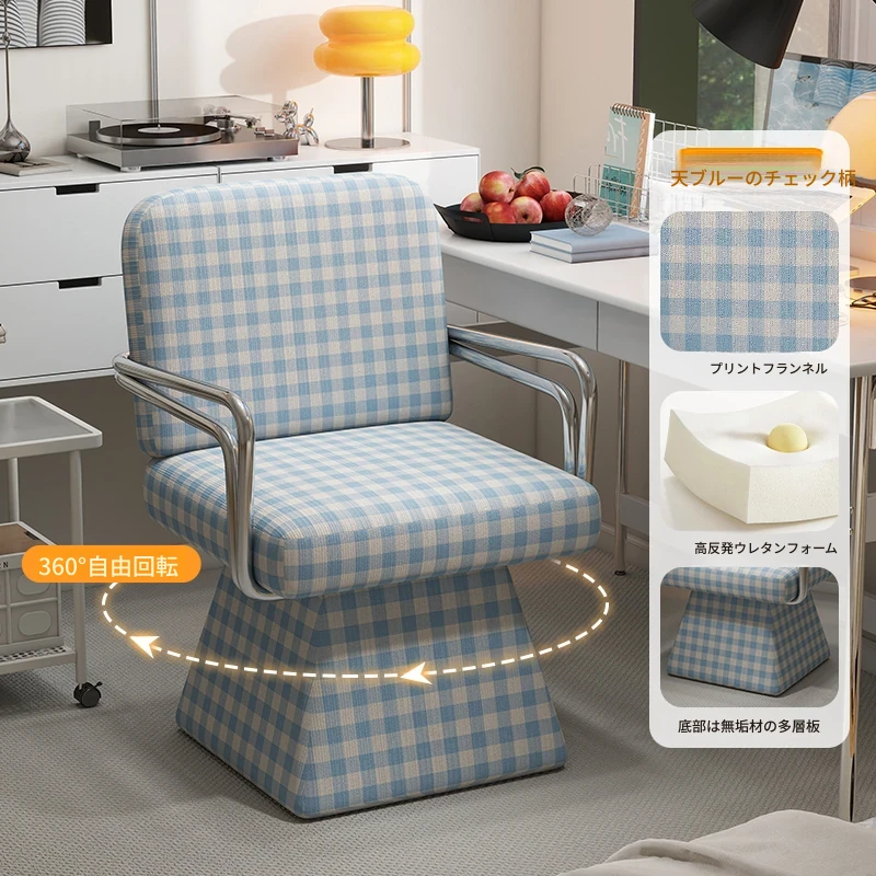 回転式ファブリックソファチェア - リビングやバルコニーにぴったりなアメリカンチェック柄のリラックスチェア!書斎や寝室にも最適な一人掛け椅子、化粧台用スツールとしても使えます。おしゃれなデザインでお部屋を彩ります!