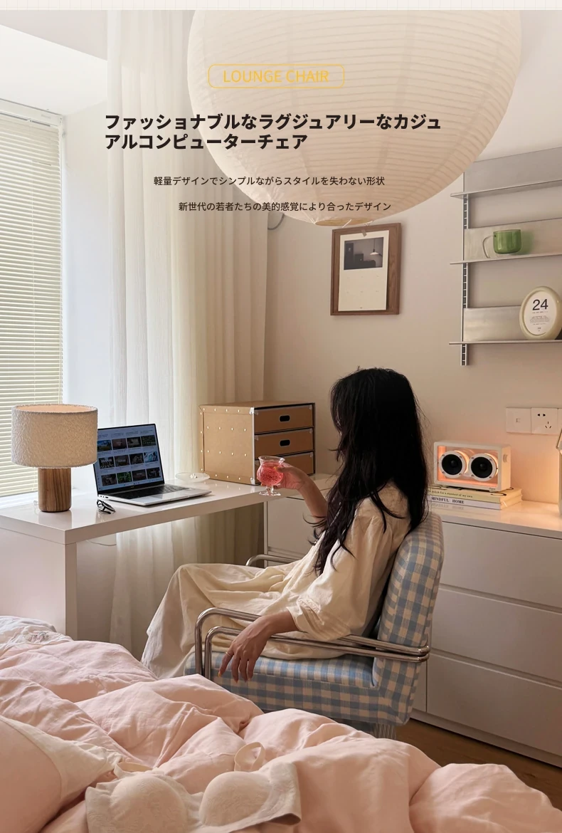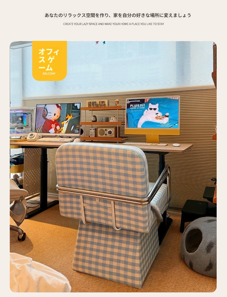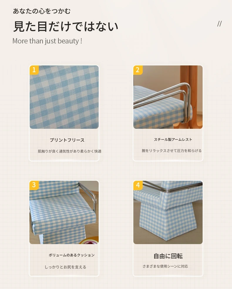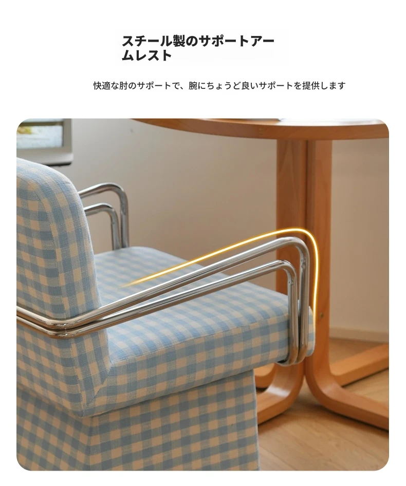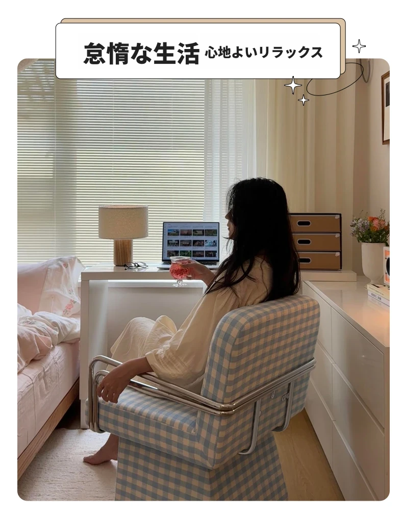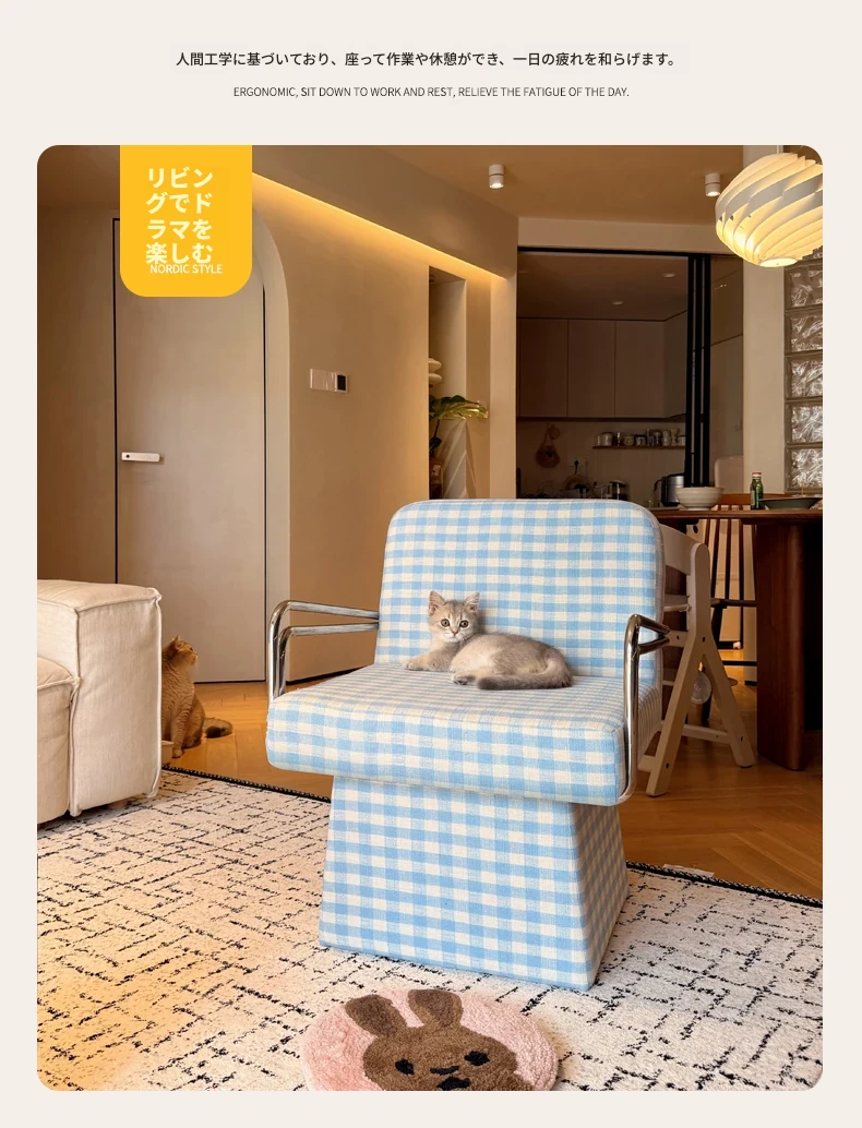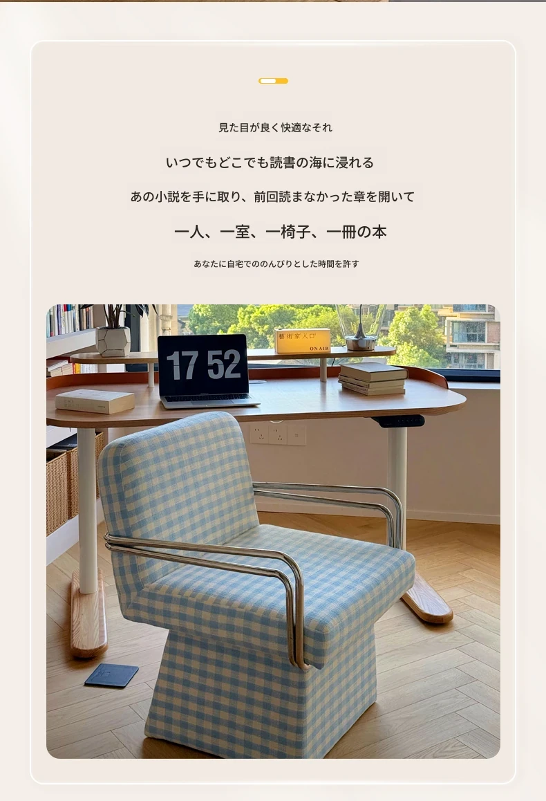 回転式ファブリックソファチェア - リビングやバルコニーにぴったりなアメリカンチェック柄のリラックスチェア!書斎や寝室にも最適な一人掛け椅子、化粧台用スツールとしても使えます。おしゃれなデザインでお部屋を彩ります!