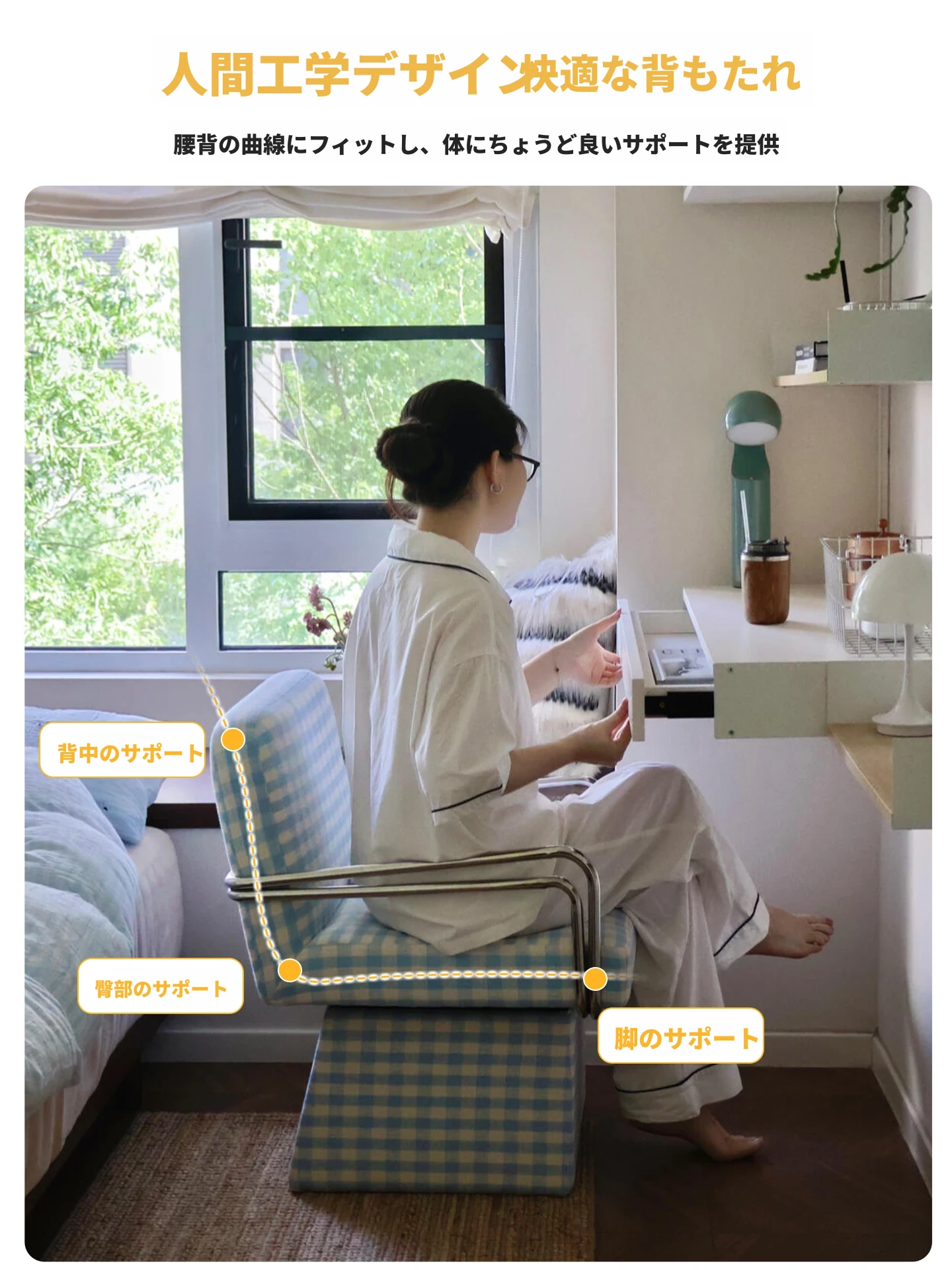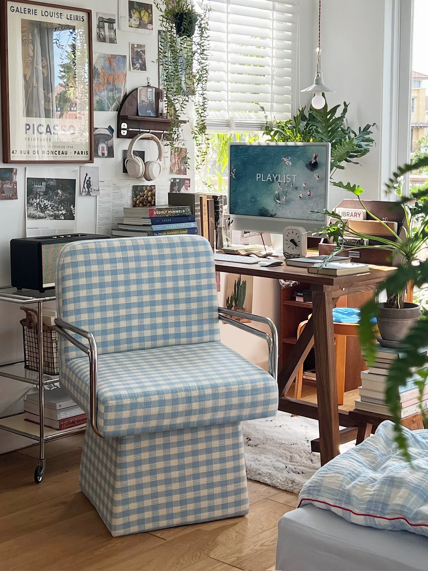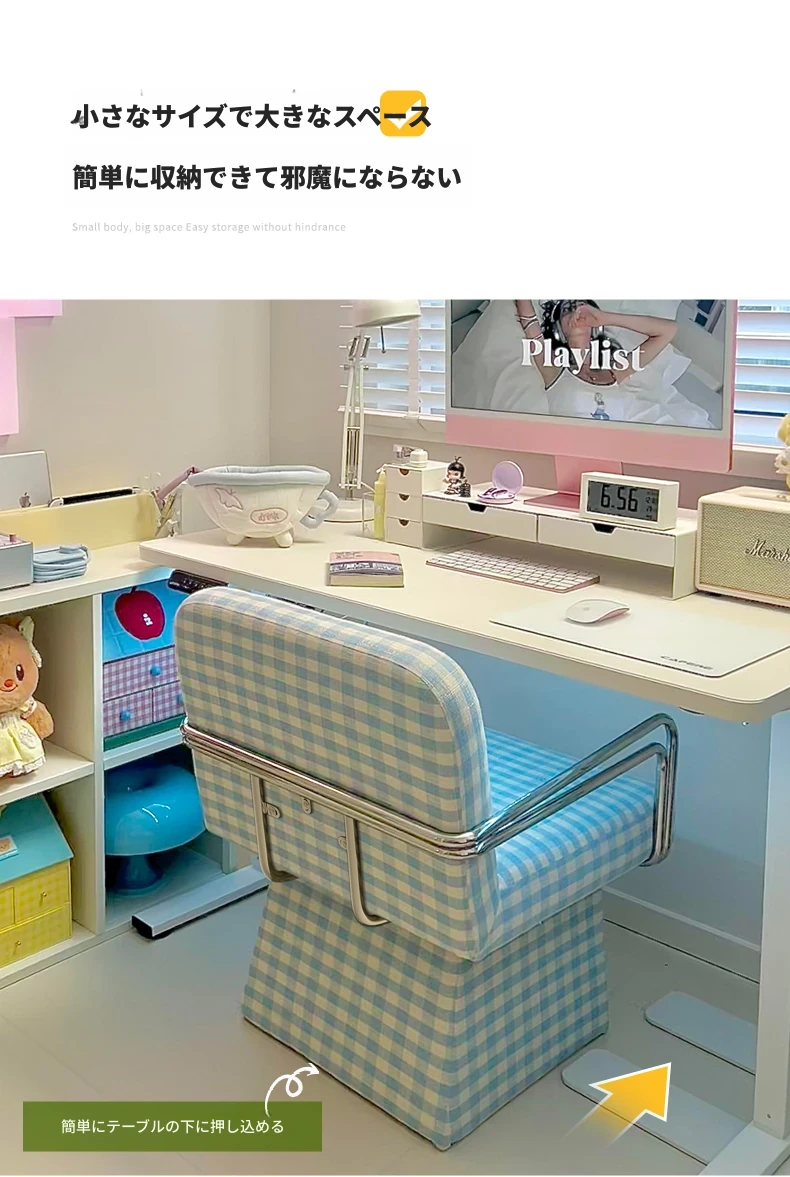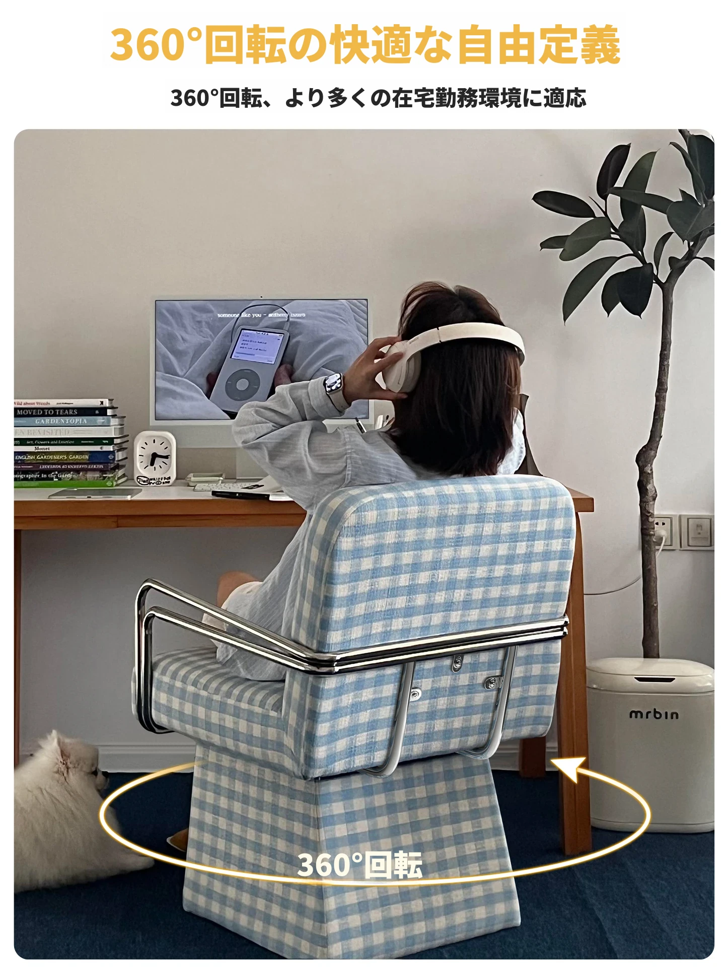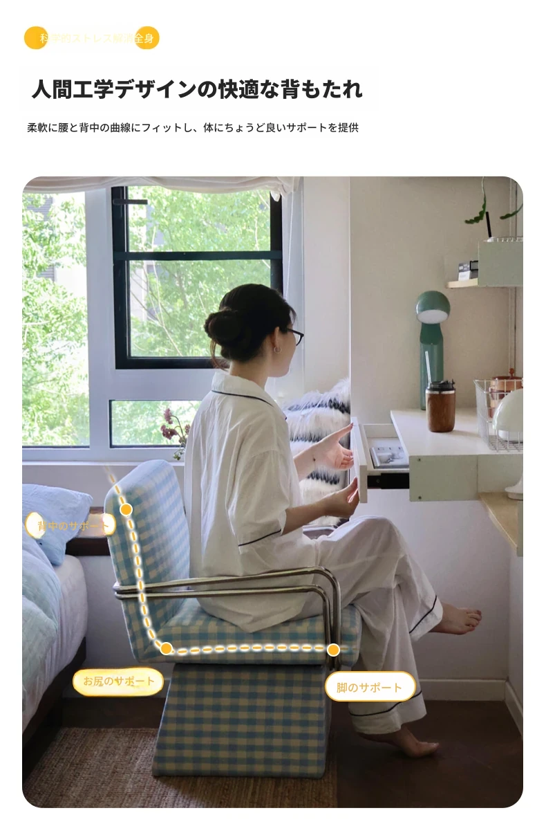 回転式ファブリックソファチェア - リビングやバルコニーにぴったりなアメリカンチェック柄のリラックスチェア!書斎や寝室にも最適な一人掛け椅子、化粧台用スツールとしても使えます。おしゃれなデザインでお部屋を彩ります!