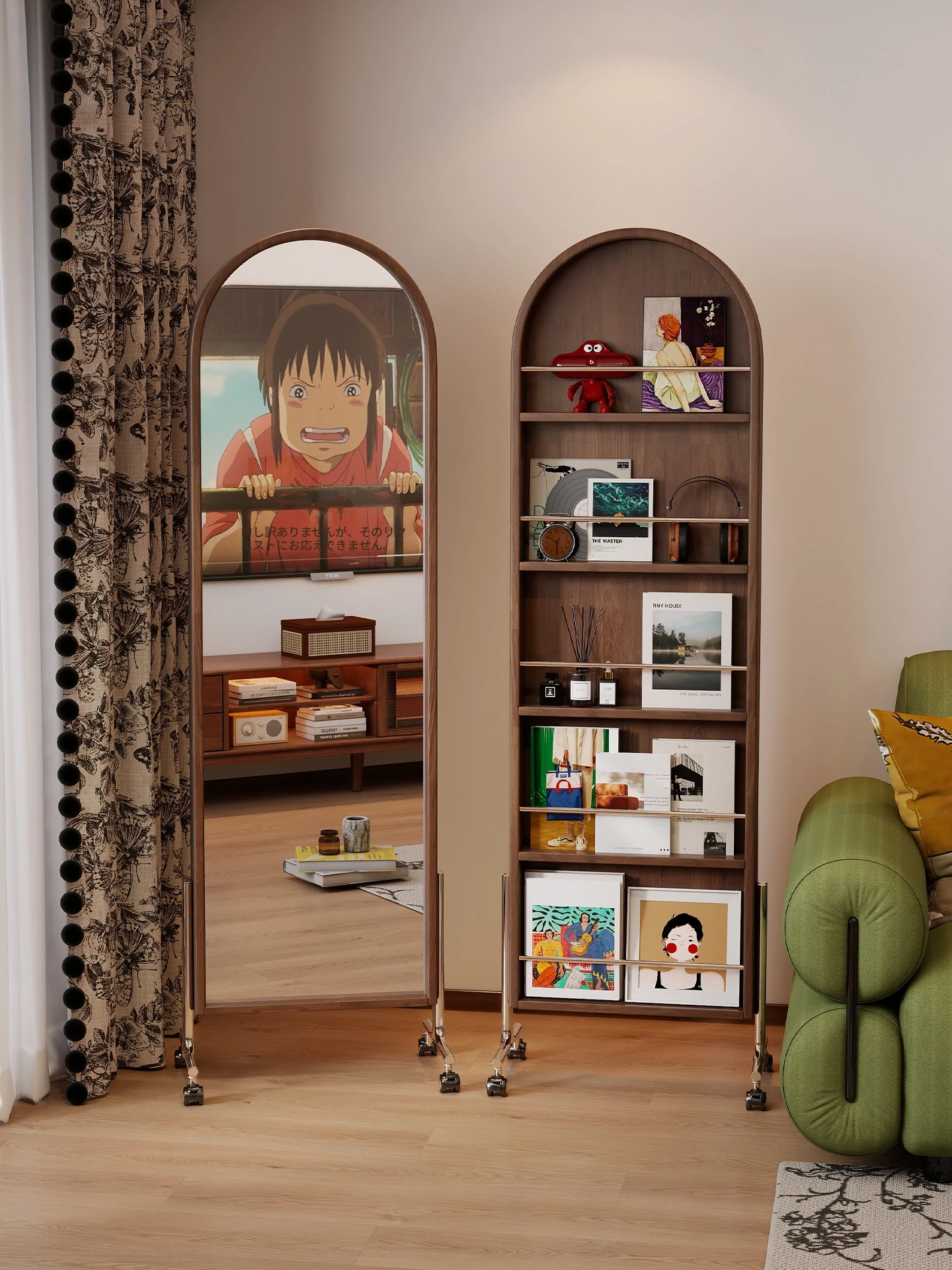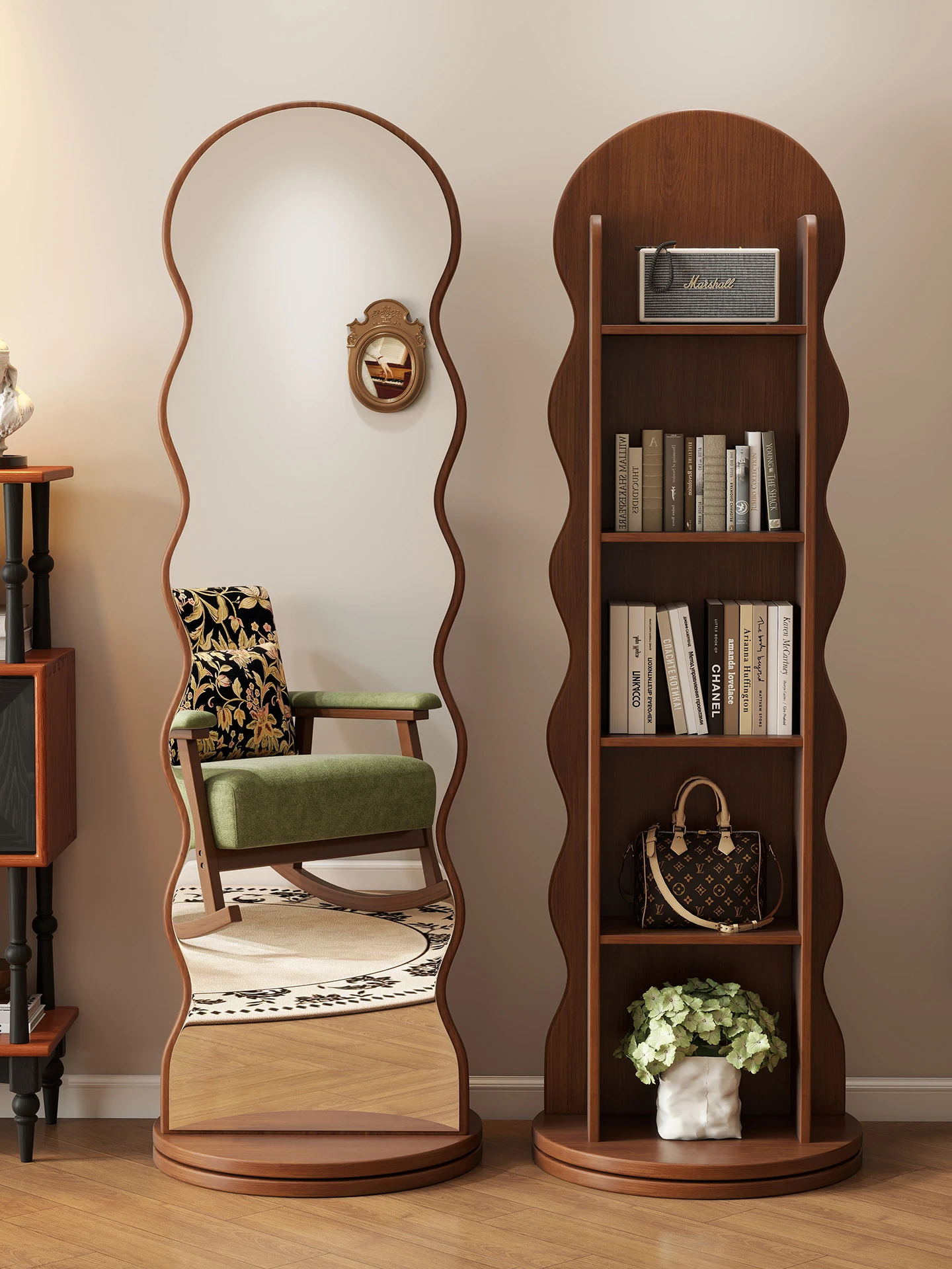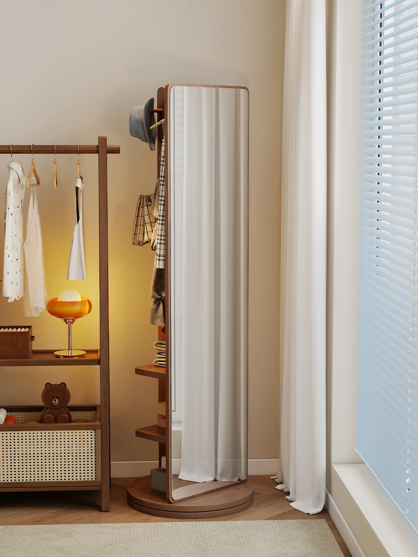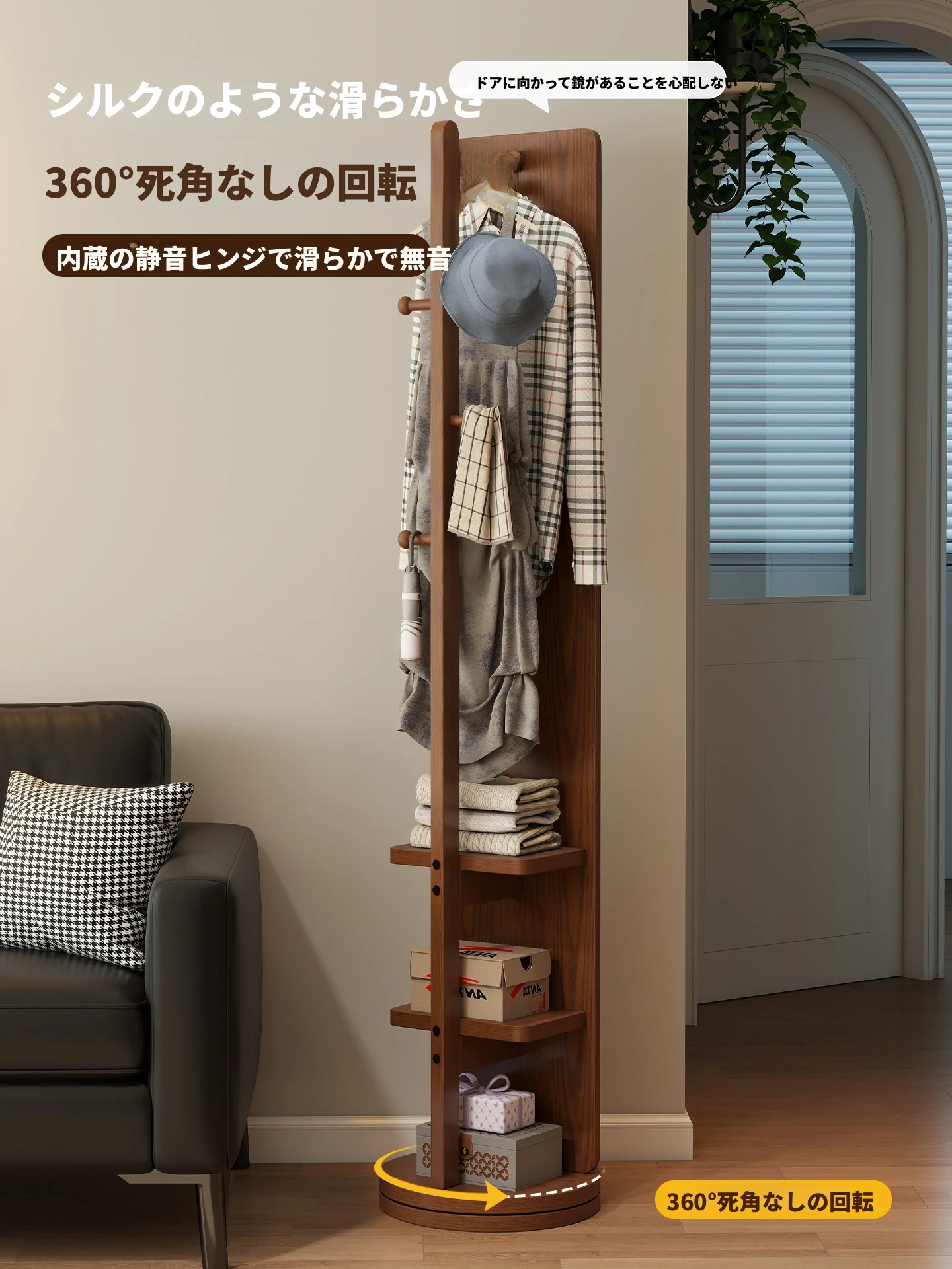 高品質な無垢材の全身鏡!自宅用の寝室に最適、回転式で便利な試着鏡。衣類ハンガー一体型で、スタイリッシュなデザインが魅力。おしゃれな空間を演出し、毎日のコーディネートが楽しくなるアイテムです!
