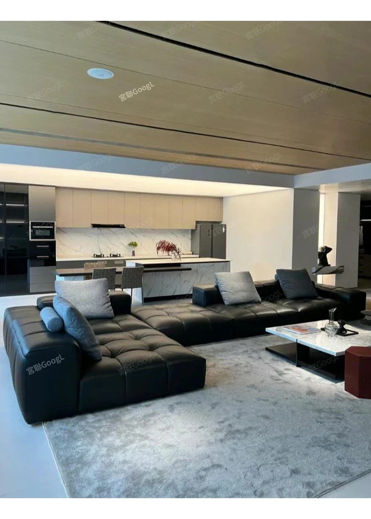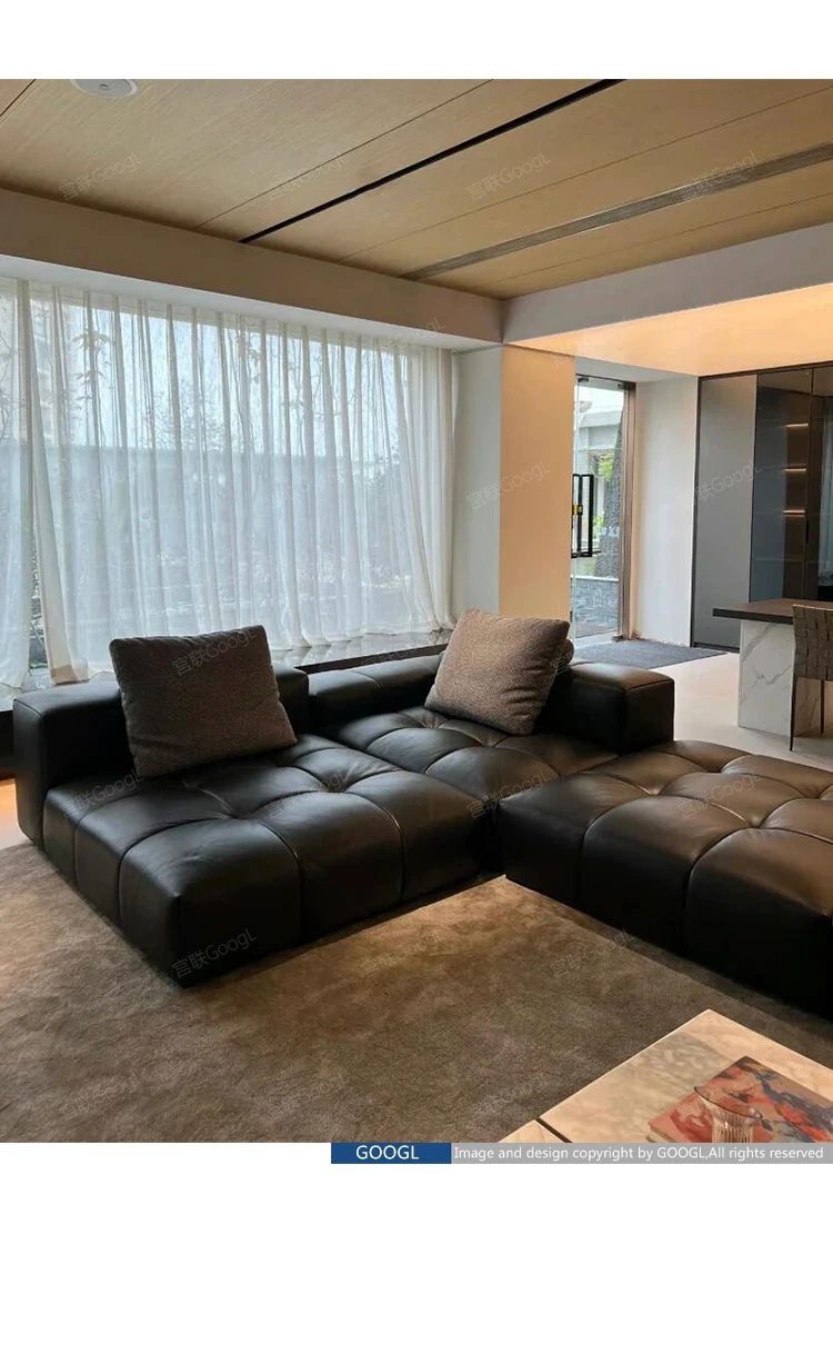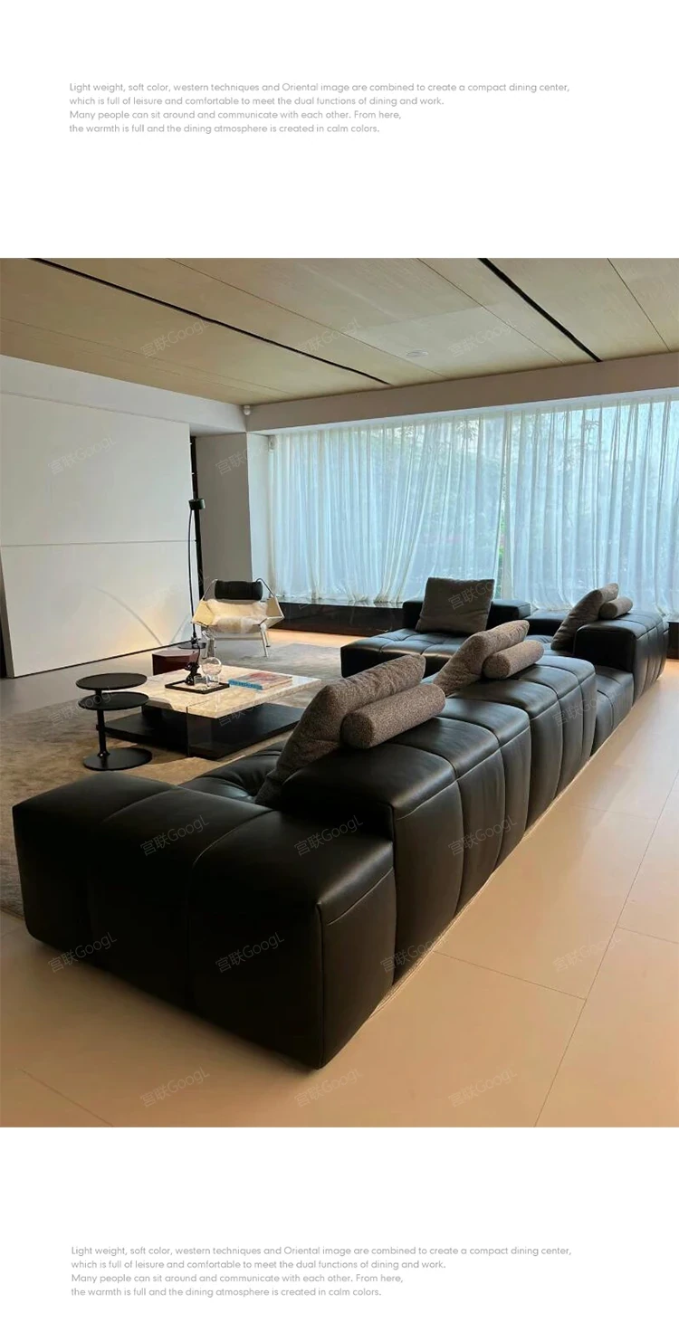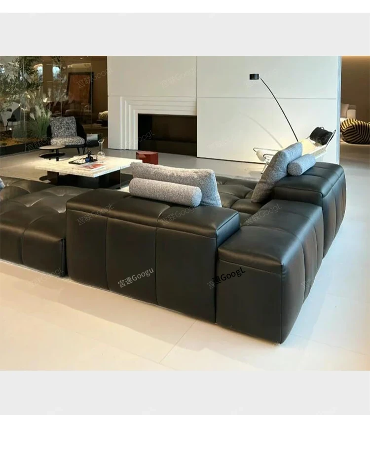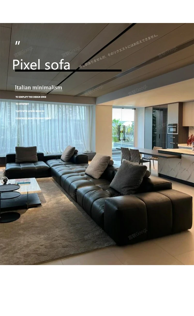 エクスマン イタリアンミニマリズム SABAピクセルモジュラーソファ ブラックトップグレインレザー直列トーフブロックソファ - スタイリッシュで快適、洗練されたデザインでお部屋を格上げ!
