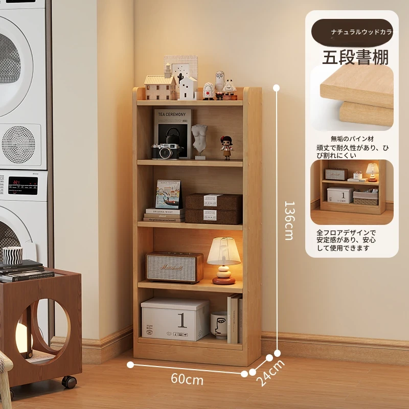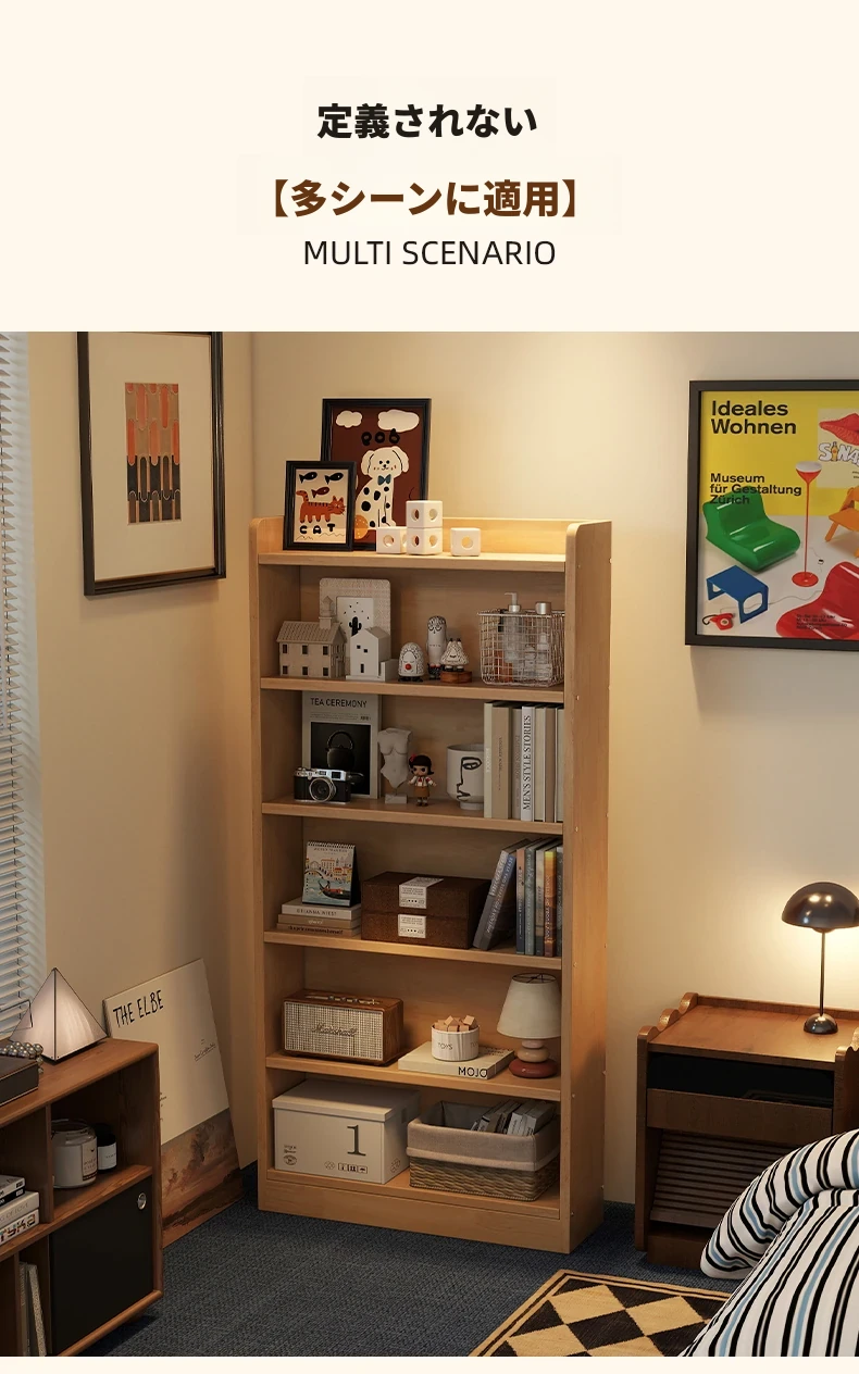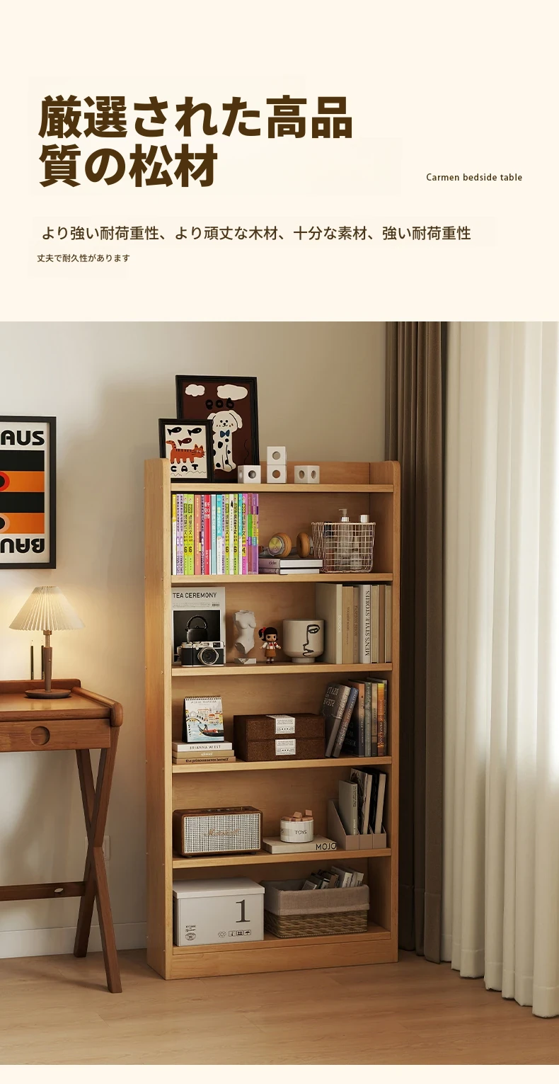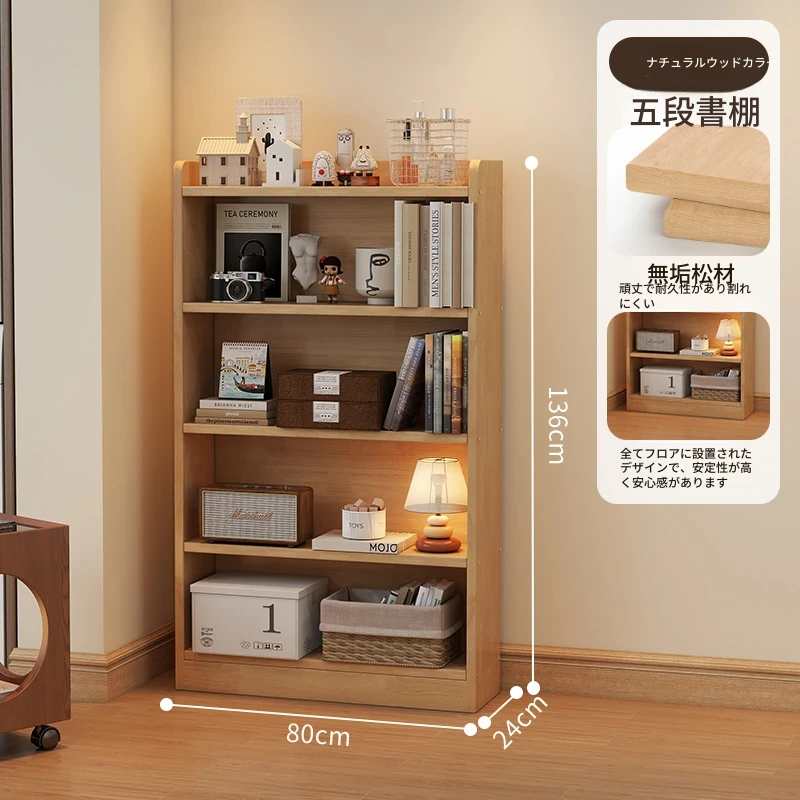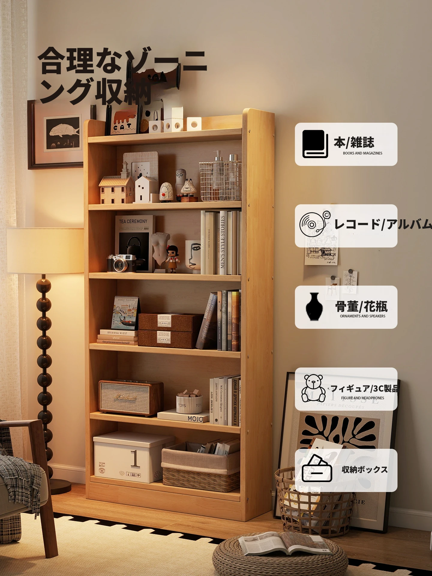 高品質な無垢材製のフロアスタンディング書棚 - リビングにぴったりな多層収納シェルフ!本や雑貨を美しくディスプレイ。壁にぴったり寄せてスペースを有効活用。あなたの家をスタイリッシュに演出します!