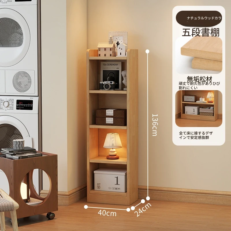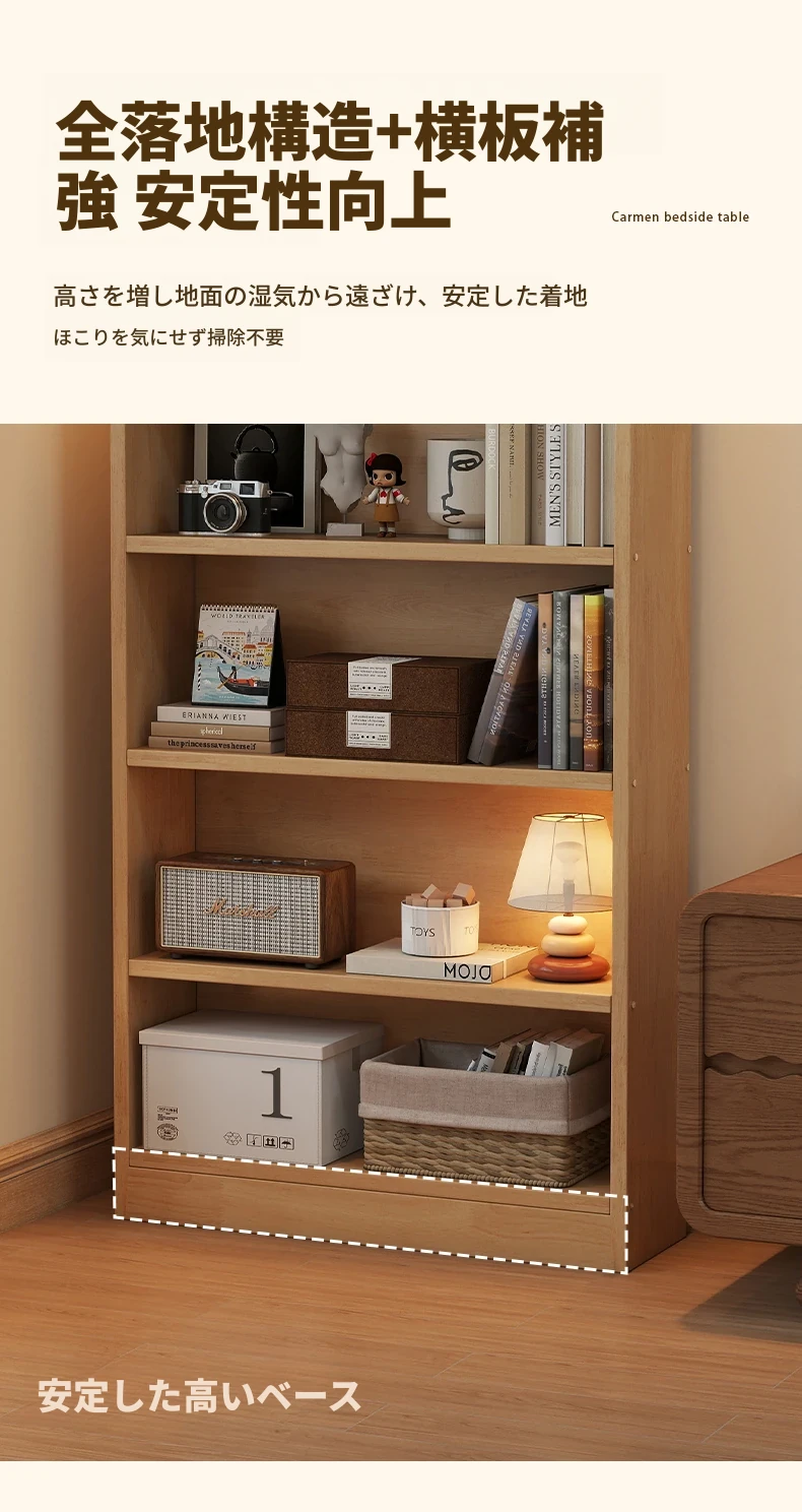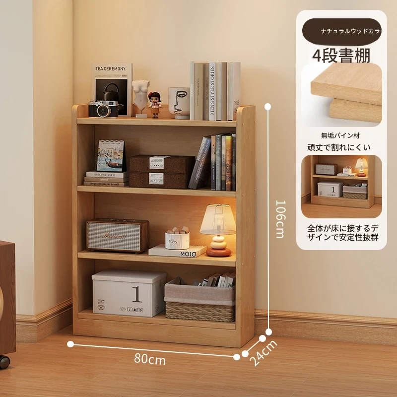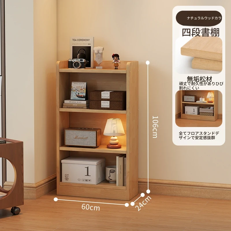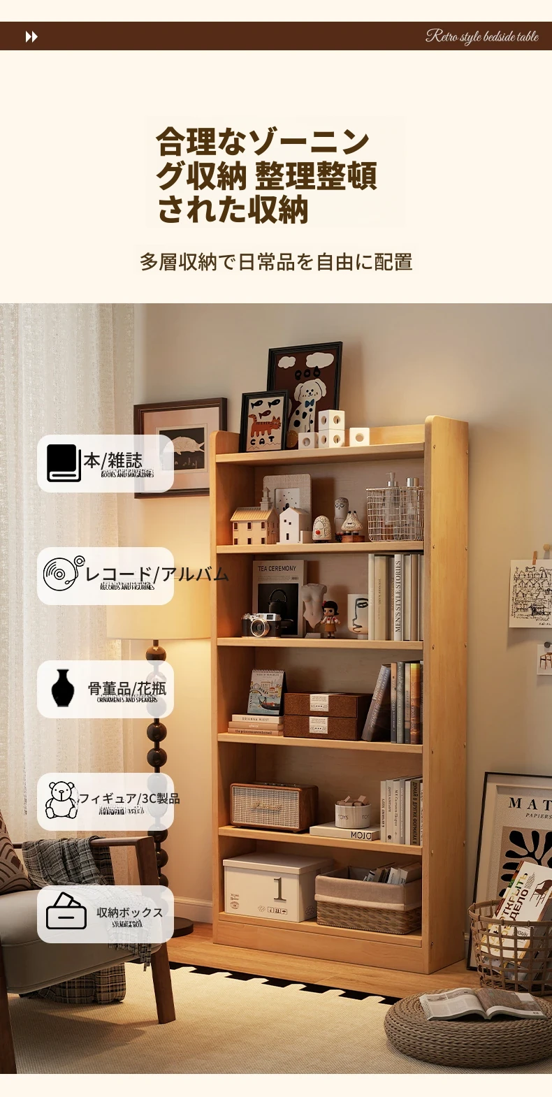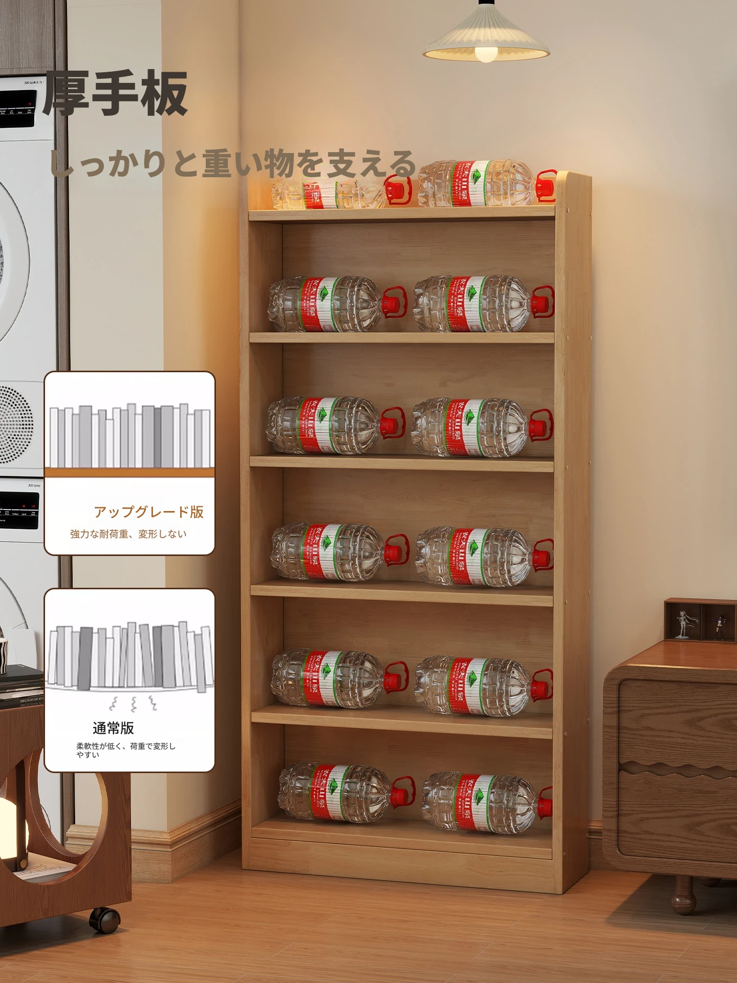 高品質な無垢材製のフロアスタンディング書棚 - リビングにぴったりな多層収納シェルフ!本や雑貨を美しくディスプレイ。壁にぴったり寄せてスペースを有効活用。あなたの家をスタイリッシュに演出します!