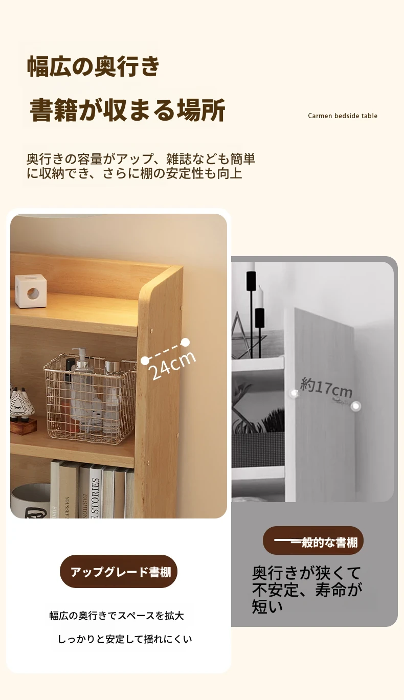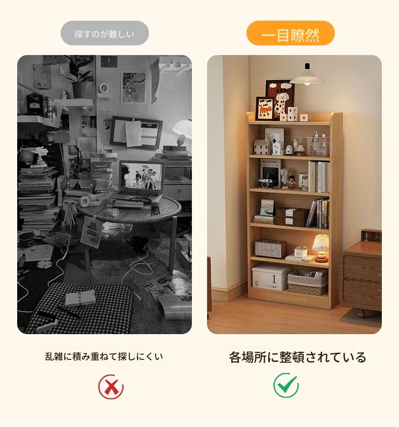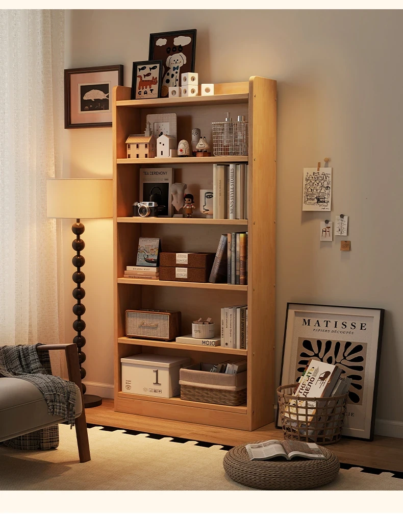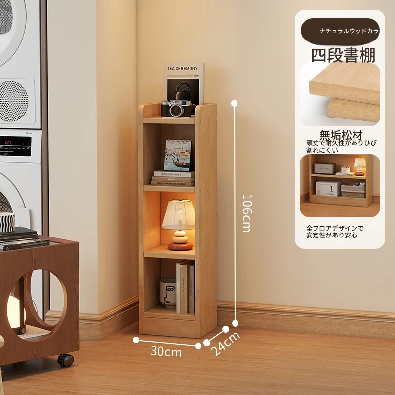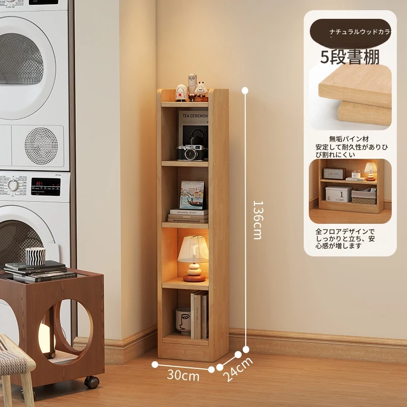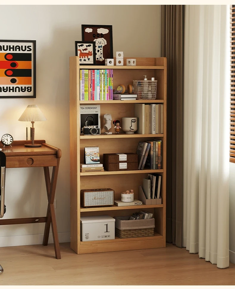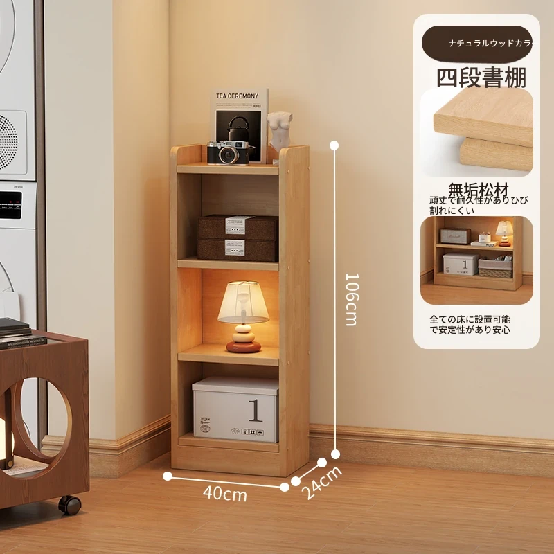 高品質な無垢材製のフロアスタンディング書棚 - リビングにぴったりな多層収納シェルフ!本や雑貨を美しくディスプレイ。壁にぴったり寄せてスペースを有効活用。あなたの家をスタイリッシュに演出します!