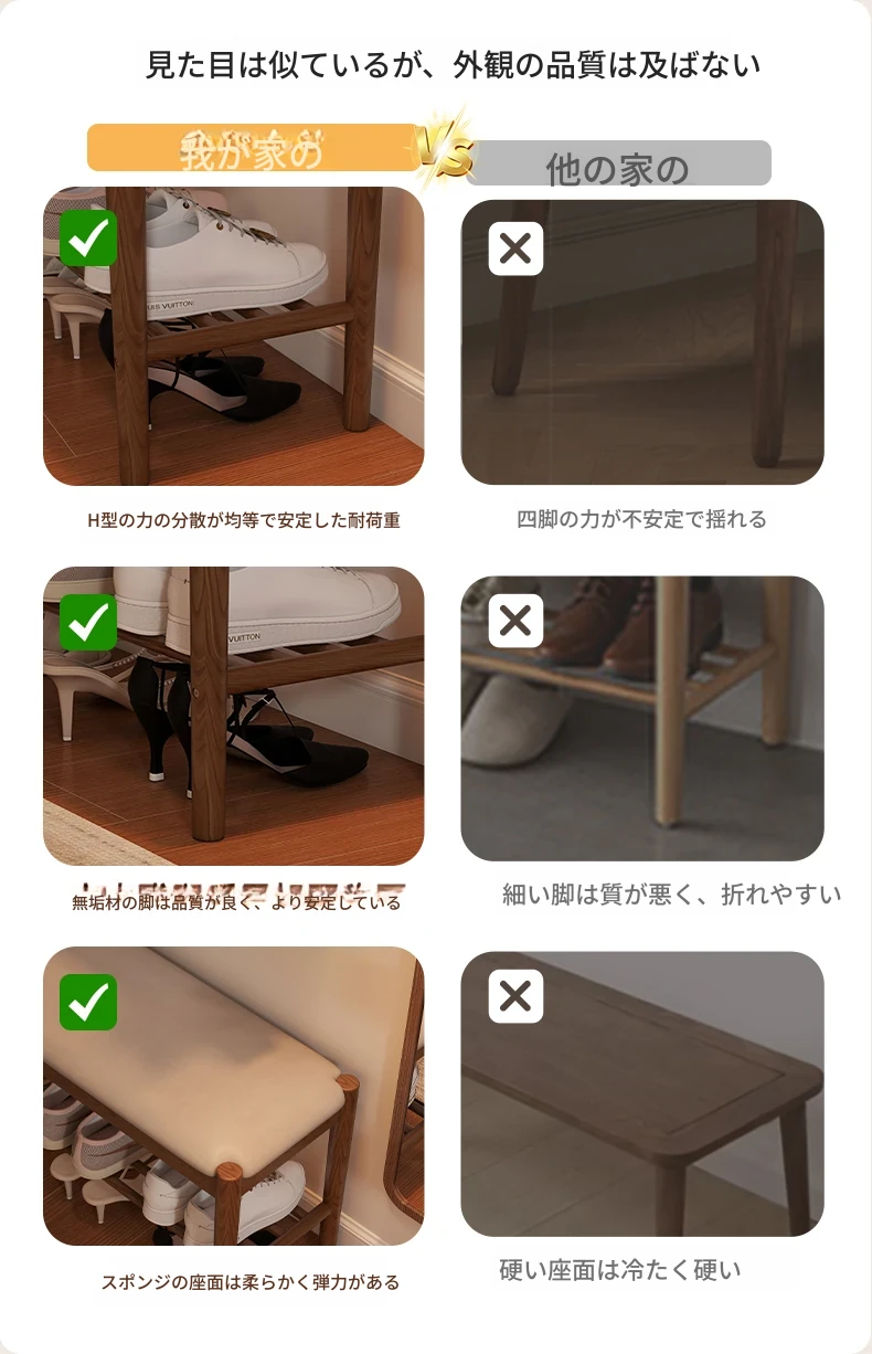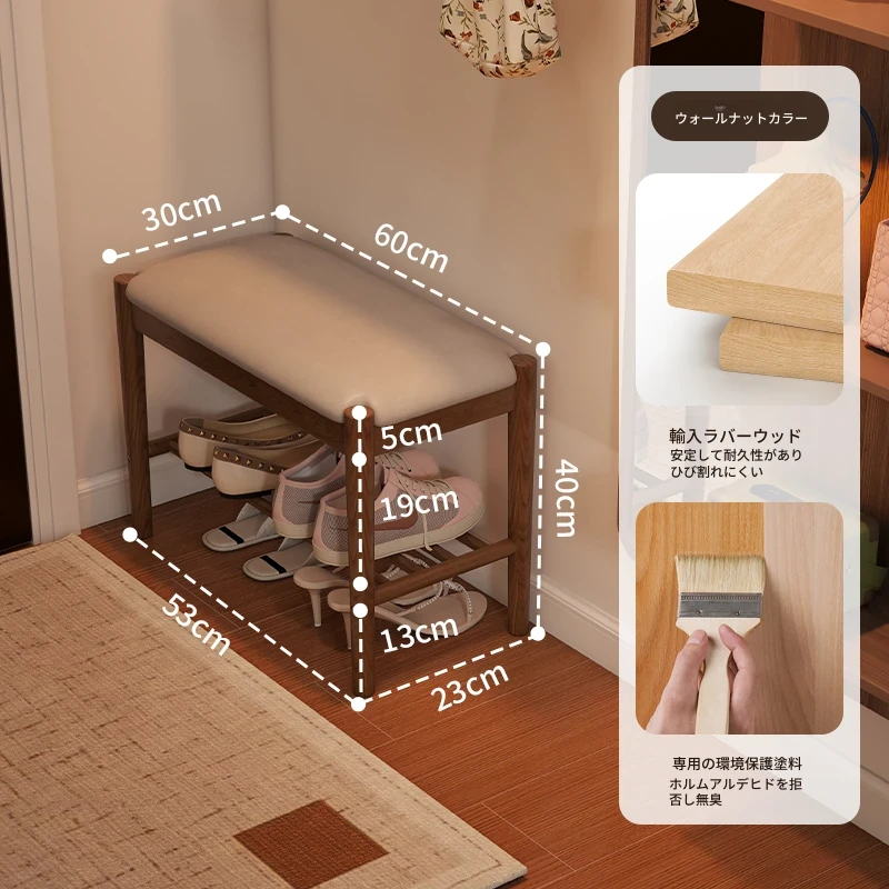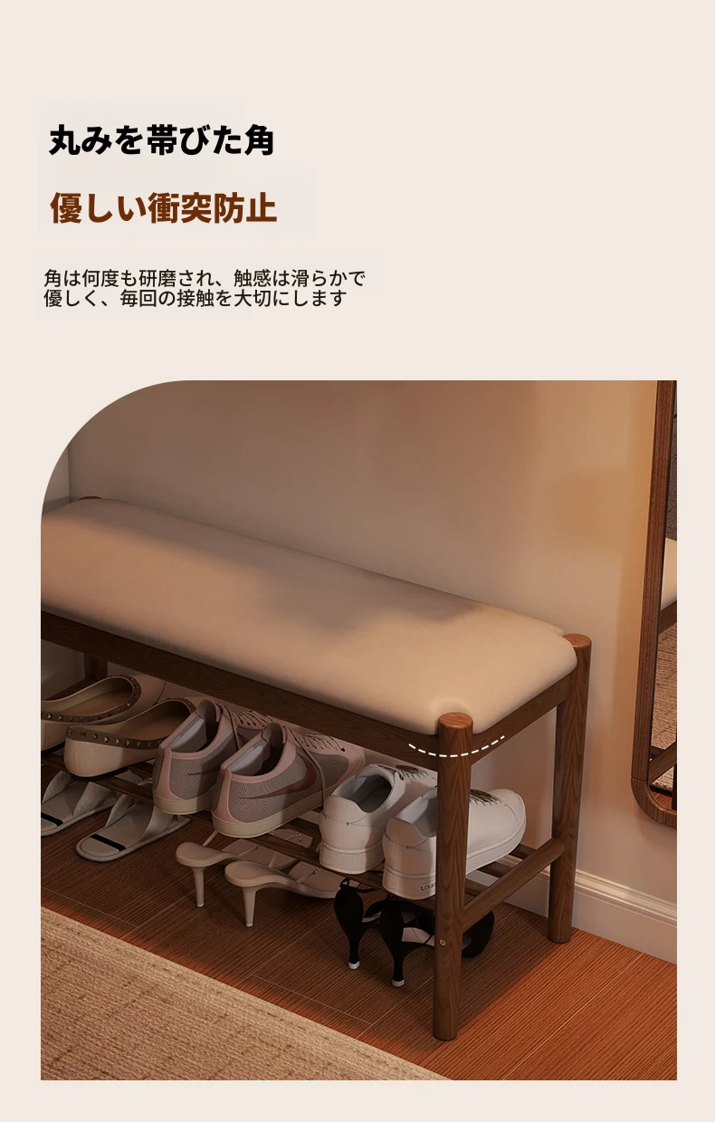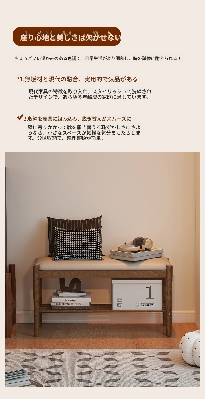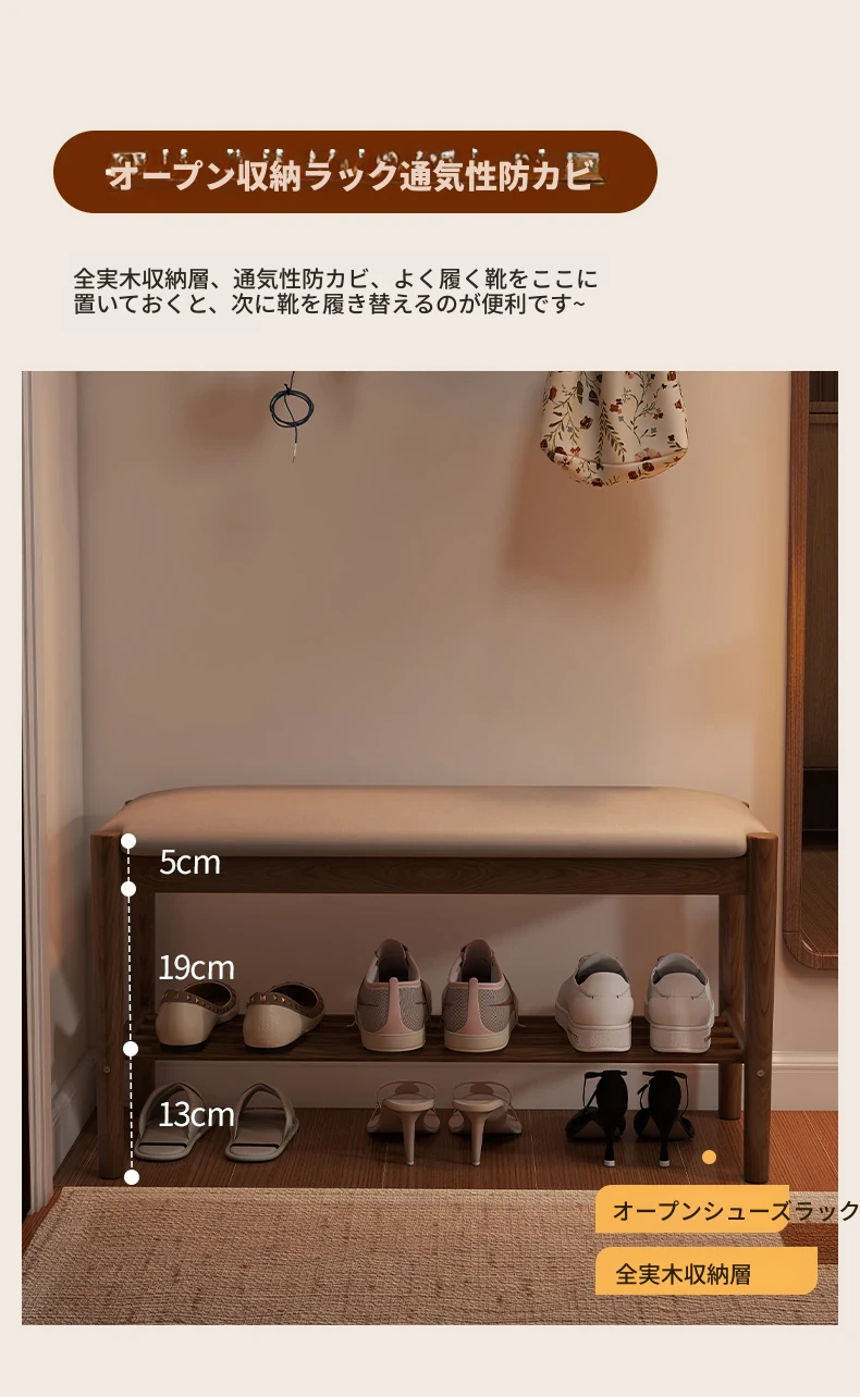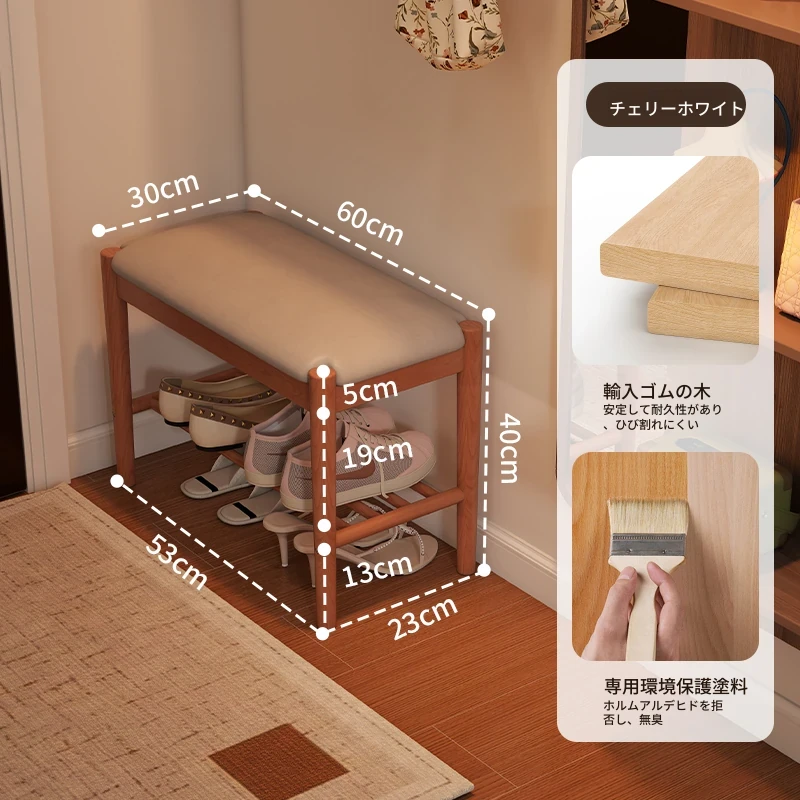 天然木製の靴を履くためのベンチ - 家庭用エントランスに最適!座れるソフトパッド付きのロングベンチとシューズラックが一体化。スタイリッシュで機能的なデザインが、あなたの玄関をおしゃれに演出します!