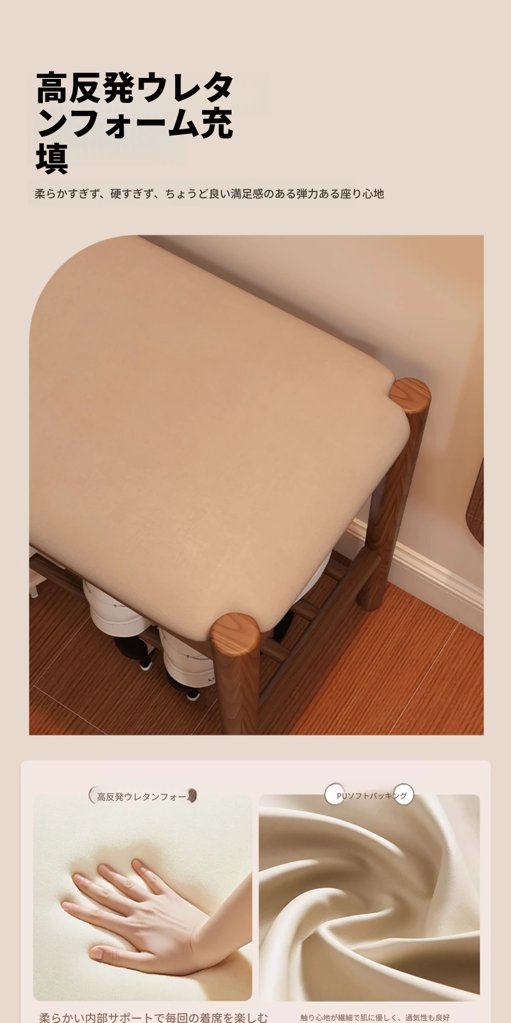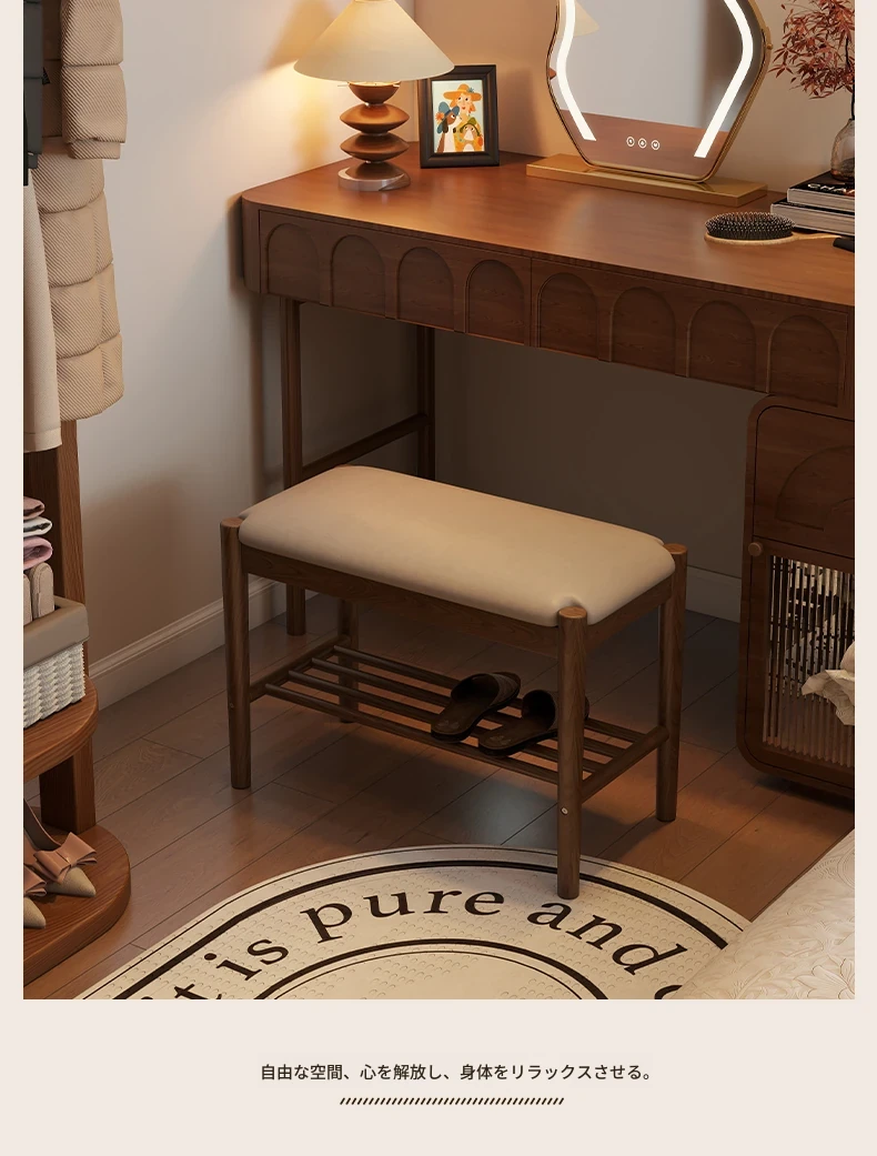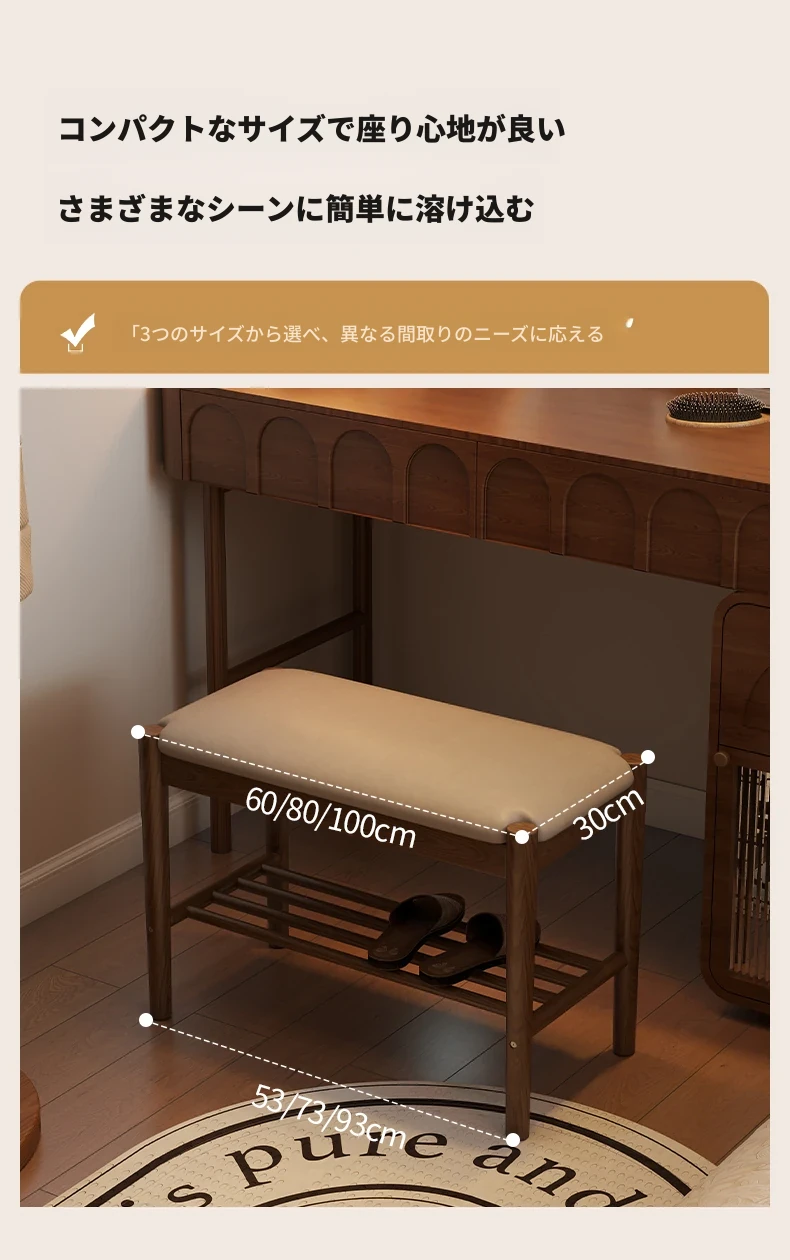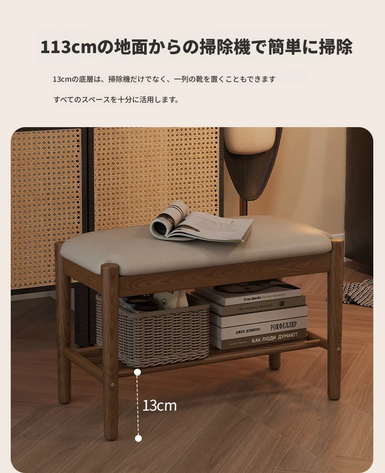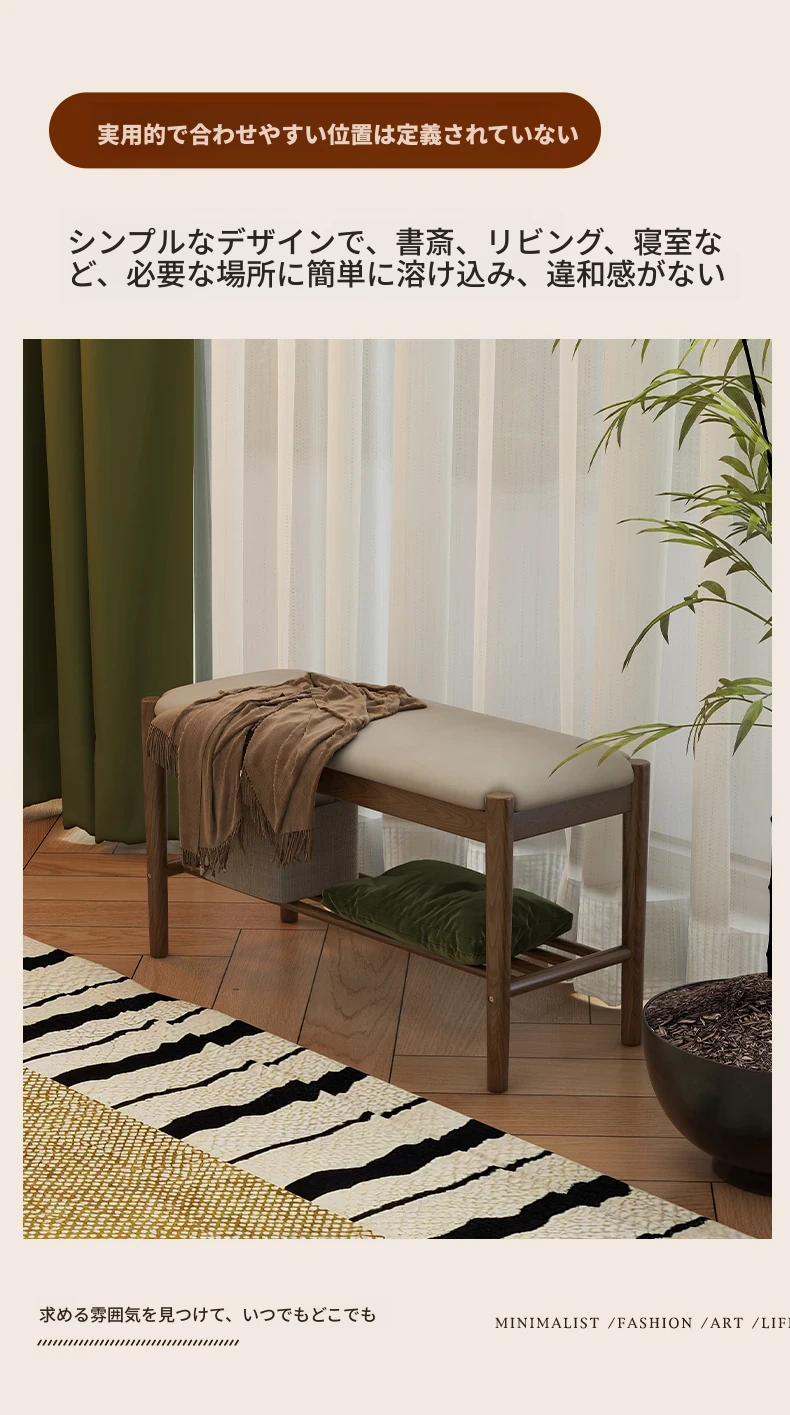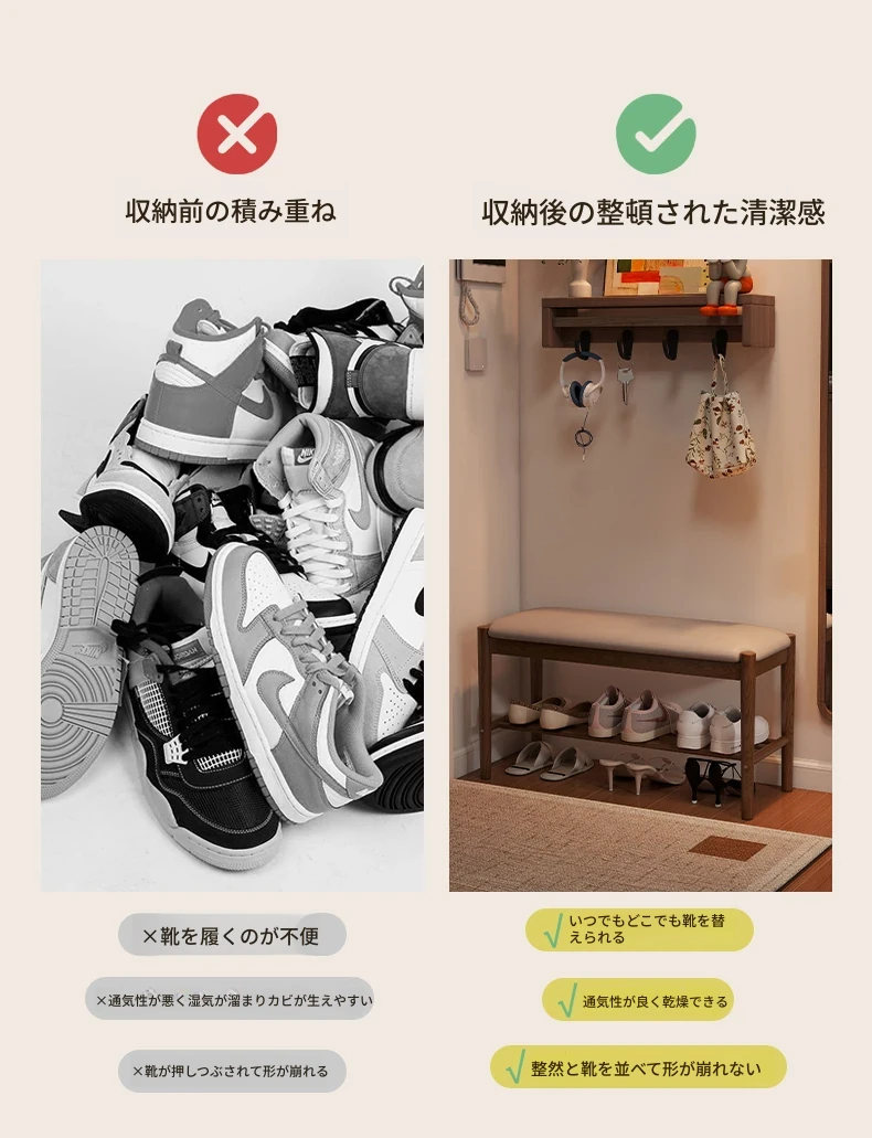 天然木製の靴を履くためのベンチ - 家庭用エントランスに最適!座れるソフトパッド付きのロングベンチとシューズラックが一体化。スタイリッシュで機能的なデザインが、あなたの玄関をおしゃれに演出します!
