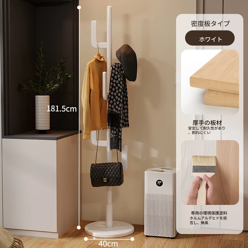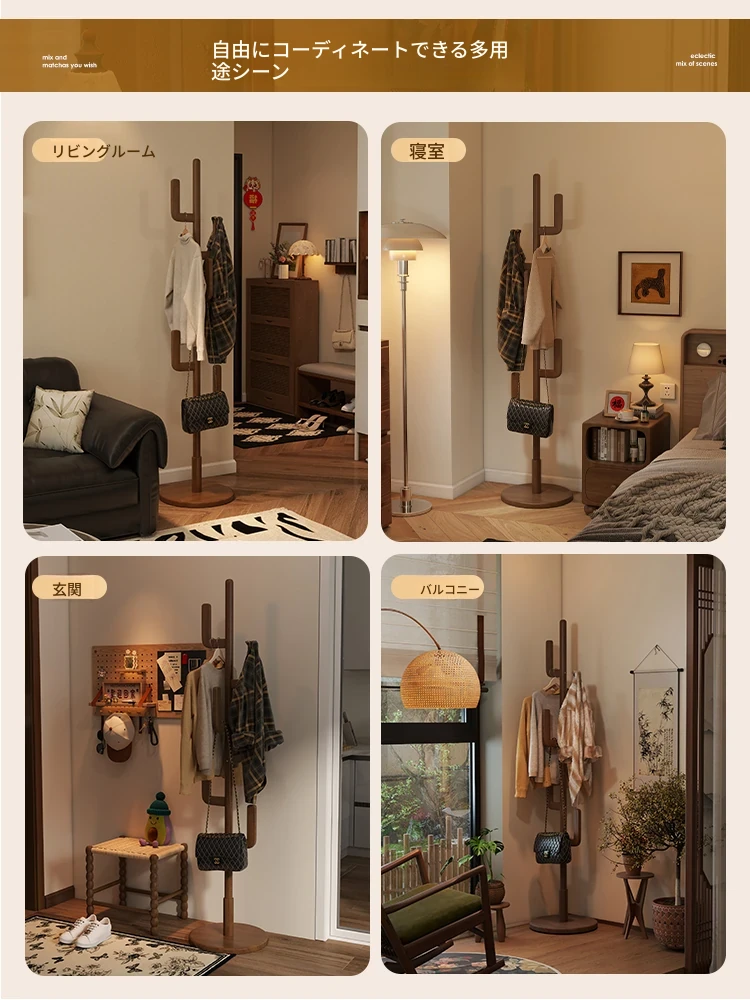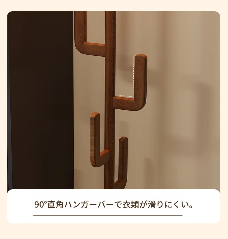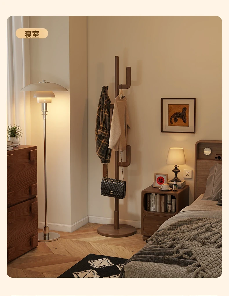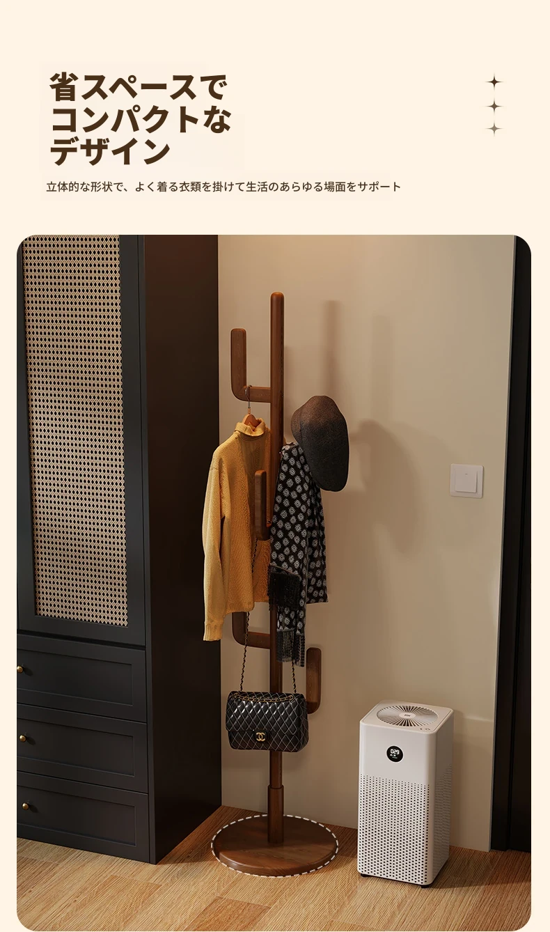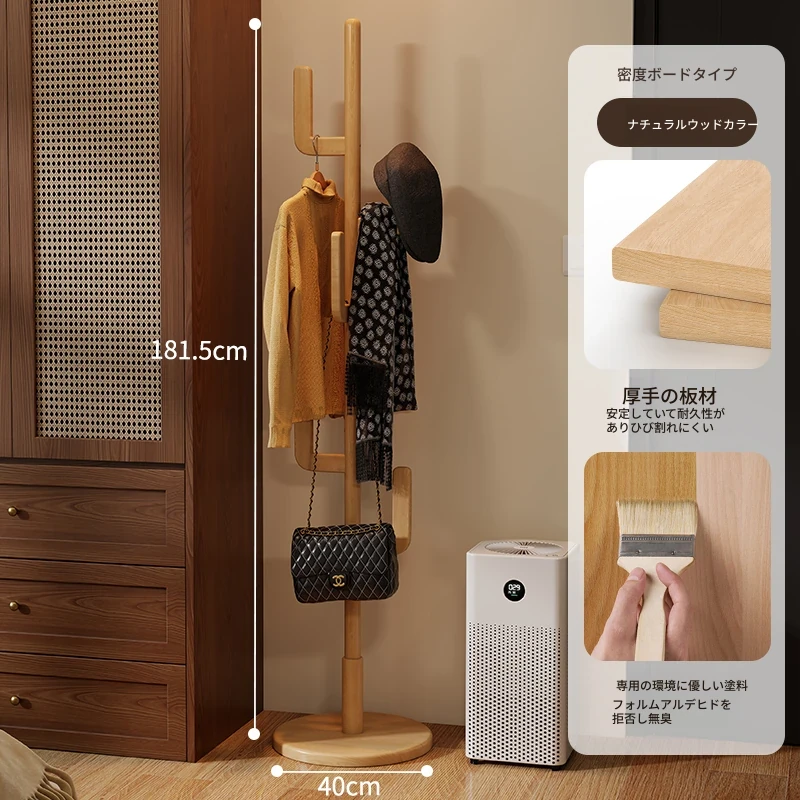 北欧風のシンプルな実木製スタンドコートラック - おしゃれで機能的な衣類収納、モダンな寝室にぴったり!