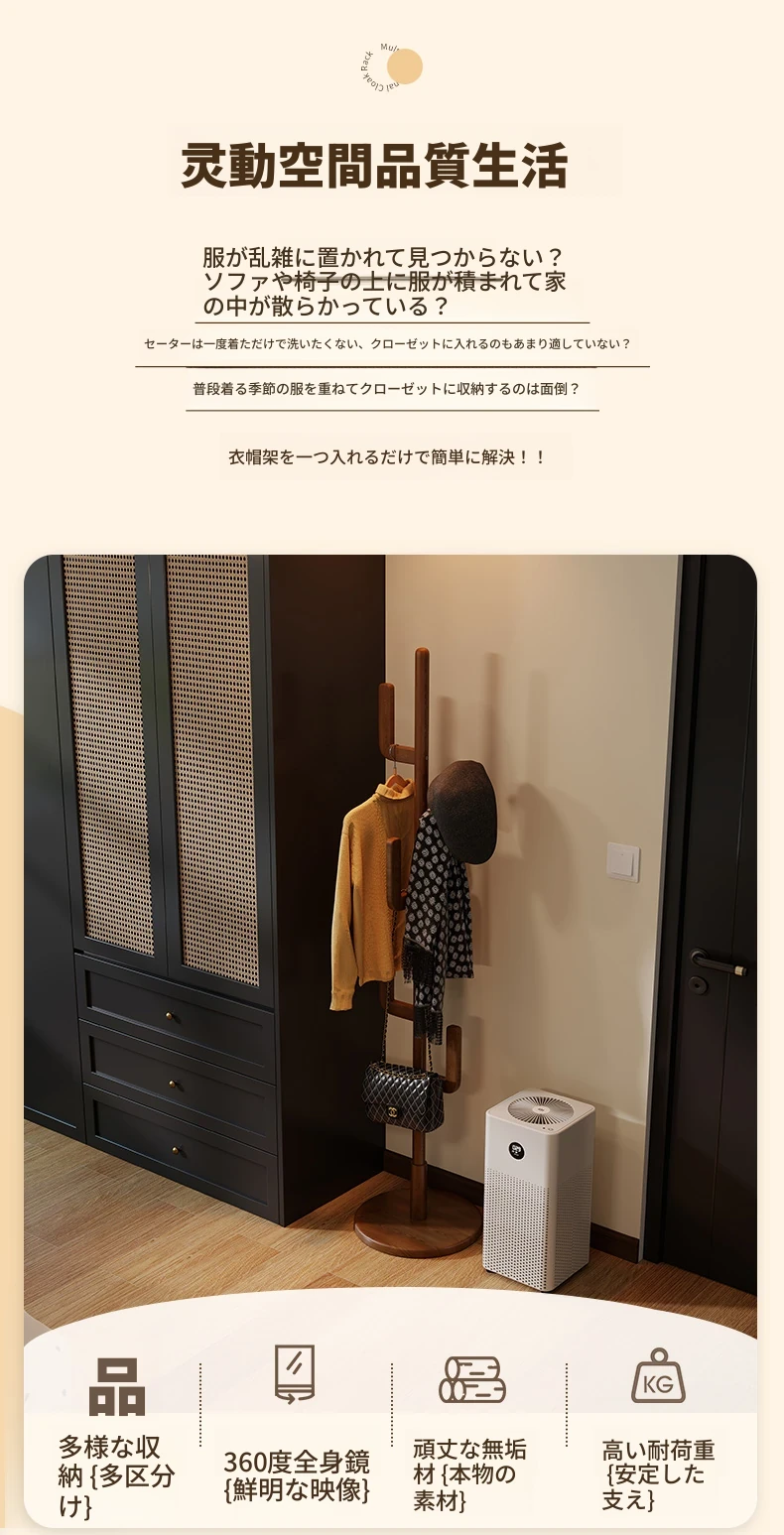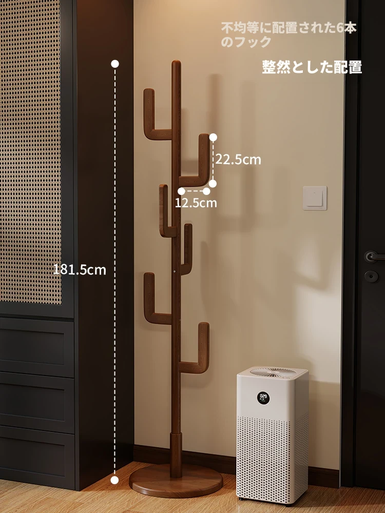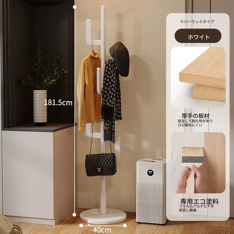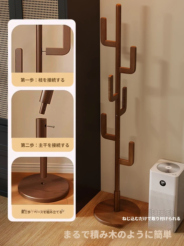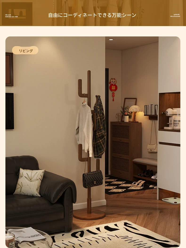 北欧風のシンプルな実木製スタンドコートラック - おしゃれで機能的な衣類収納、モダンな寝室にぴったり!
