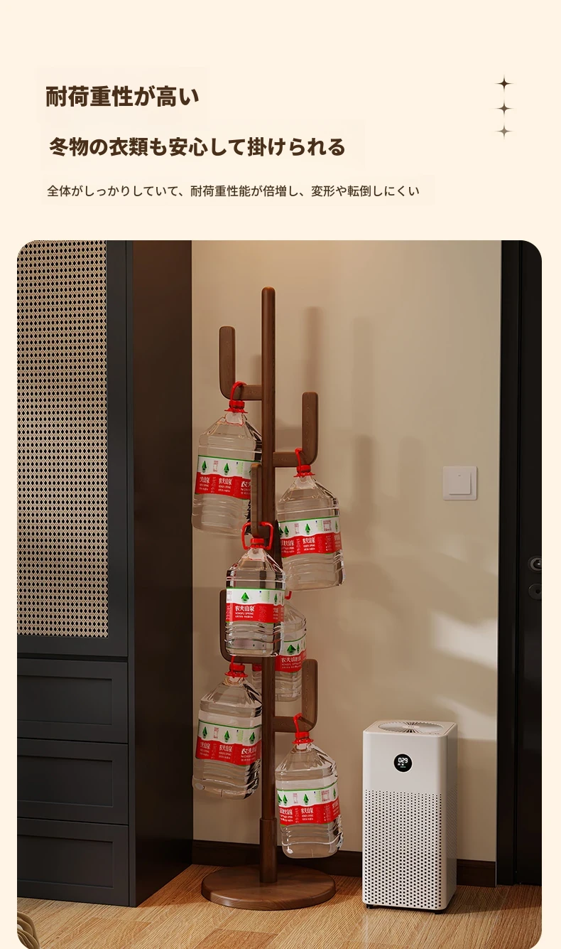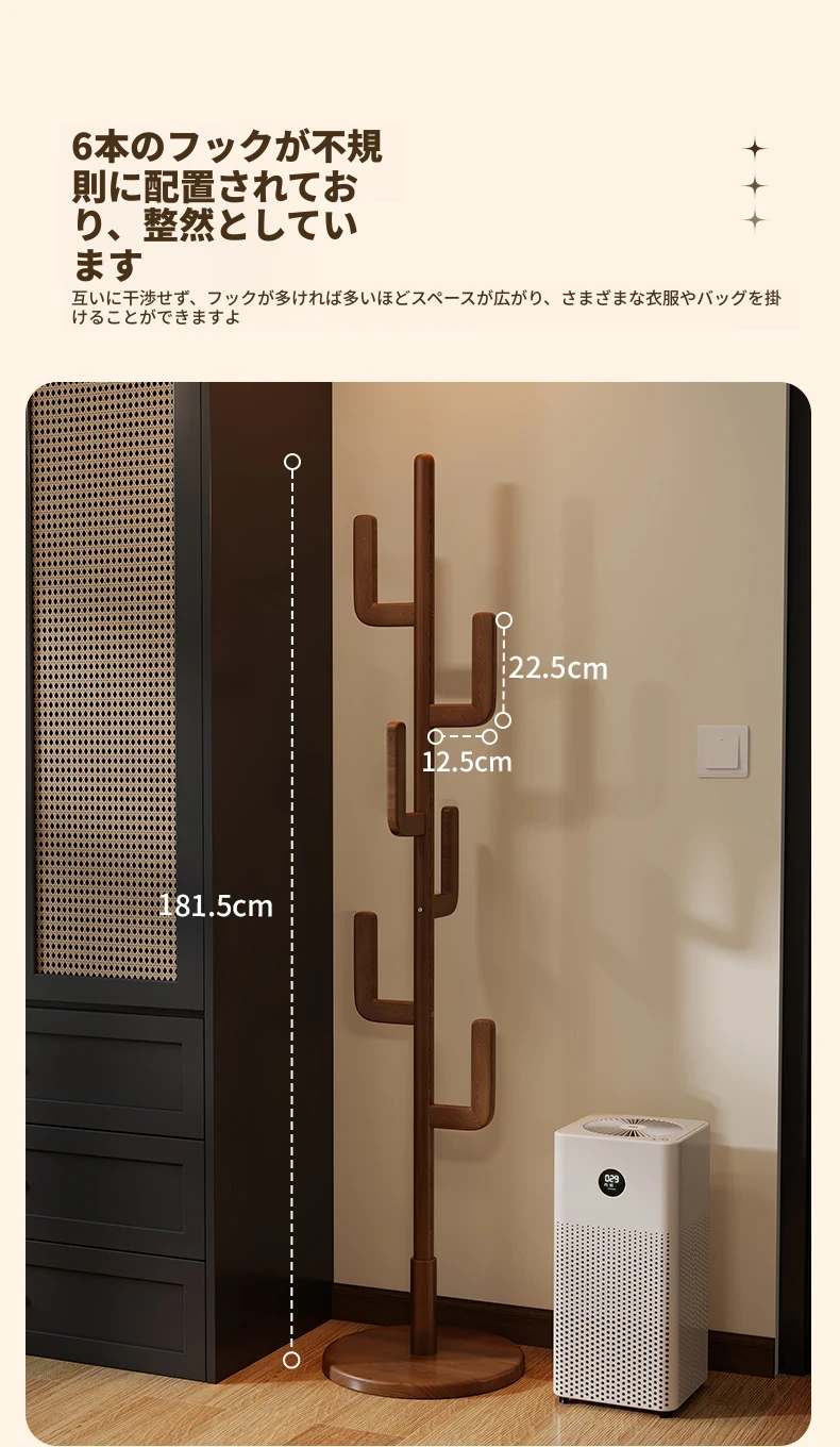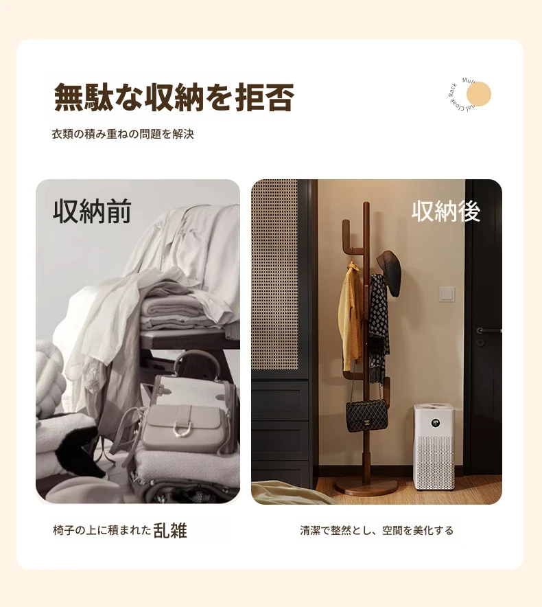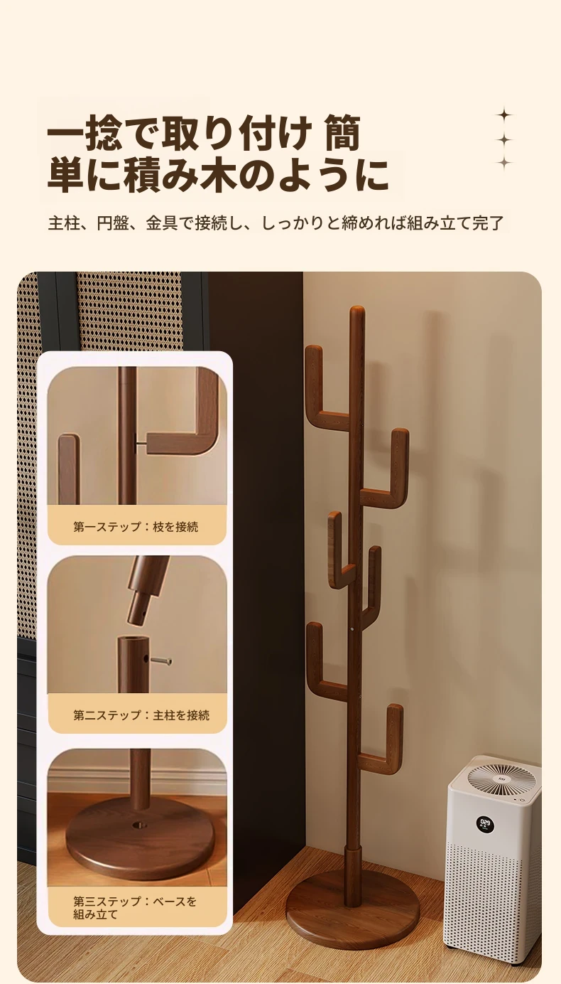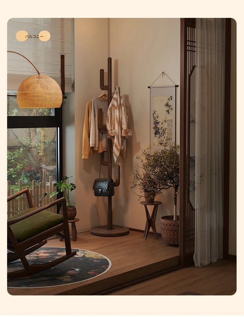 北欧風のシンプルな実木製スタンドコートラック - おしゃれで機能的な衣類収納、モダンな寝室にぴったり!