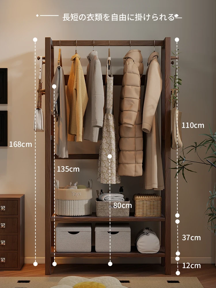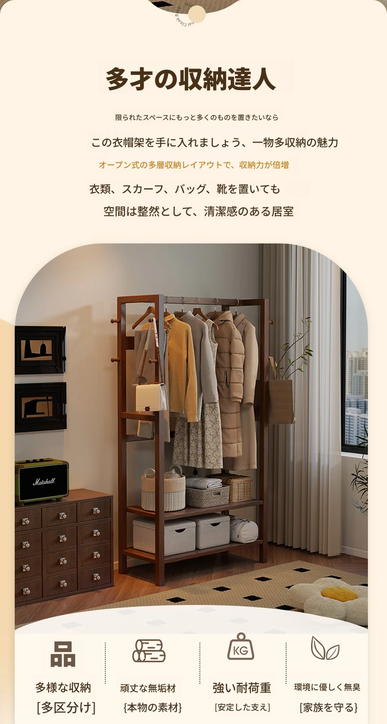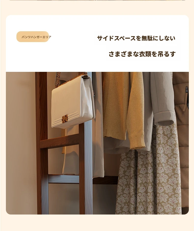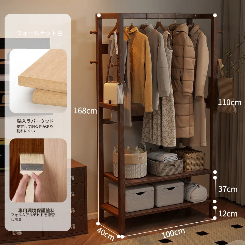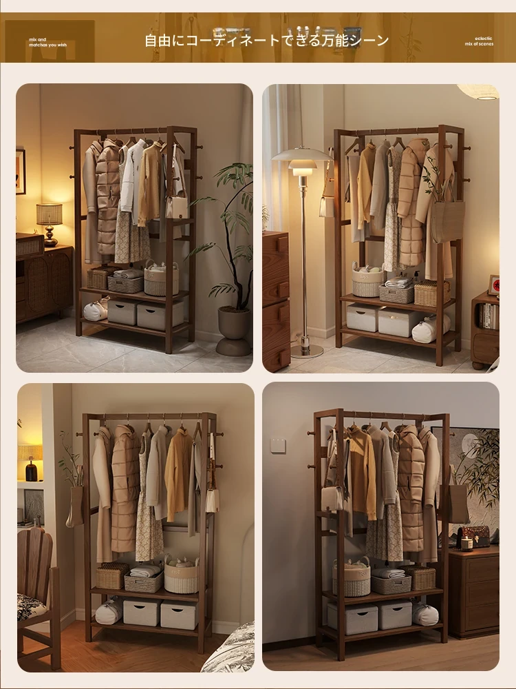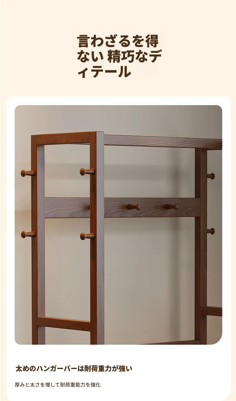 天然木材使用のスタイリッシュなスタンド式衣類ハンガー!寝室やリビングにぴったりな多機能収納ラック。ベッドサイドにも最適、小型で場所を取らず、あなたの生活空間をおしゃれに演出します。