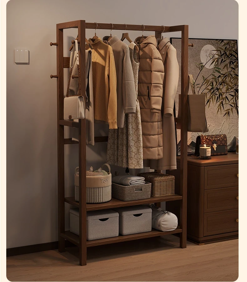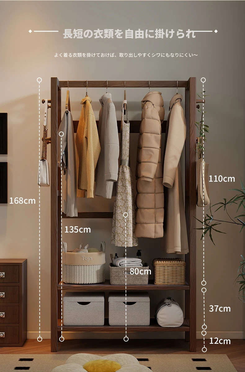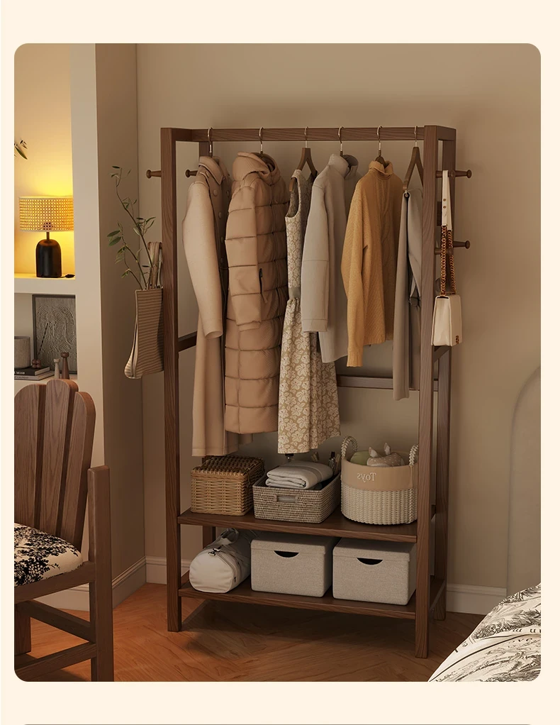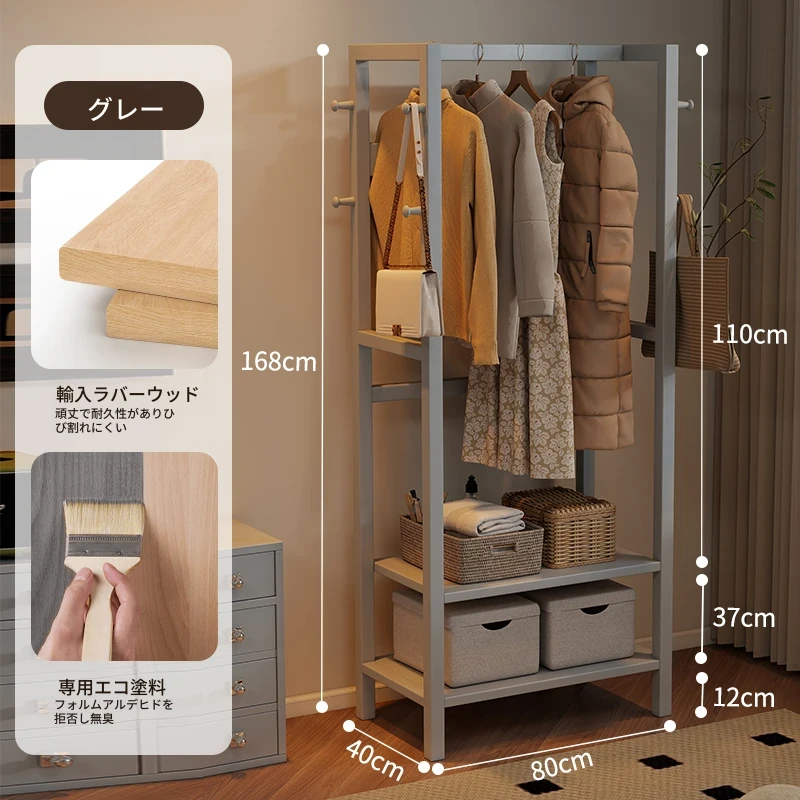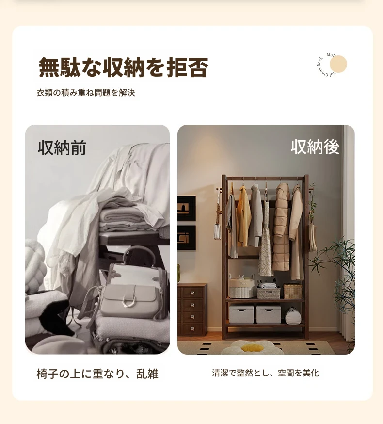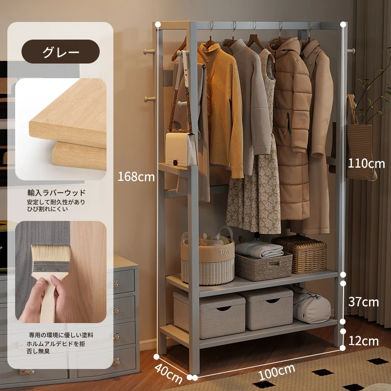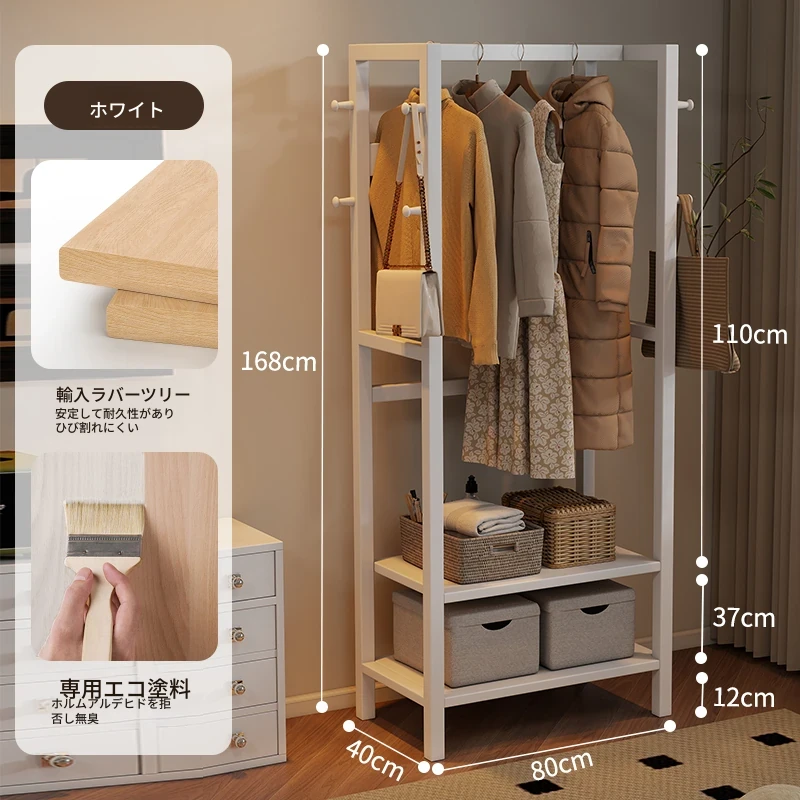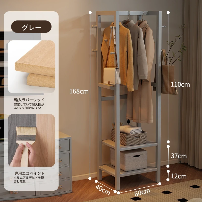 天然木材使用のスタイリッシュなスタンド式衣類ハンガー!寝室やリビングにぴったりな多機能収納ラック。ベッドサイドにも最適、小型で場所を取らず、あなたの生活空間をおしゃれに演出します。