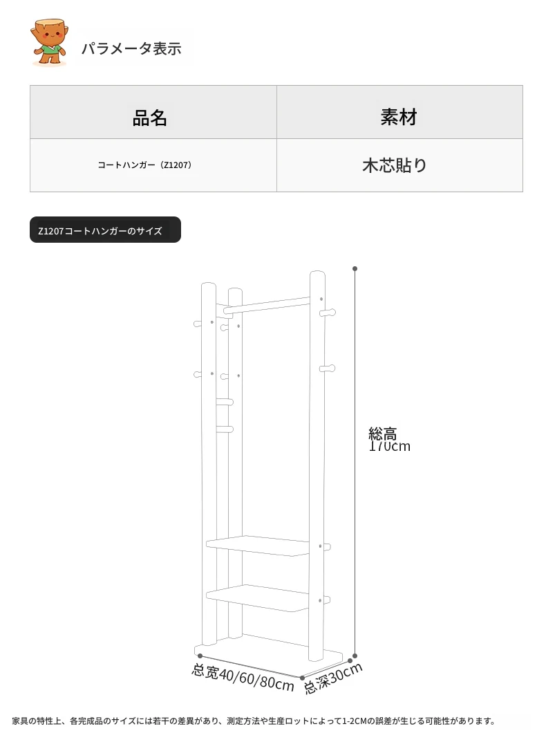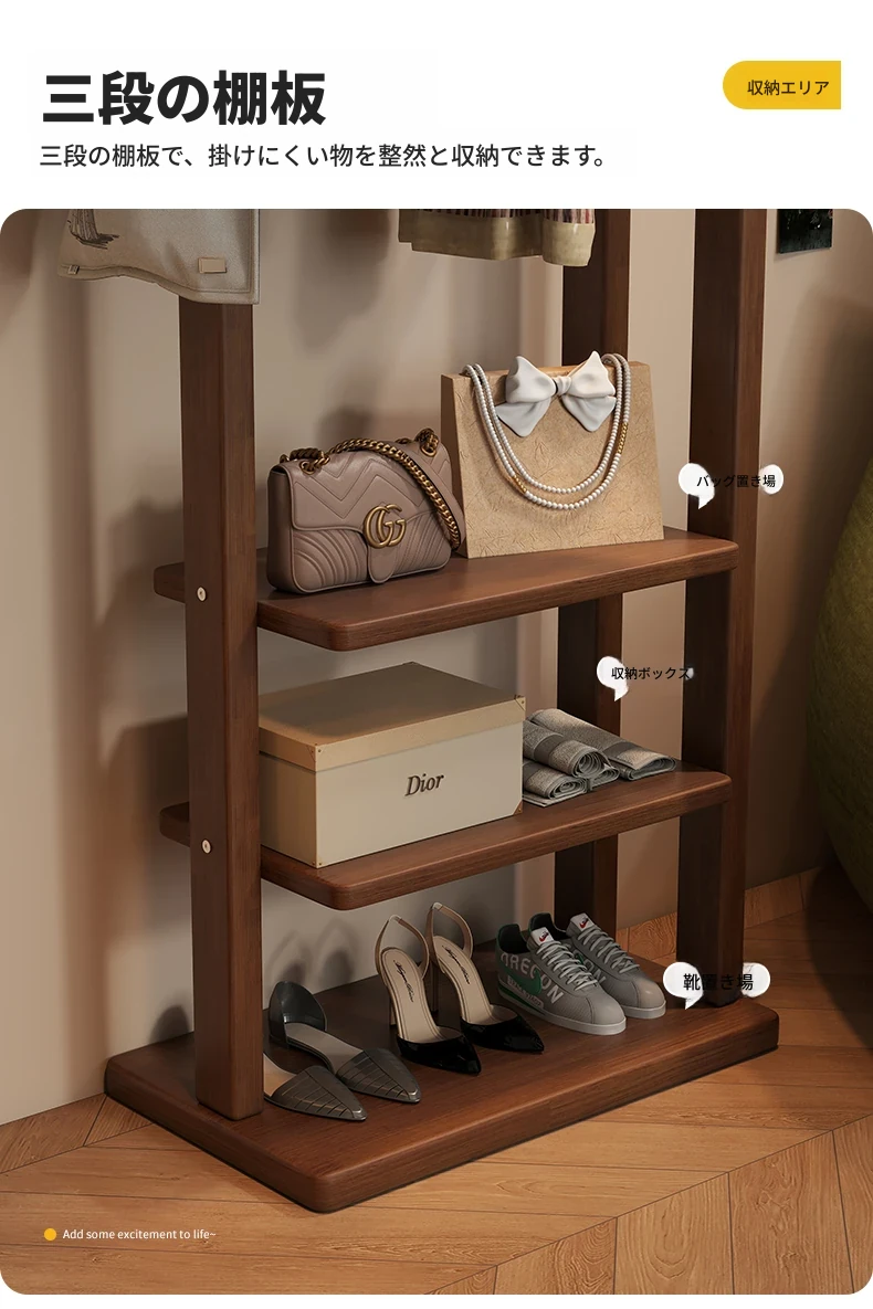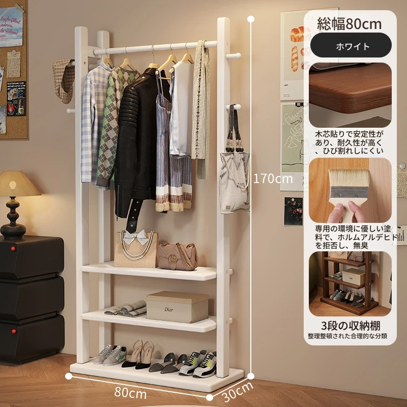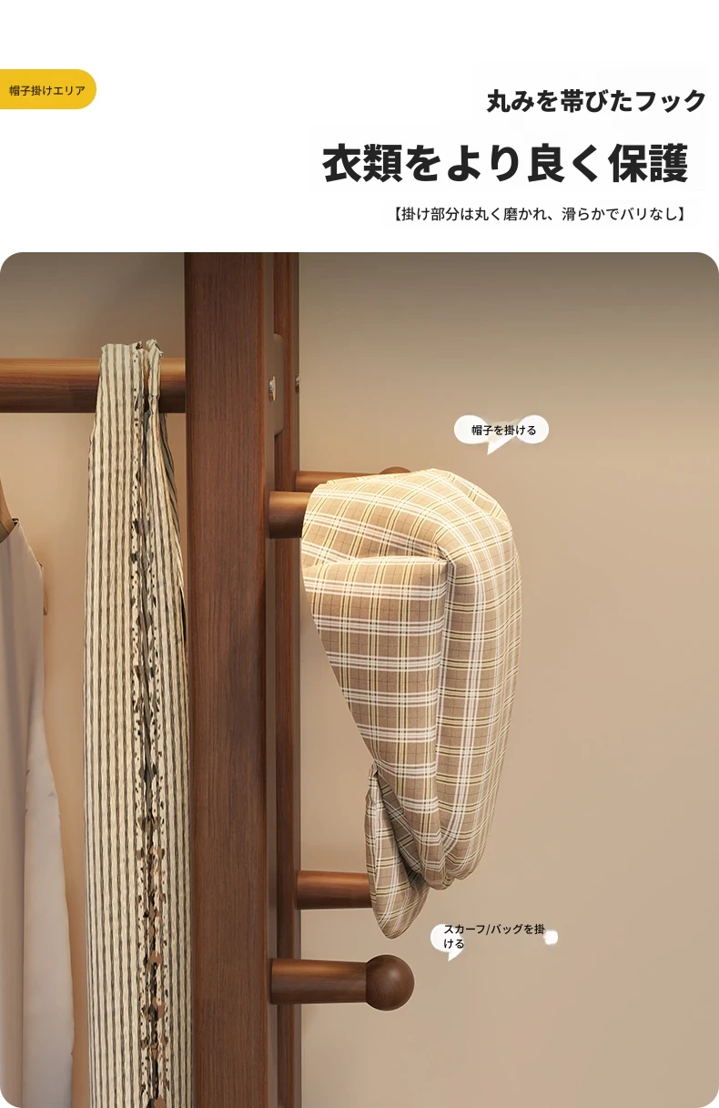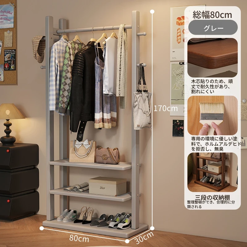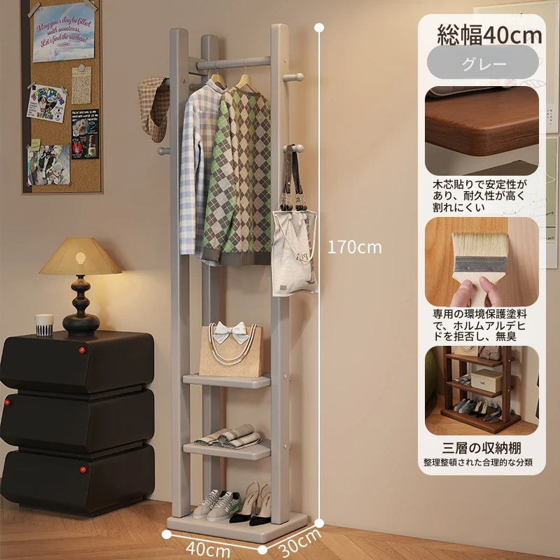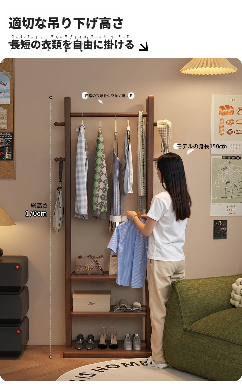 天然木製のフロアコートハンガー - シンプルでおしゃれな衣類収納ラック、リビングや寝室に最適な多機能収納アイテム!お部屋をすっきり整えて、おしゃれな空間を演出します。