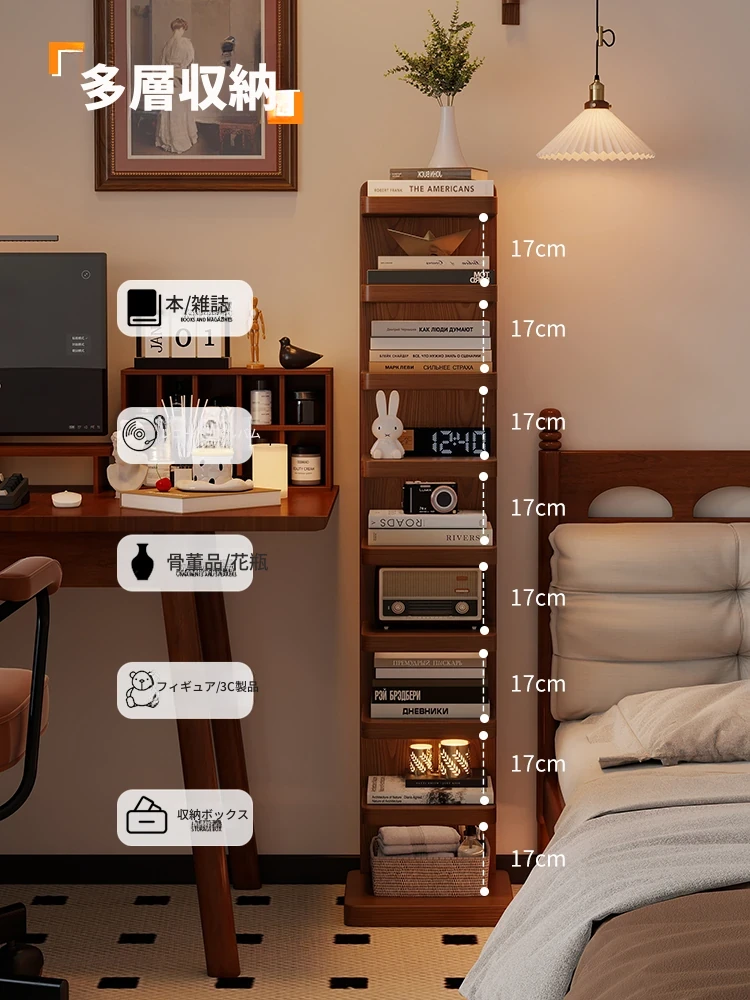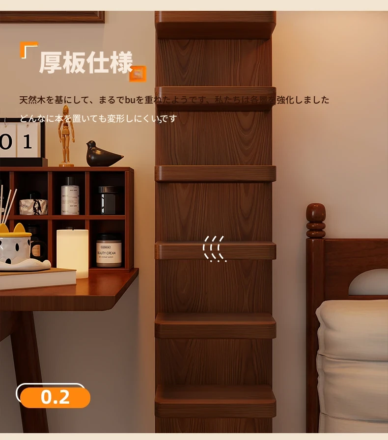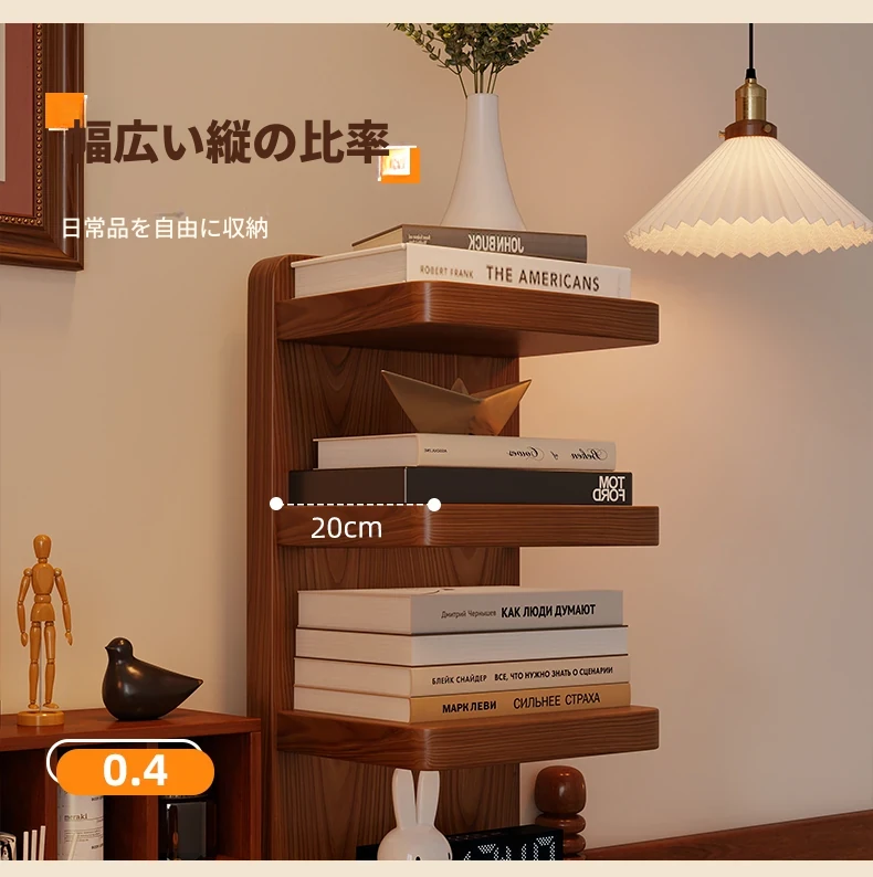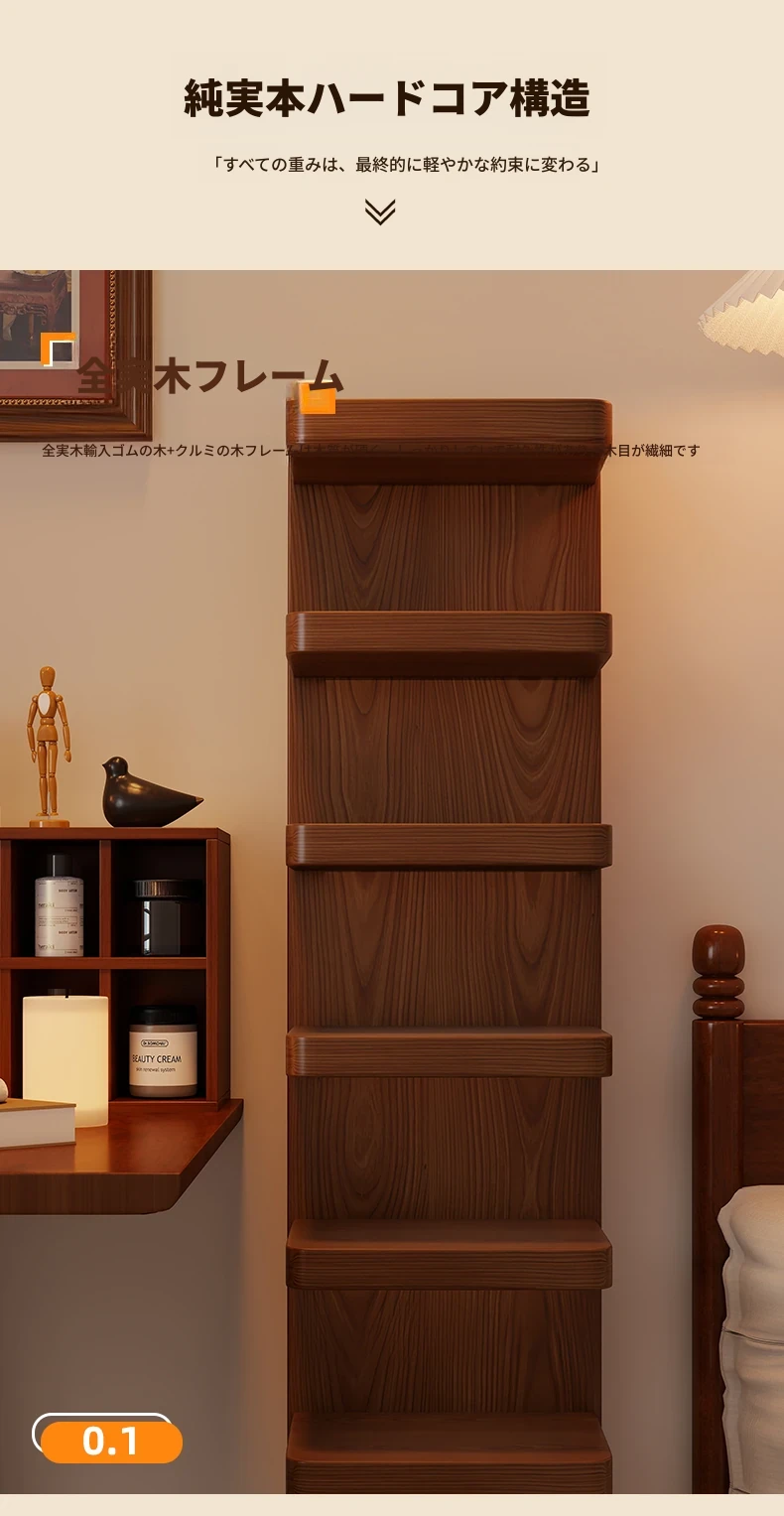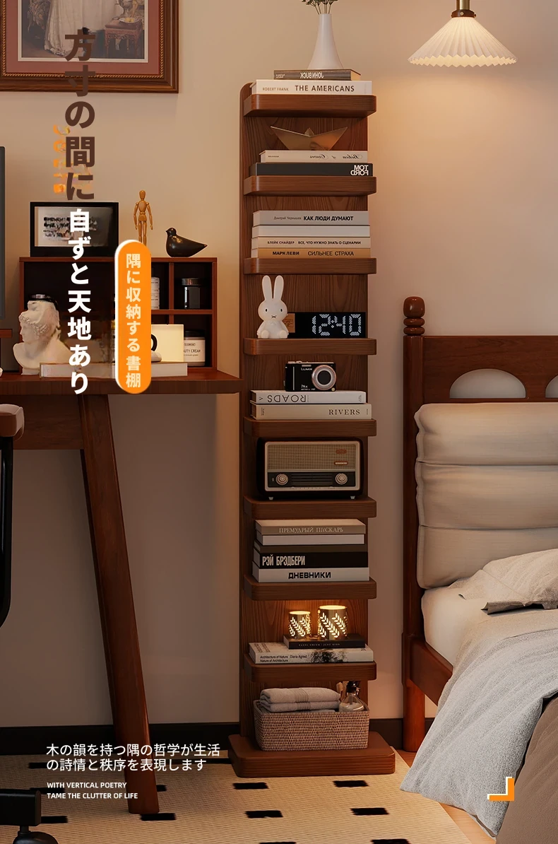 無垢材使用の隠し書棚!おしゃれなフロアスタンド収納ラック、ウォールコーナーにぴったり!リビングや寝室に最適なスリムな小書柜、ベッドサイドテーブルとしても使える便利アイテム!