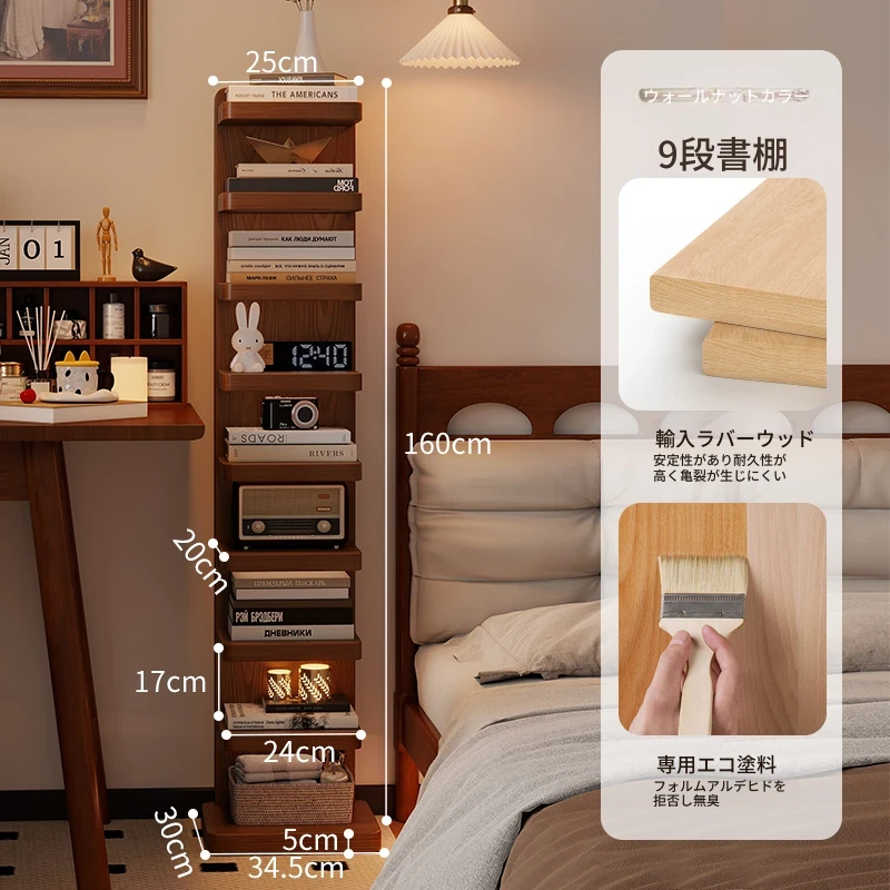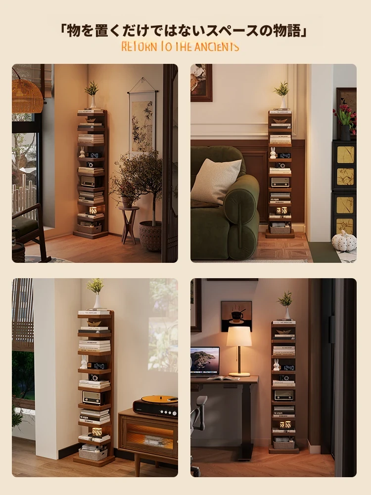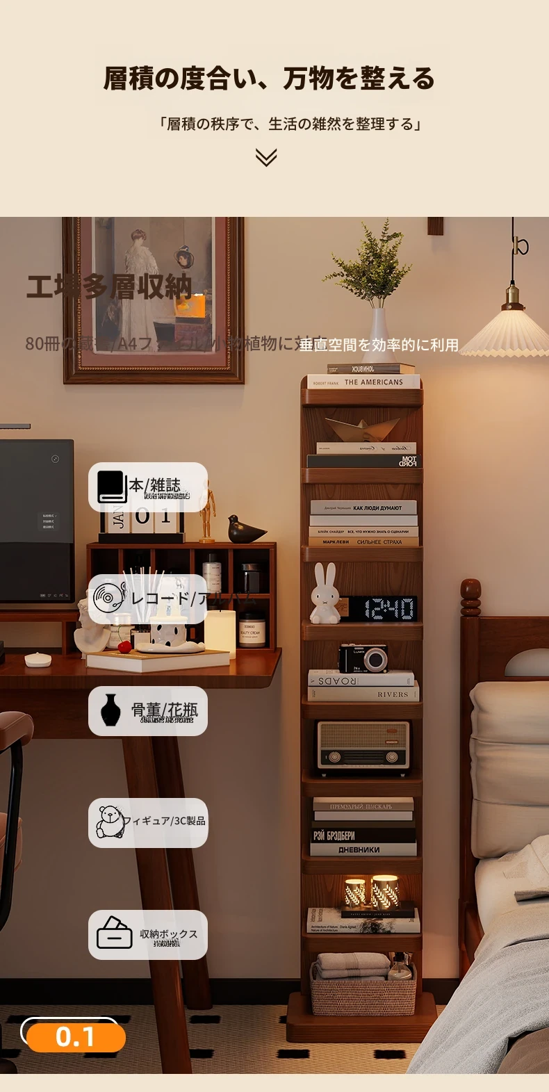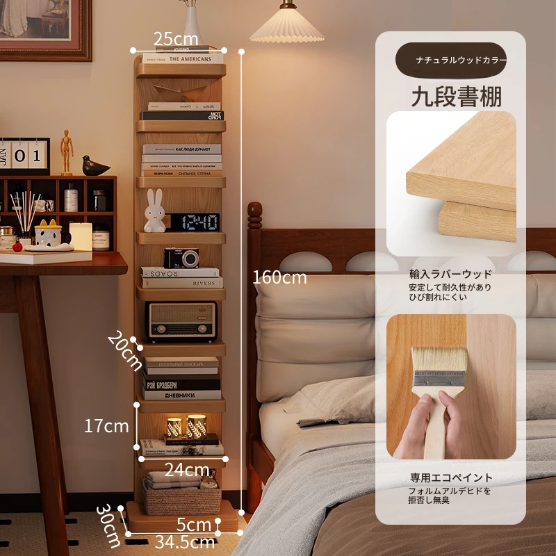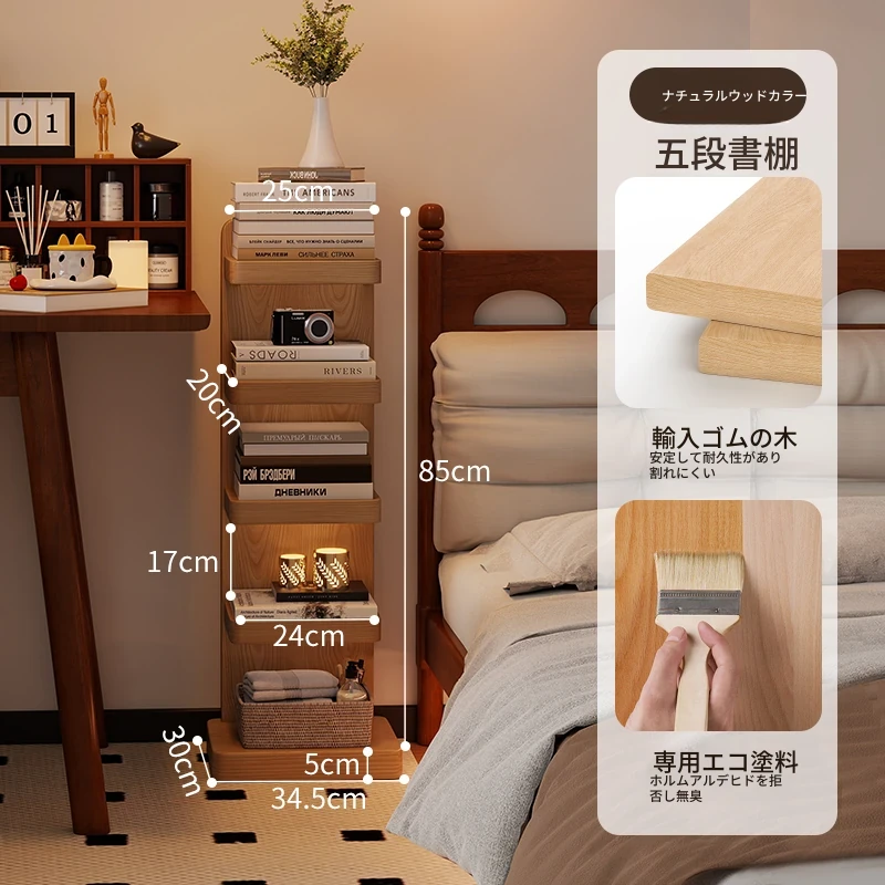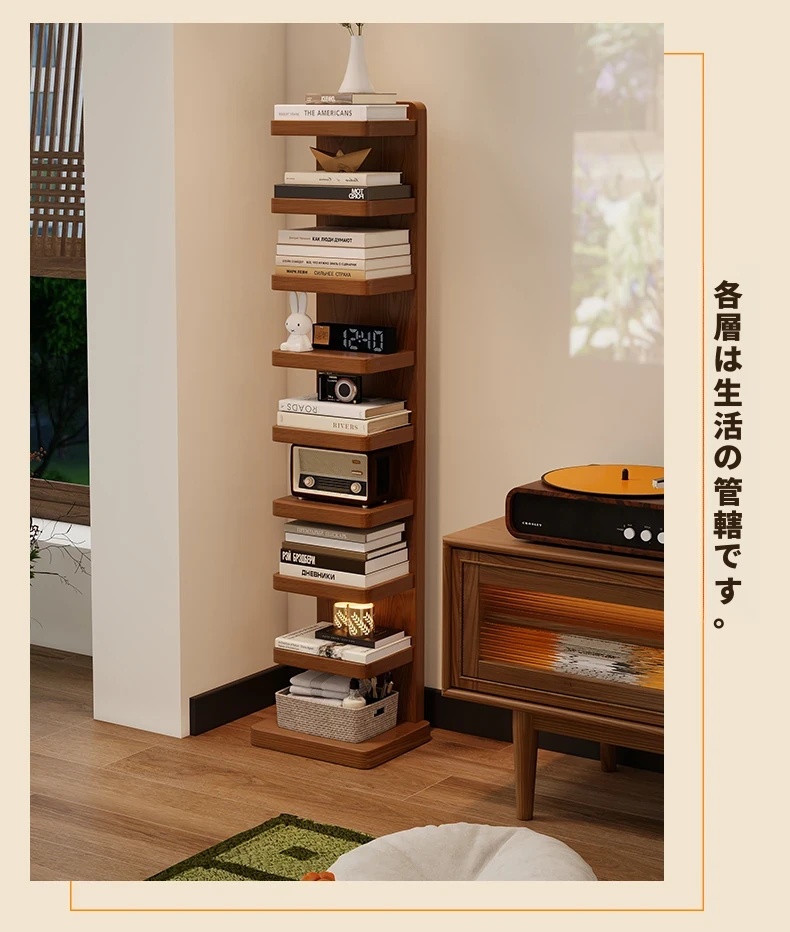 無垢材使用の隠し書棚!おしゃれなフロアスタンド収納ラック、ウォールコーナーにぴったり!リビングや寝室に最適なスリムな小書柜、ベッドサイドテーブルとしても使える便利アイテム!