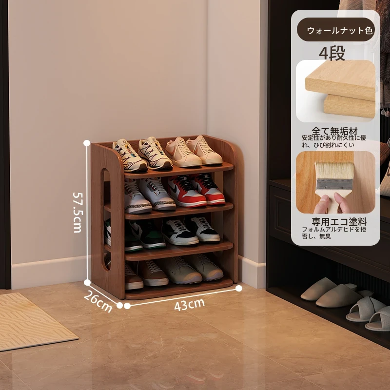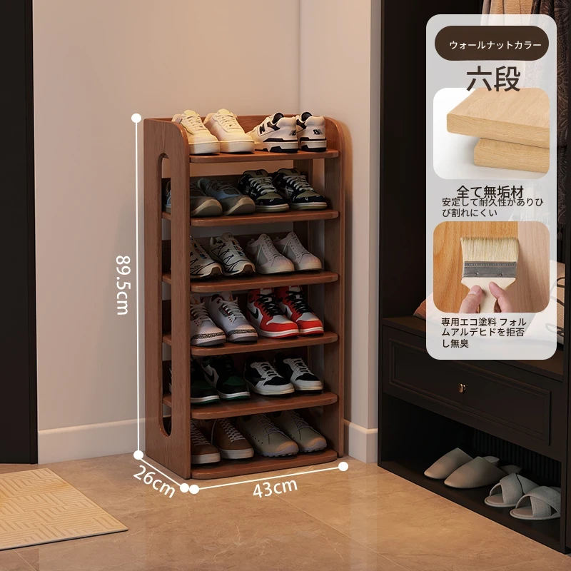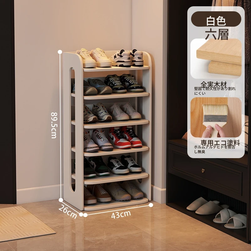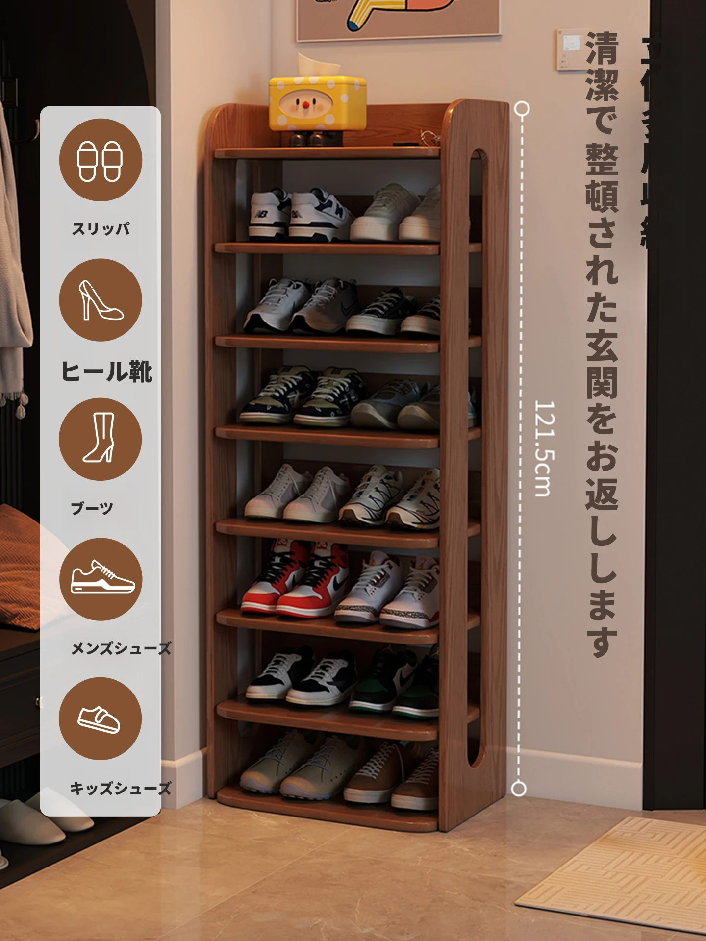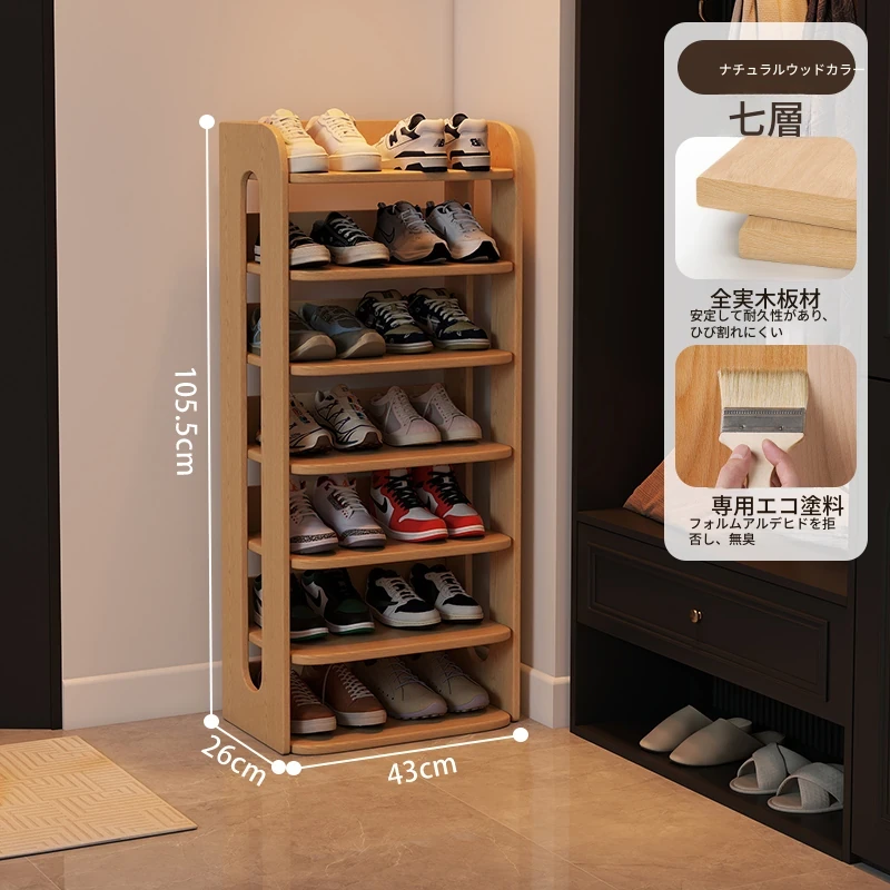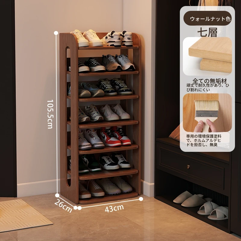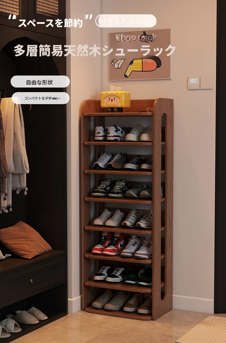 全実木製の多層玄関シューズラック - スペースを節約するシンプルな靴収納棚、家庭用の広々とした室内収納スタンド。おしゃれで機能的なデザインで、すっきり整理された玄関を実現します!