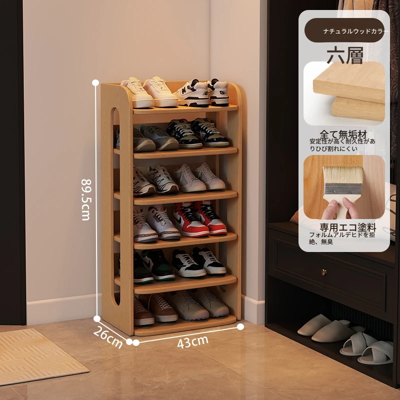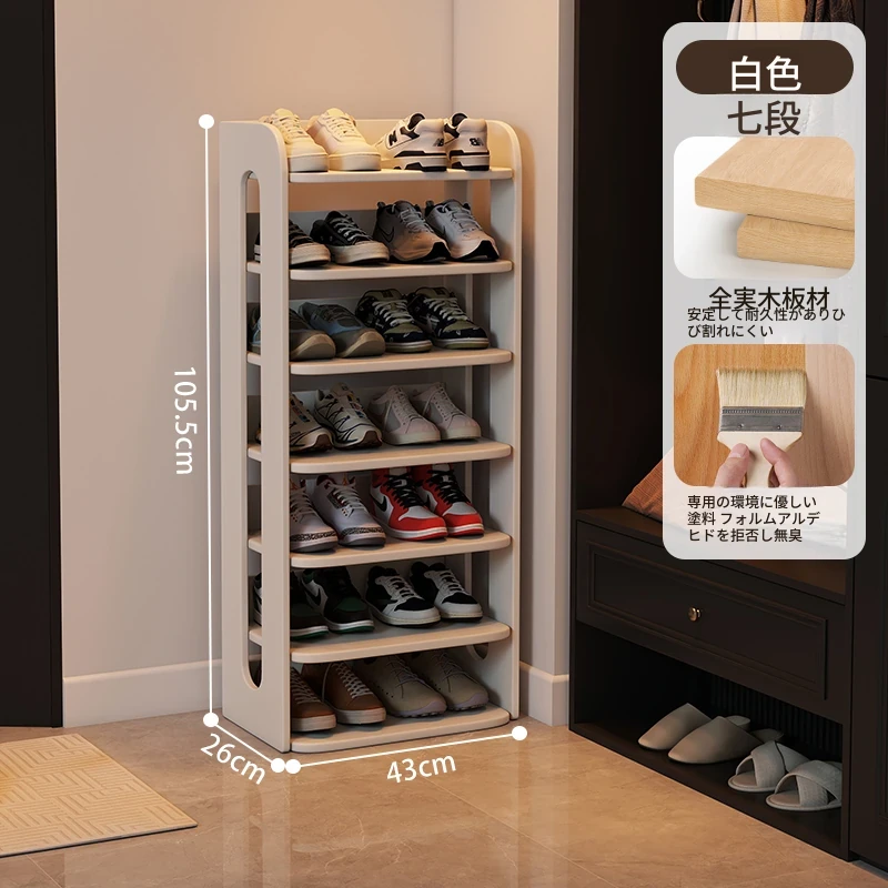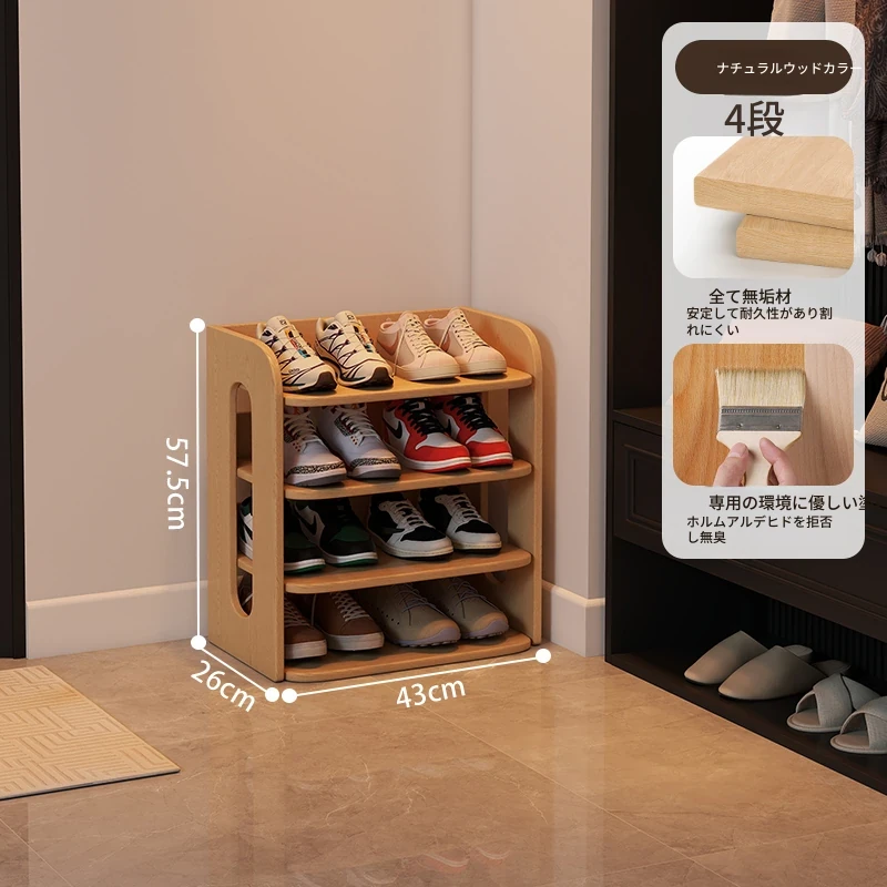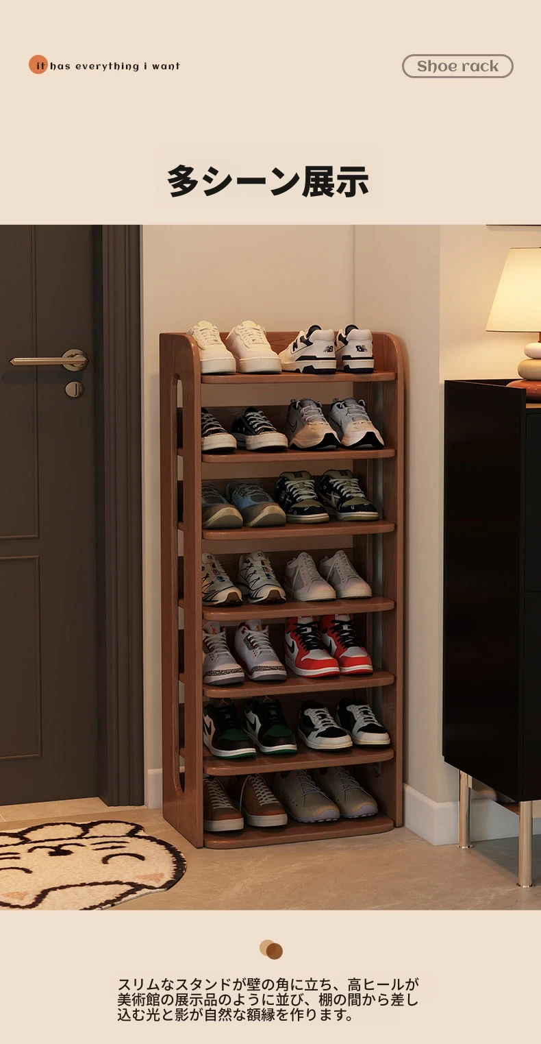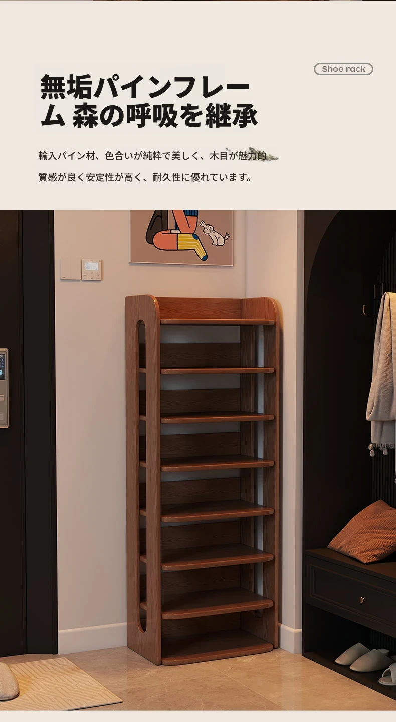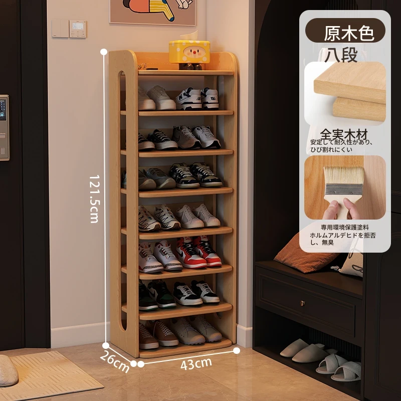 全実木製の多層玄関シューズラック - スペースを節約するシンプルな靴収納棚、家庭用の広々とした室内収納スタンド。おしゃれで機能的なデザインで、すっきり整理された玄関を実現します!