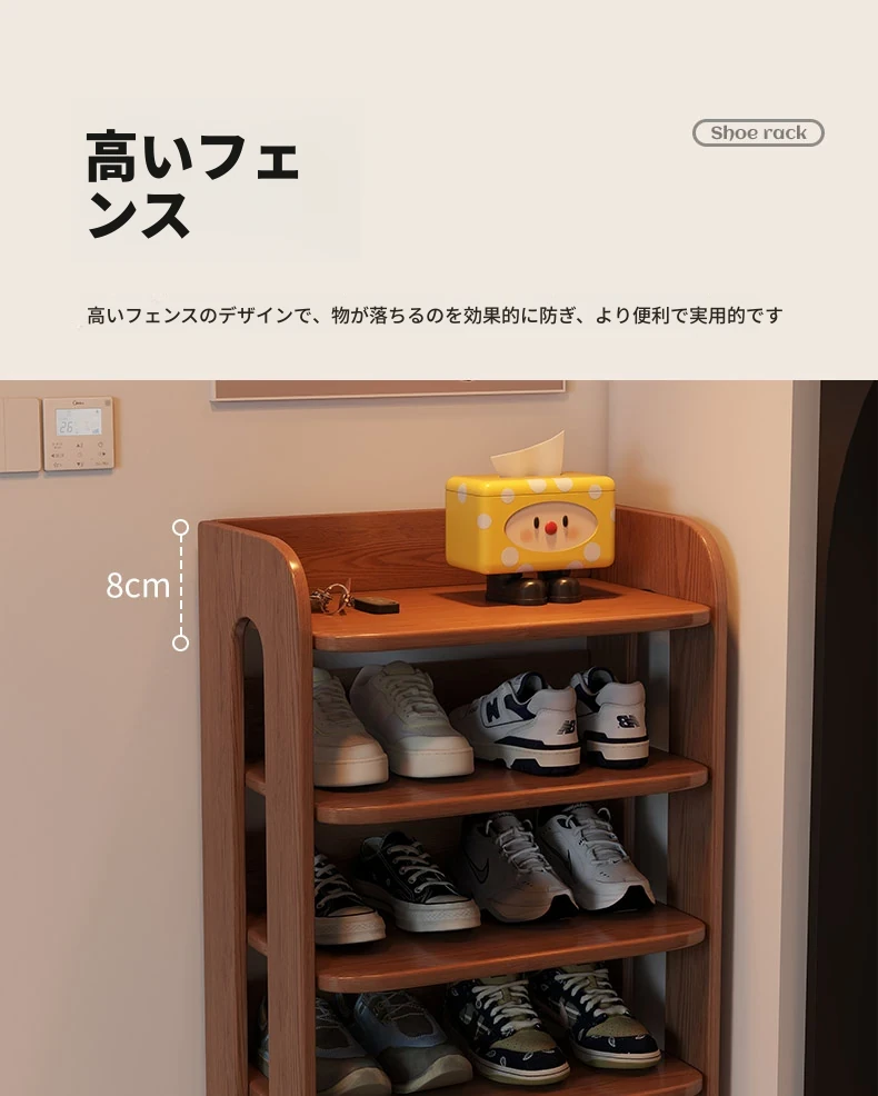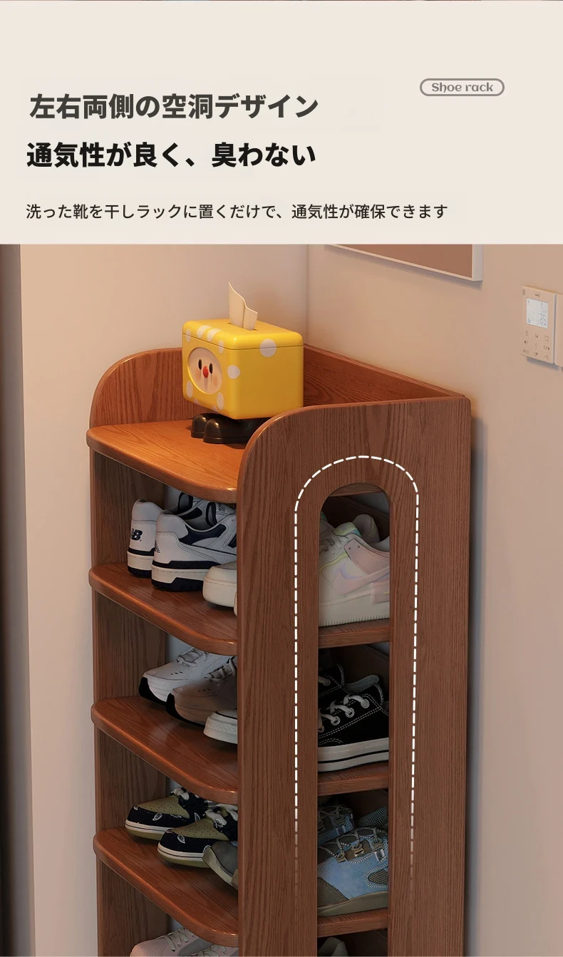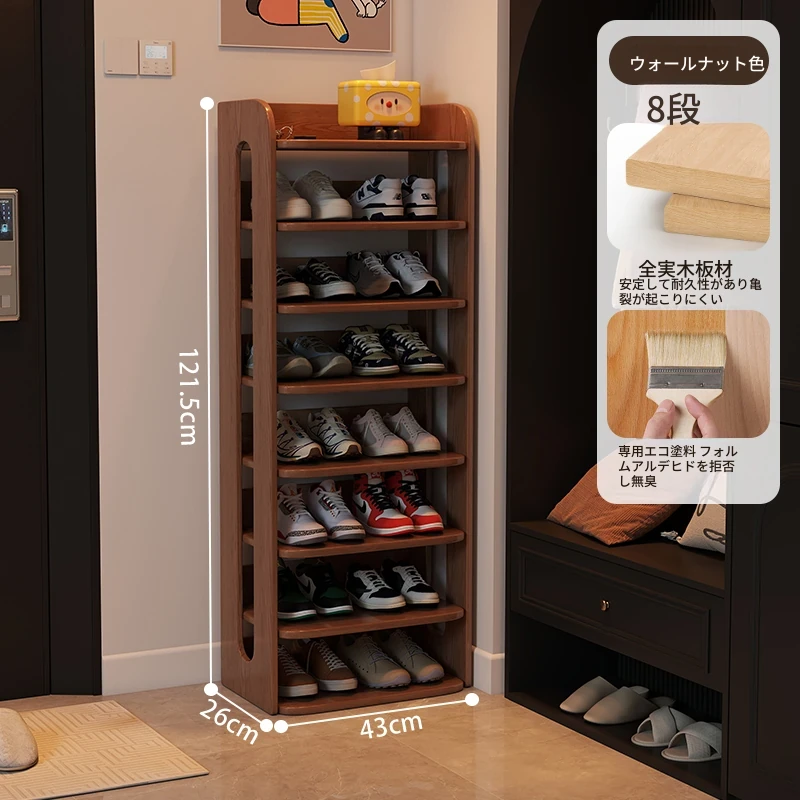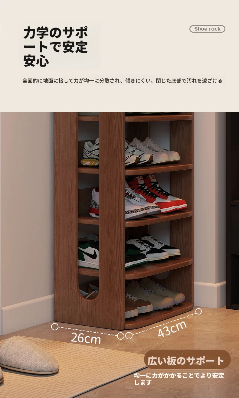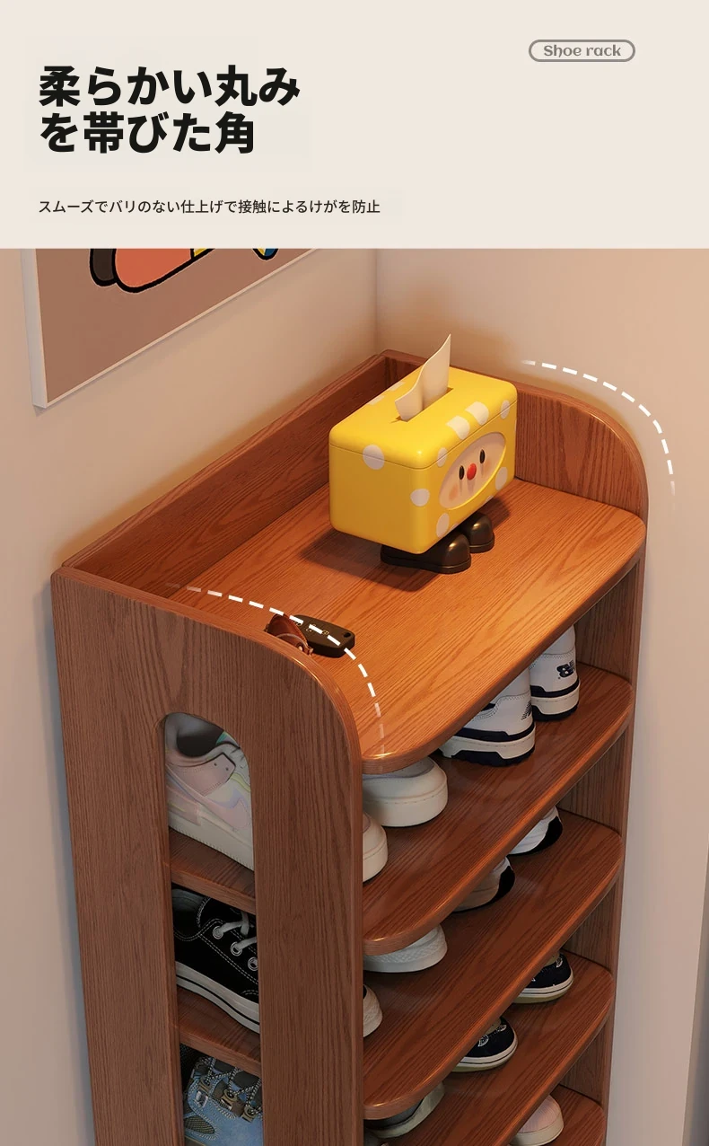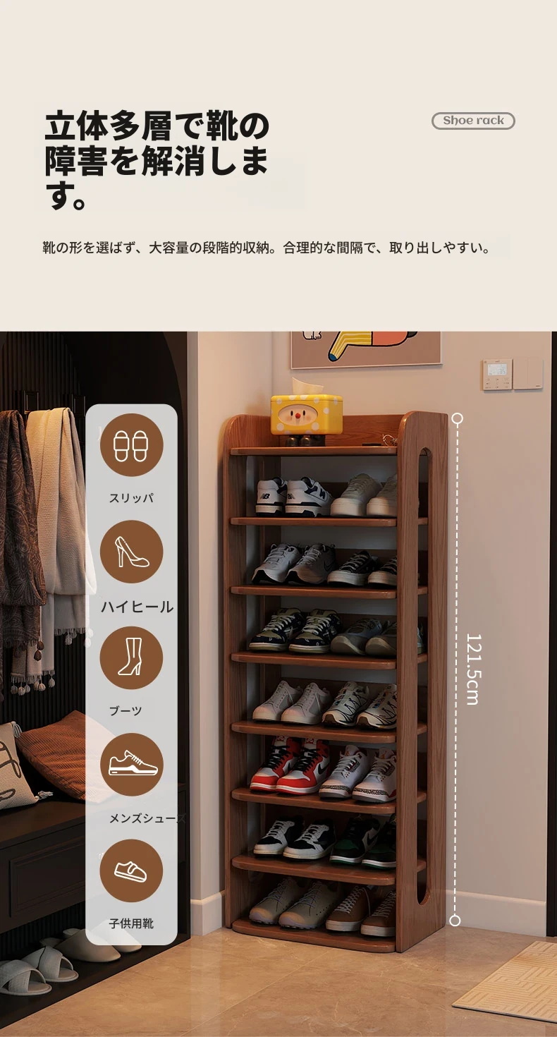 全実木製の多層玄関シューズラック - スペースを節約するシンプルな靴収納棚、家庭用の広々とした室内収納スタンド。おしゃれで機能的なデザインで、すっきり整理された玄関を実現します!