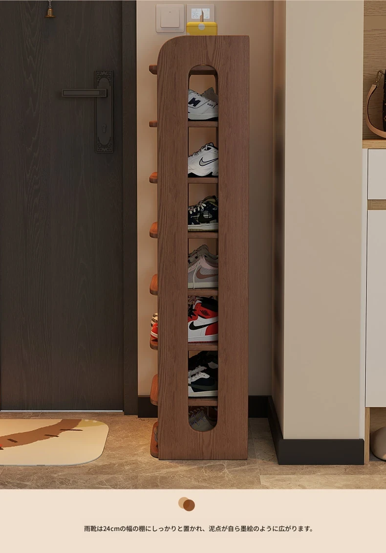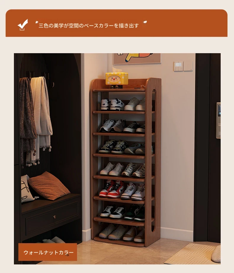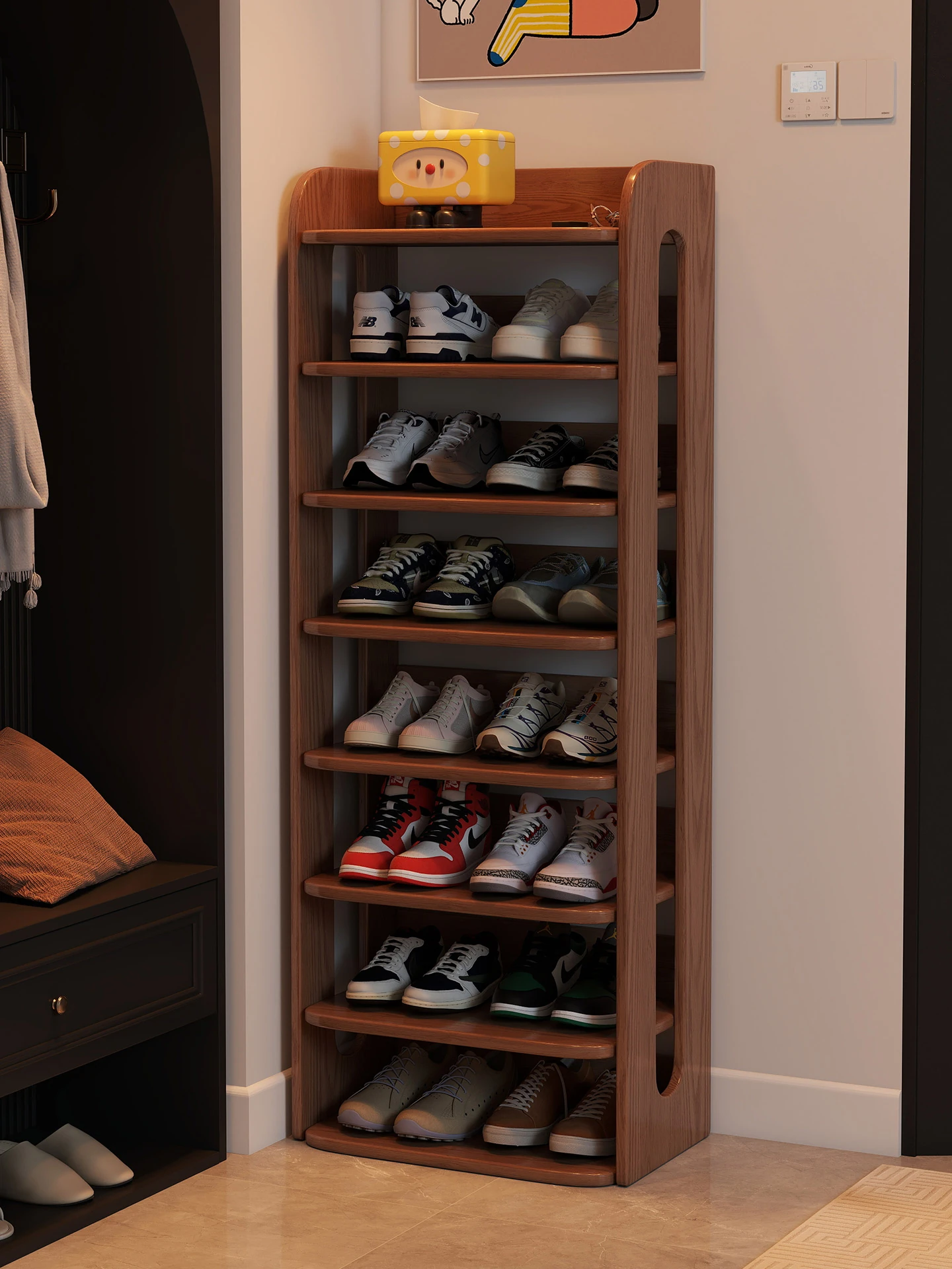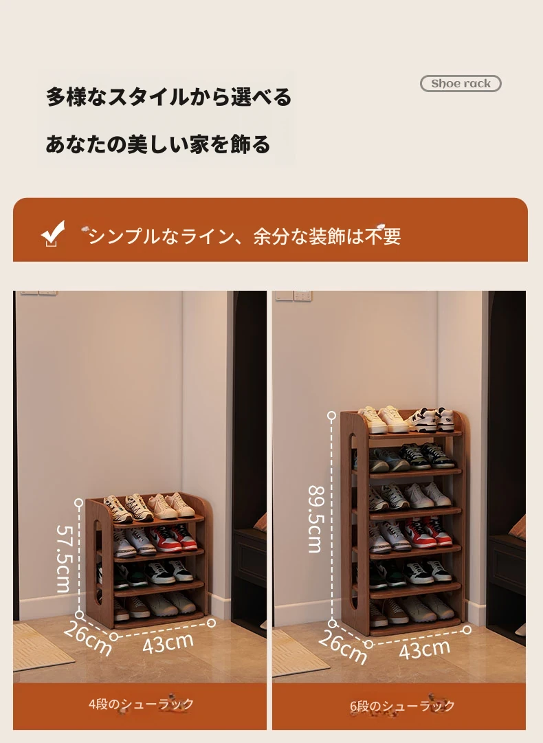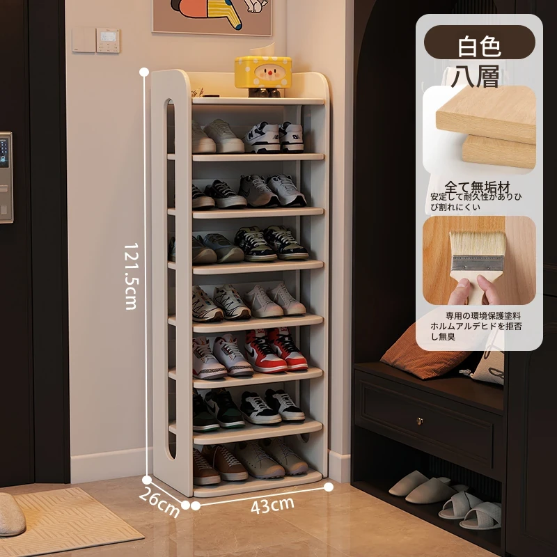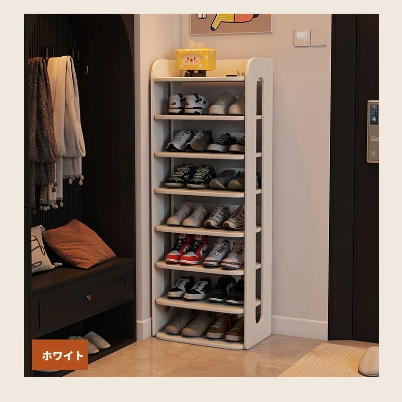 全実木製の多層玄関シューズラック - スペースを節約するシンプルな靴収納棚、家庭用の広々とした室内収納スタンド。おしゃれで機能的なデザインで、すっきり整理された玄関を実現します!