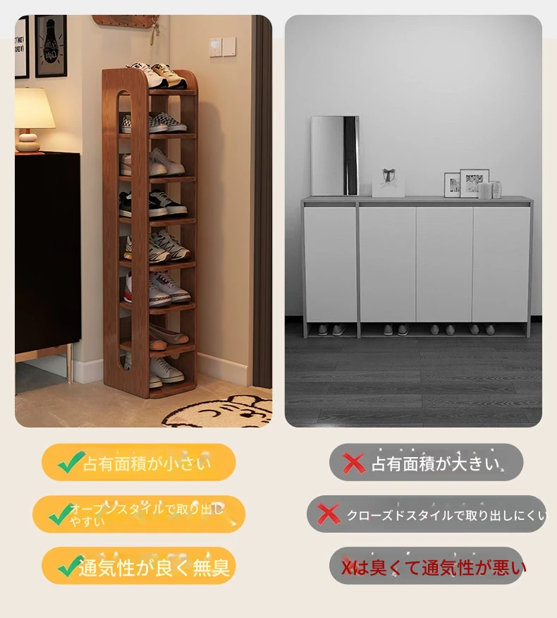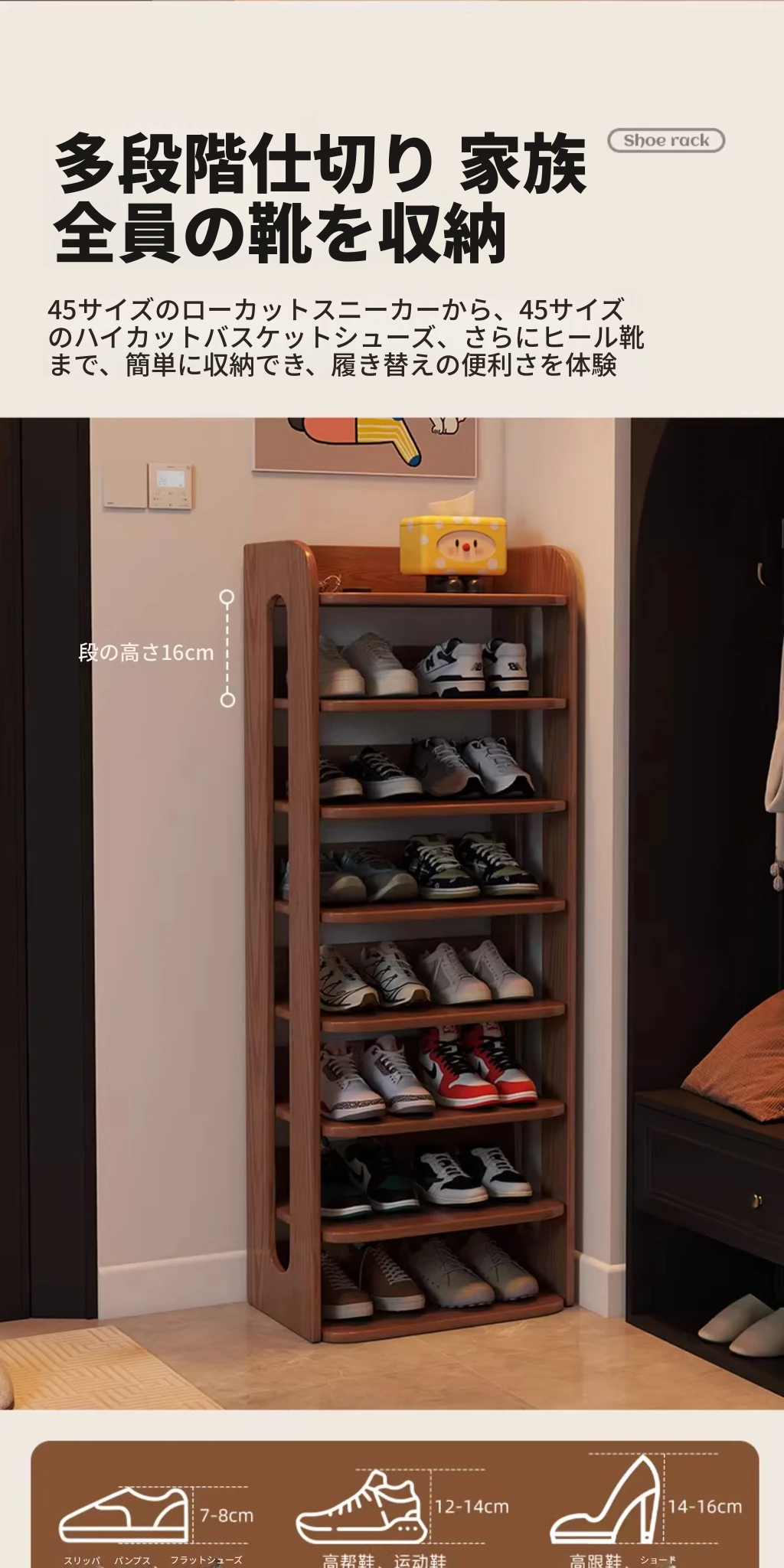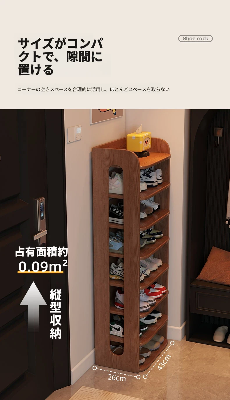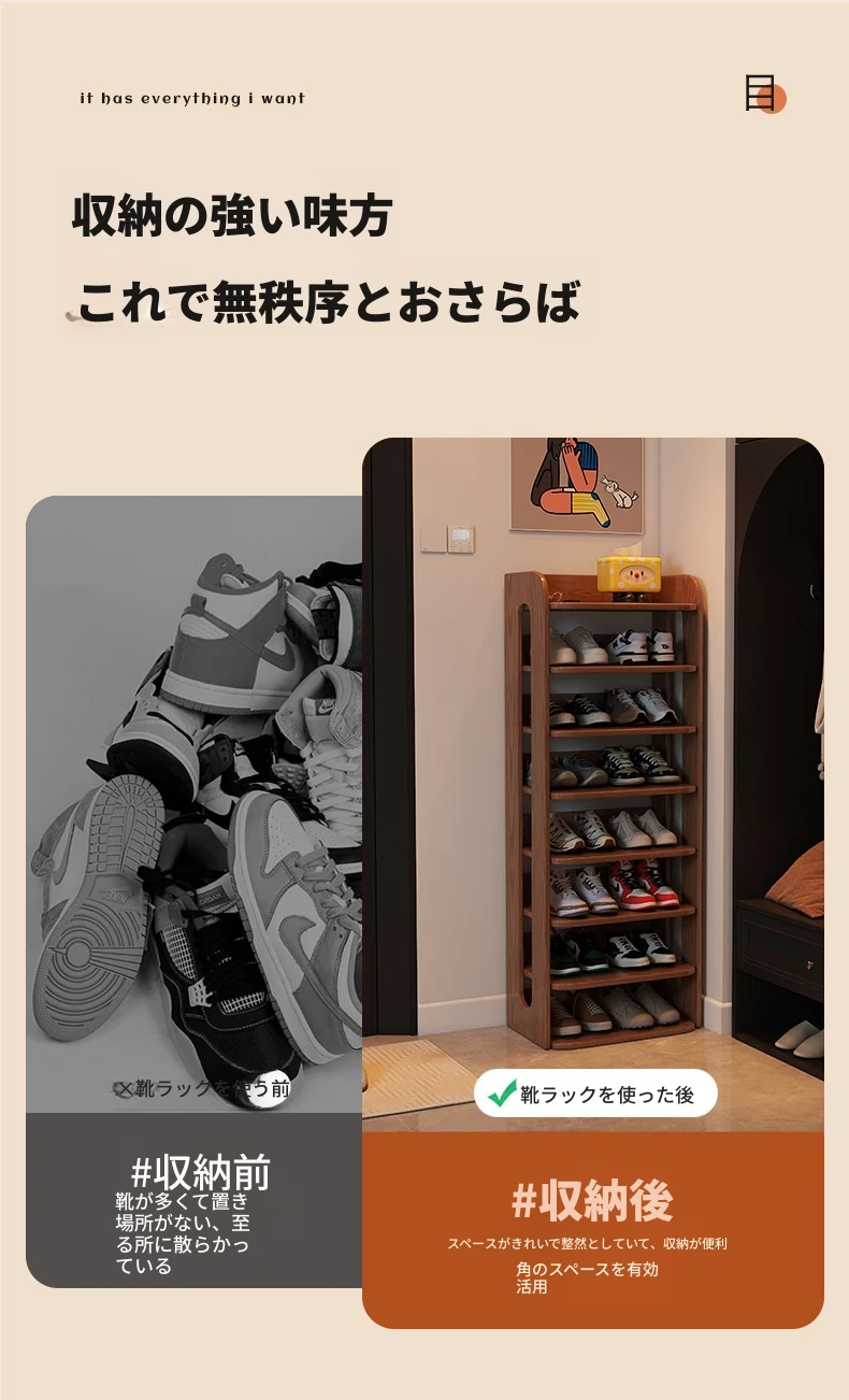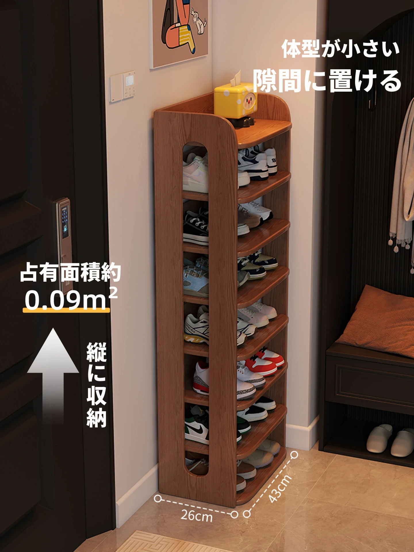 全実木製の多層玄関シューズラック - スペースを節約するシンプルな靴収納棚、家庭用の広々とした室内収納スタンド。おしゃれで機能的なデザインで、すっきり整理された玄関を実現します!