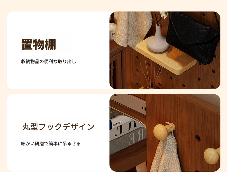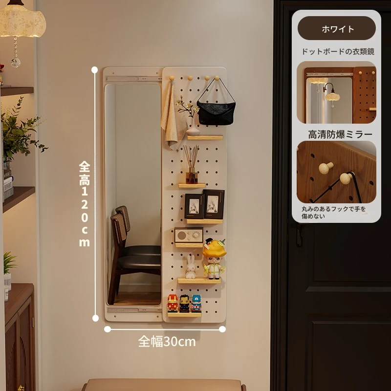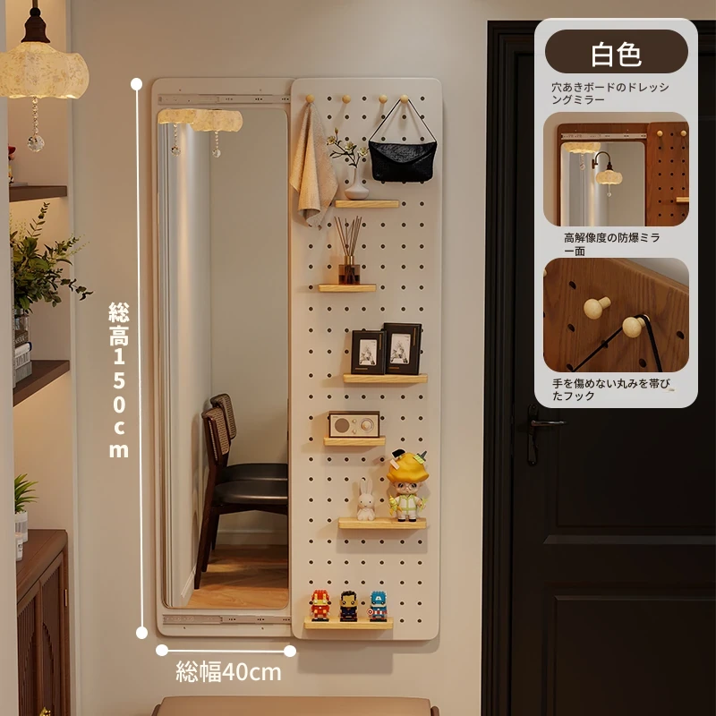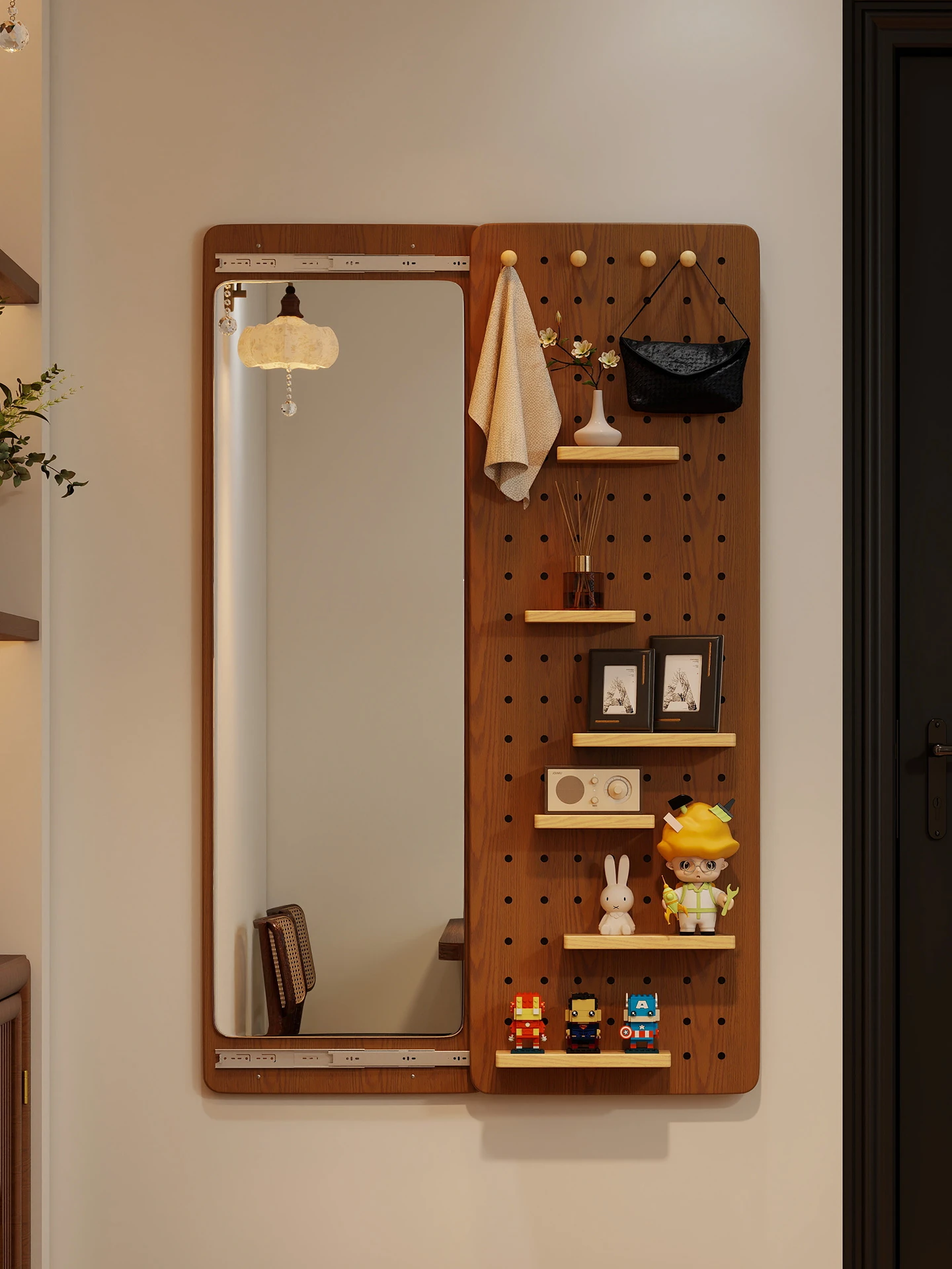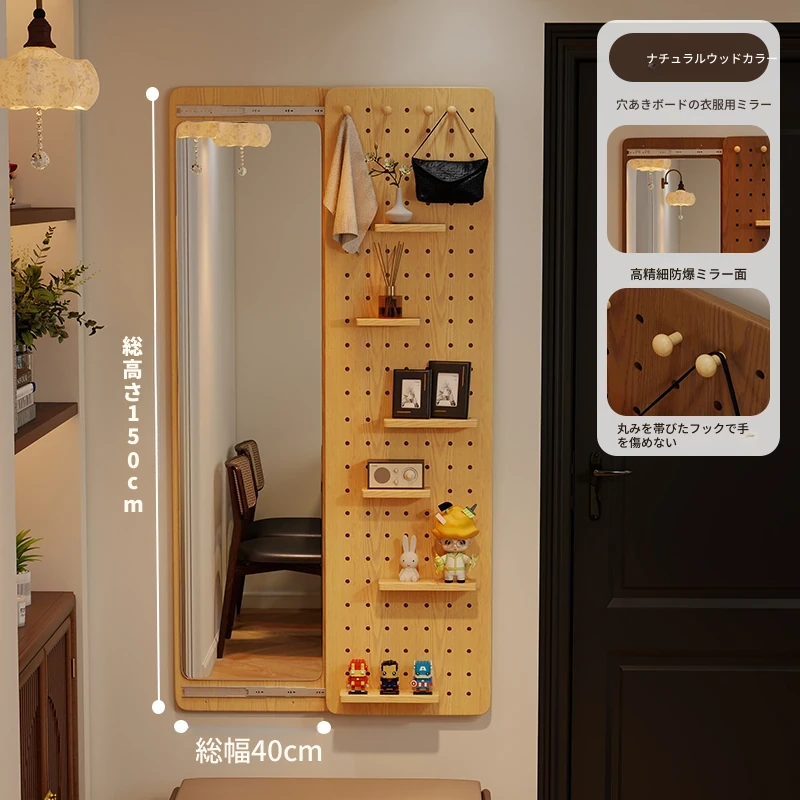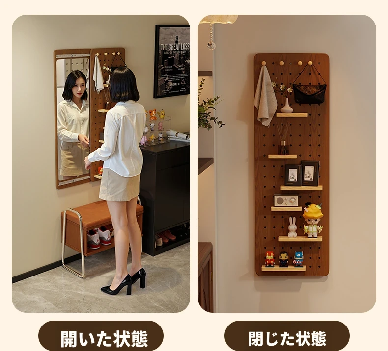 実木製の穴あきスタイル全身鏡 - 隠れた引き出し式デザイン、寝室や家庭用に最適な試着ミラー、玄関にぴったりの一体型!おしゃれで機能的なインテリアアイテム。