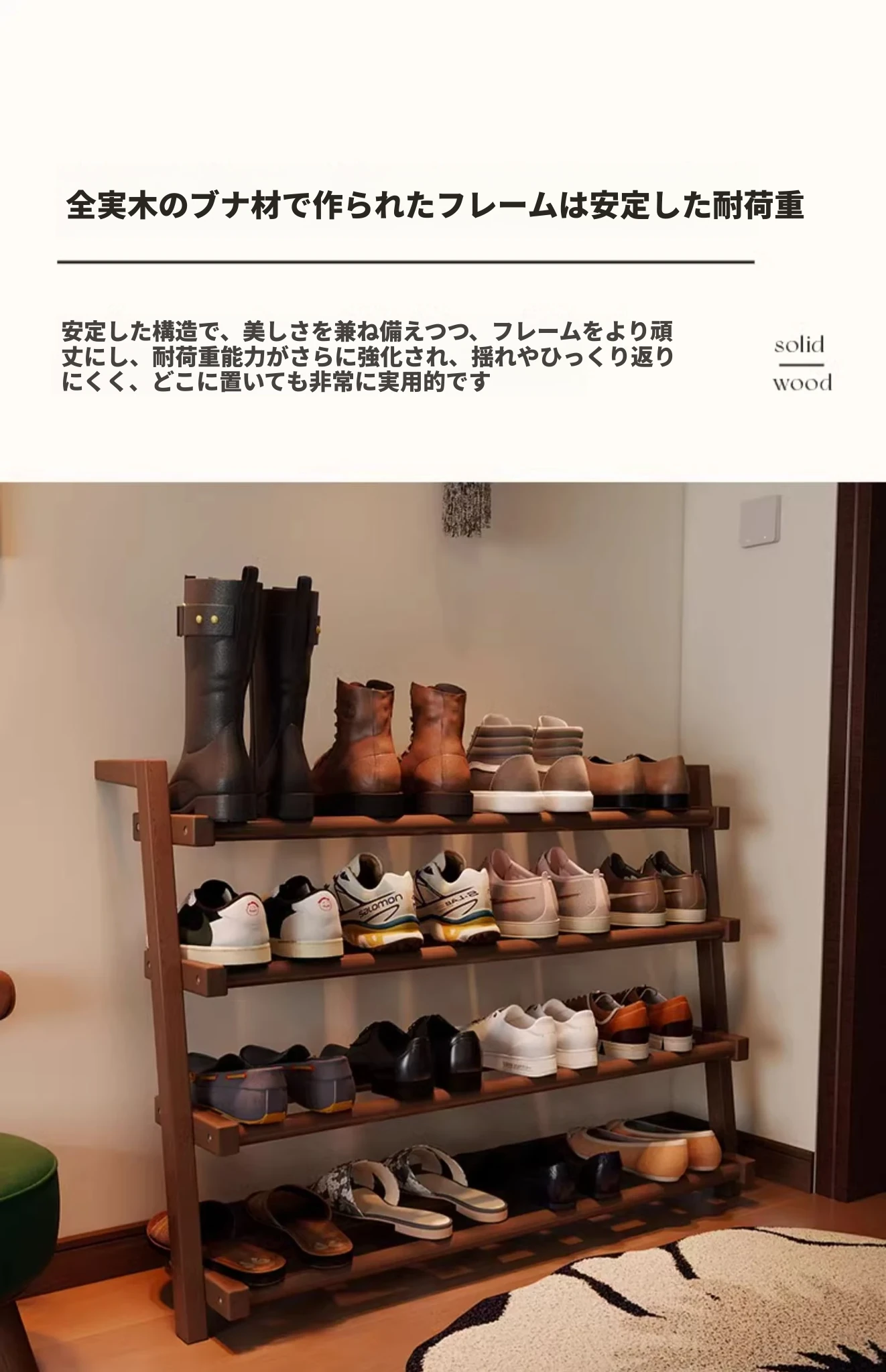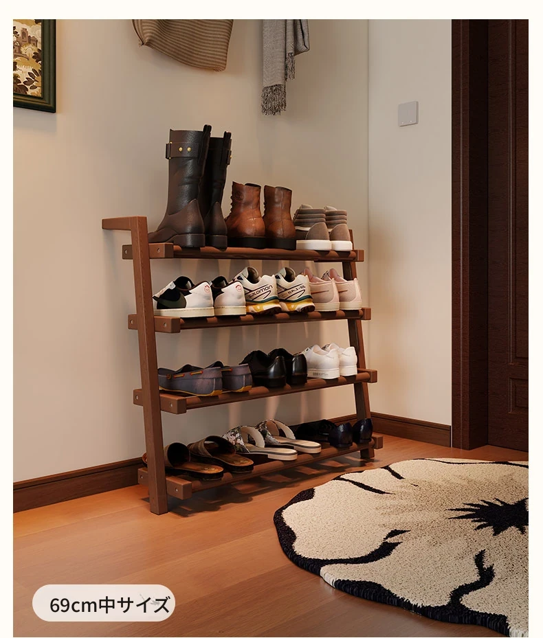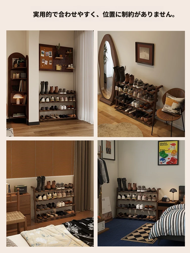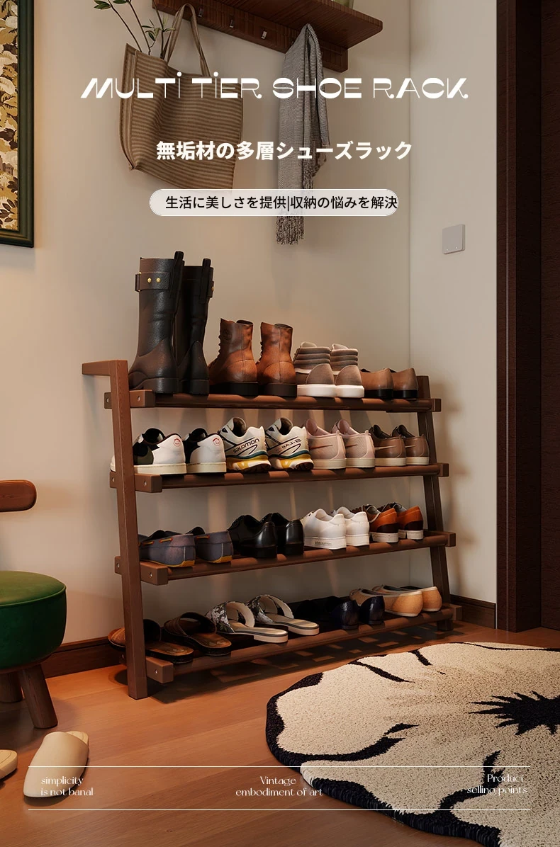 高品質の無垢材シューズラック - 家庭用の大容量シューズラック!玄関やエントランスに最適なデザイン、小型住宅にもぴったりなシューズキャビネットで、スッキリとした収納を実現します。