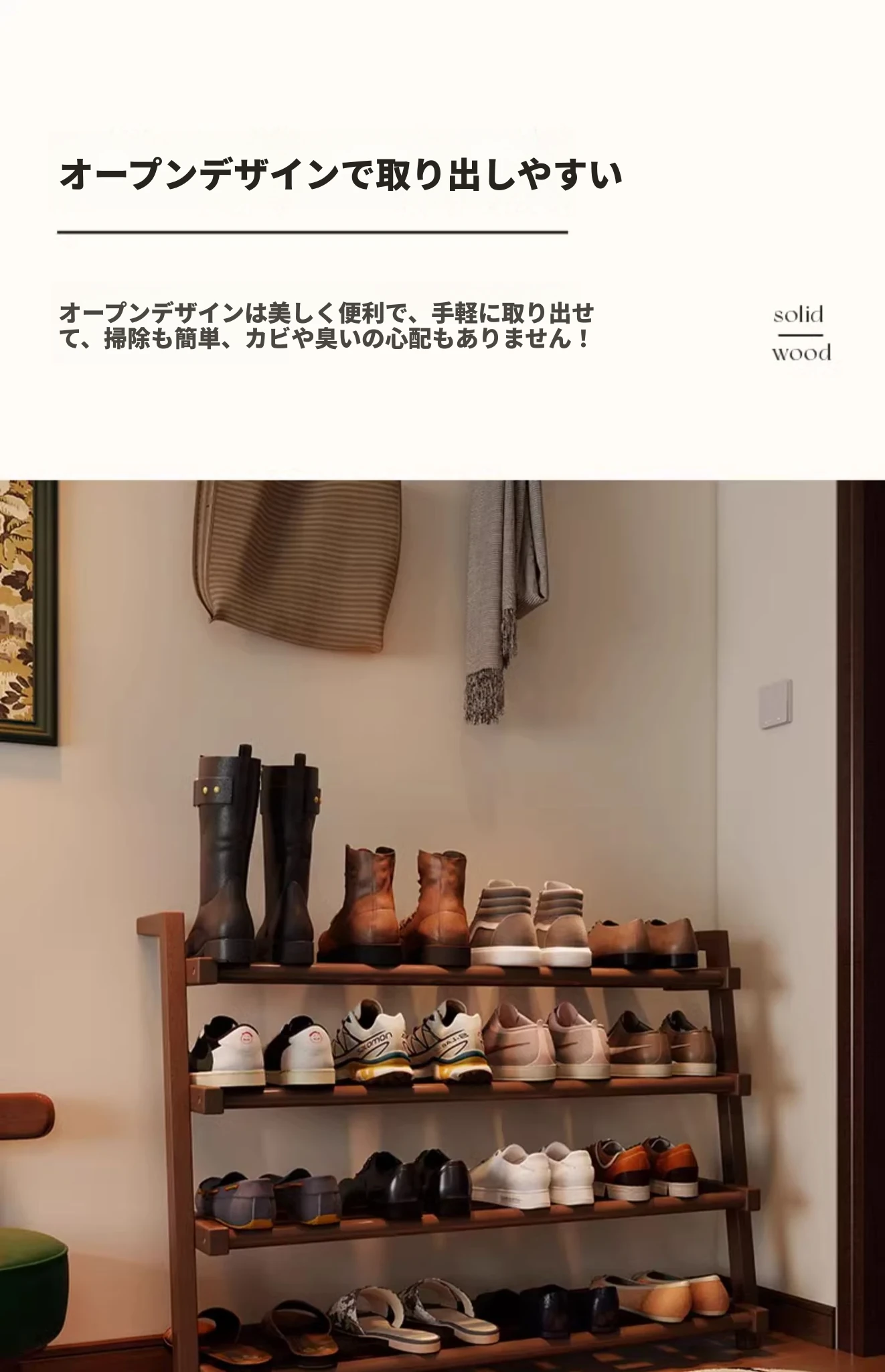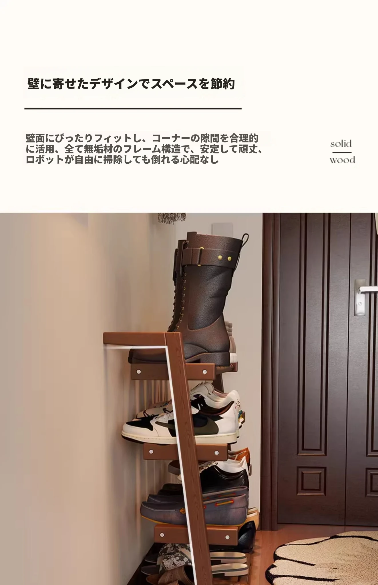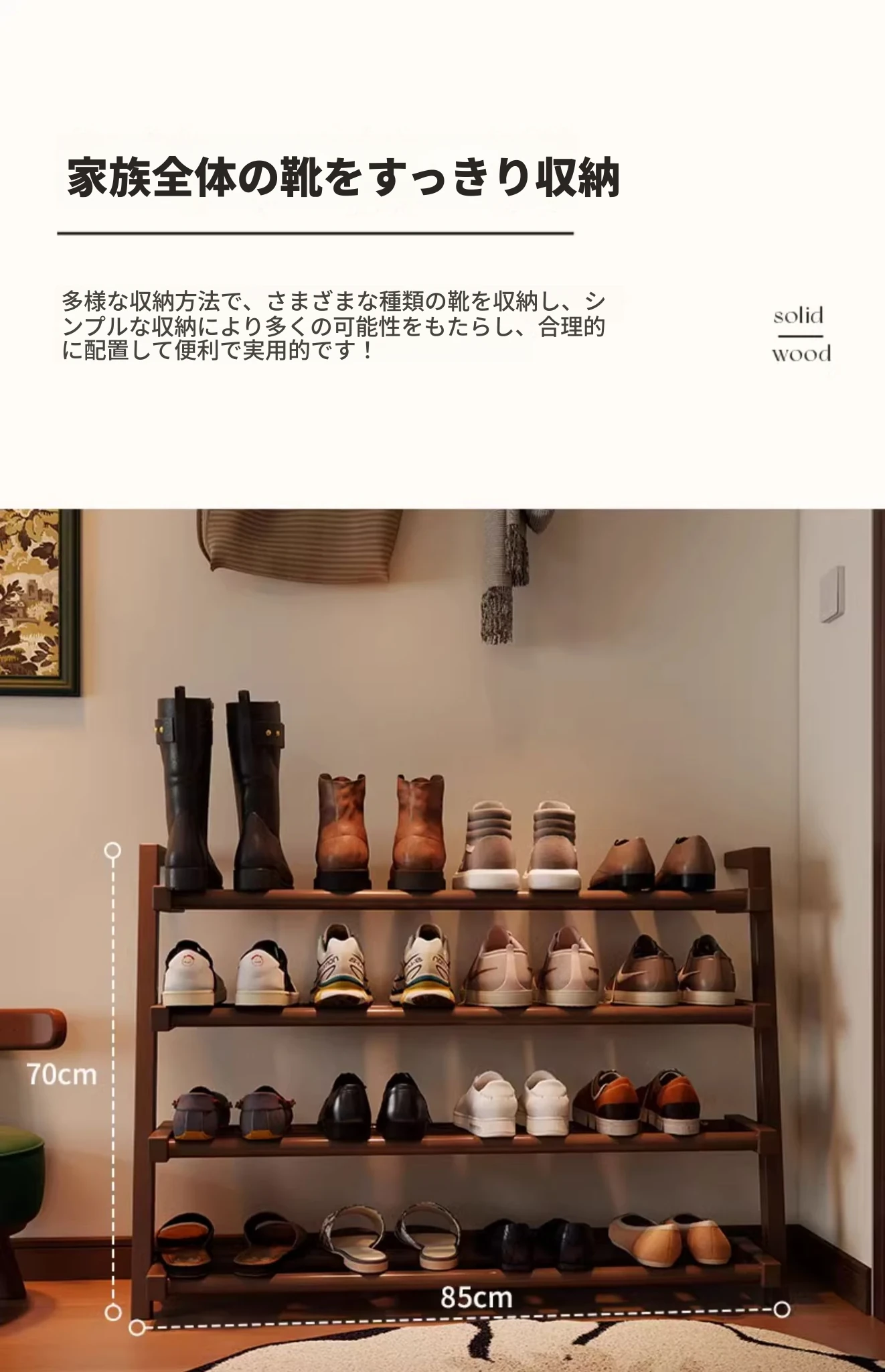 高品質の無垢材シューズラック - 家庭用の大容量シューズラック!玄関やエントランスに最適なデザイン、小型住宅にもぴったりなシューズキャビネットで、スッキリとした収納を実現します。
