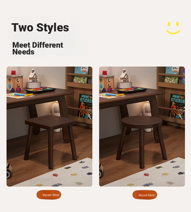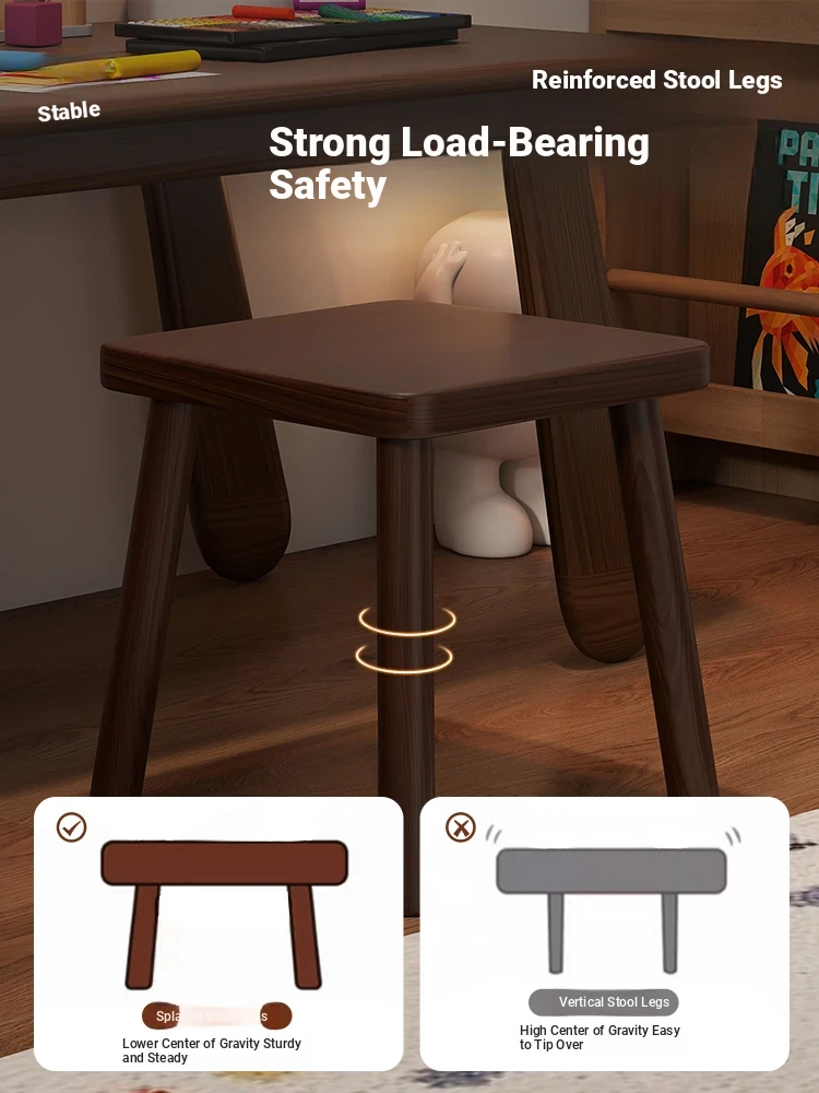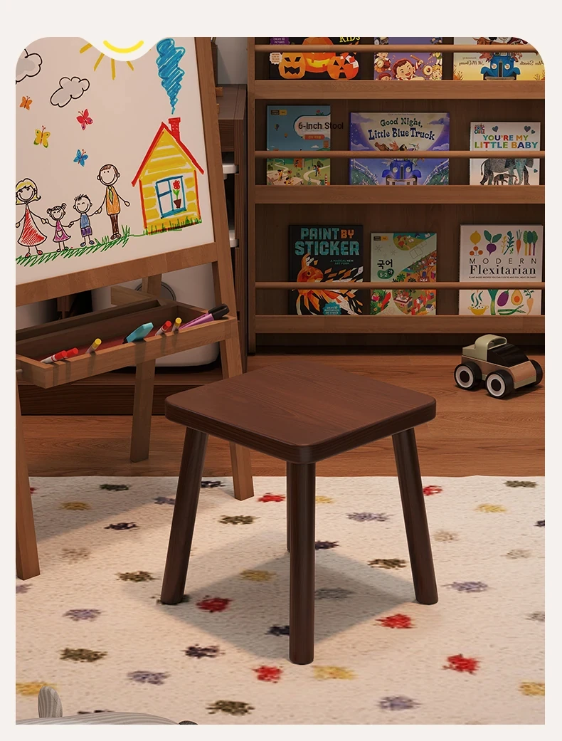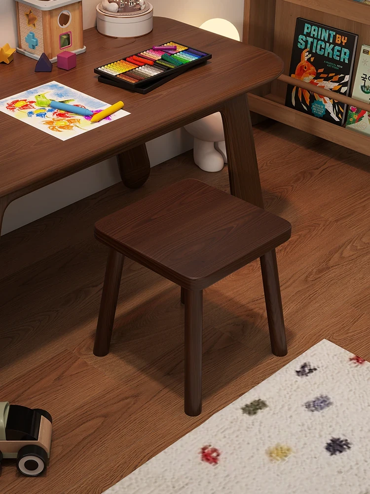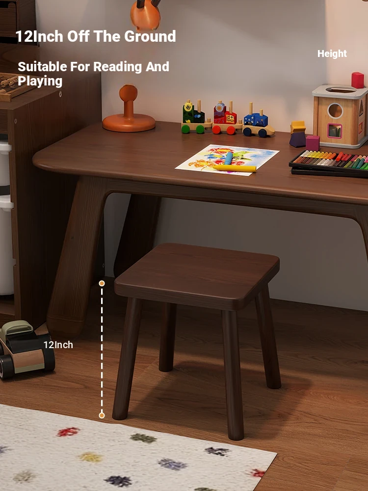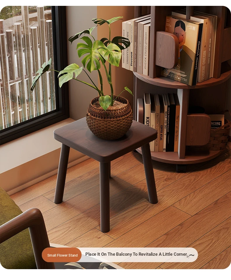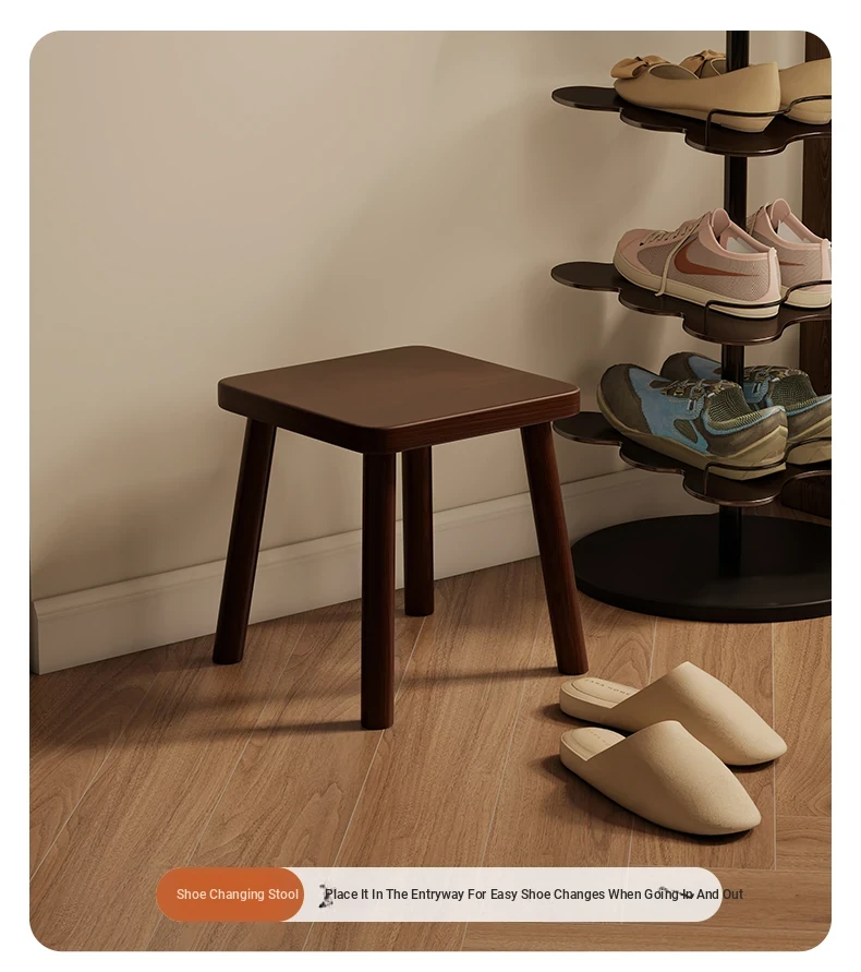 Solid Wood Small Stool - Vintage Square Bench, Perfect for Tea Tables, Round Low Stool, Ideal for Home Use, Living Room & Kids' Room.