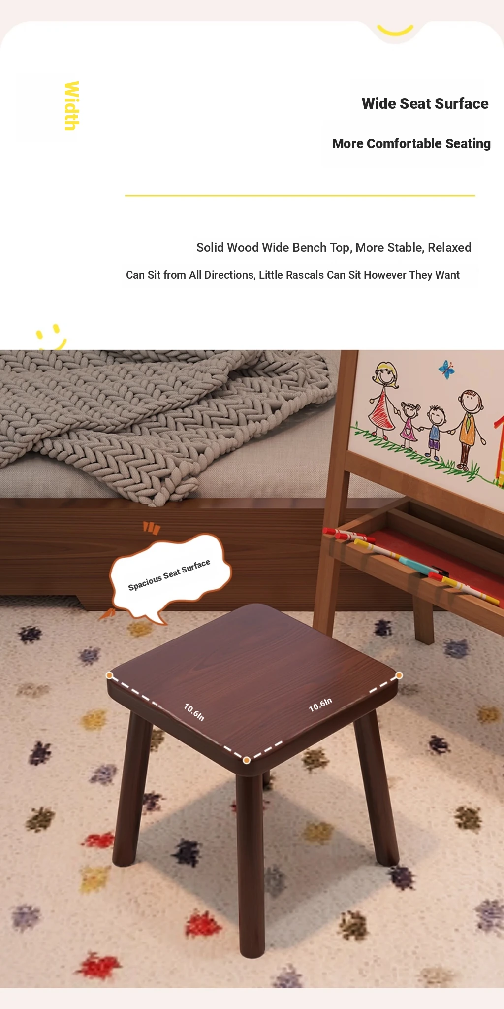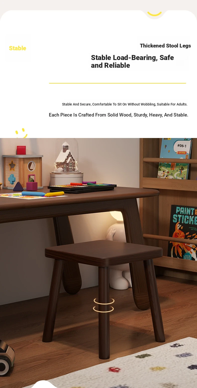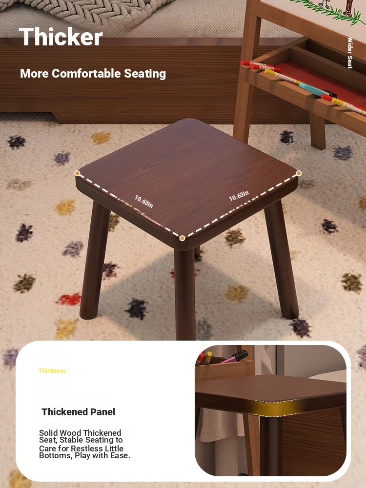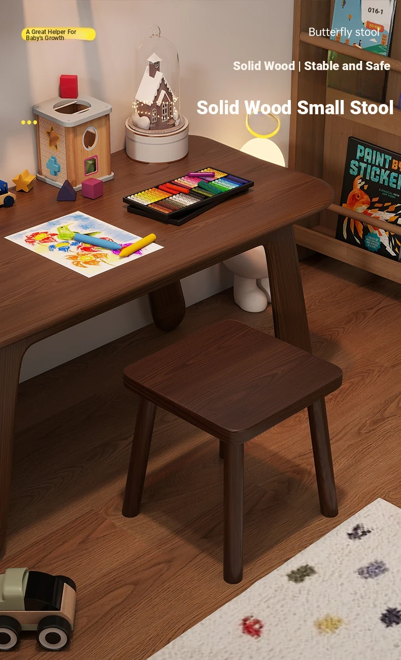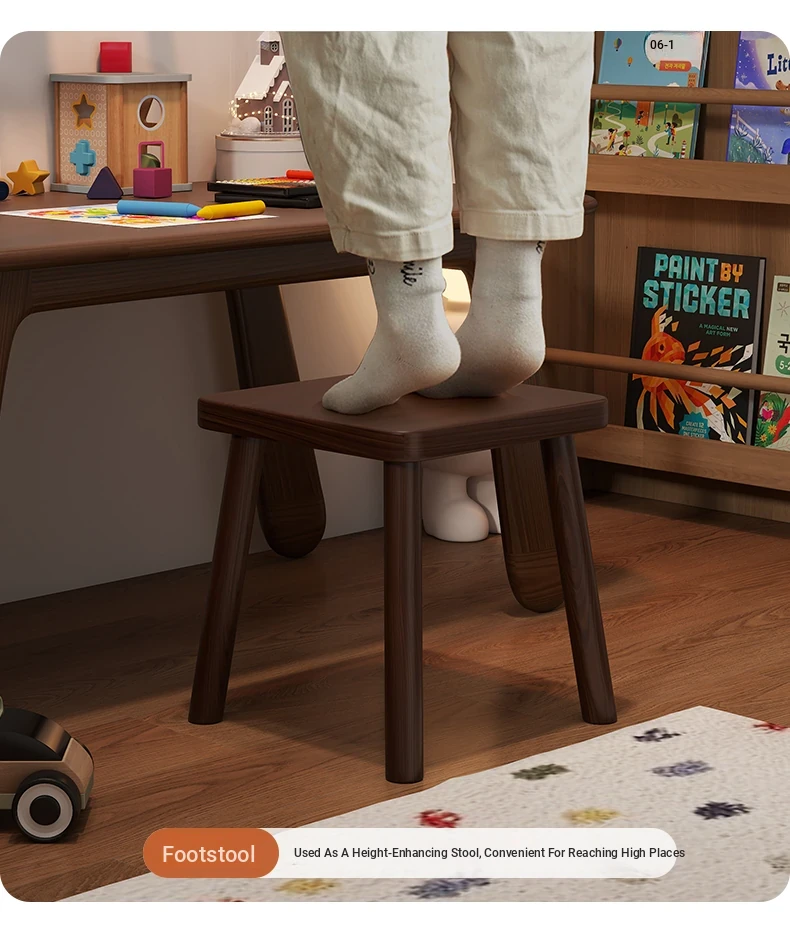 Solid Wood Small Stool - Vintage Square Bench, Perfect for Tea Tables, Round Low Stool, Ideal for Home Use, Living Room & Kids' Room.