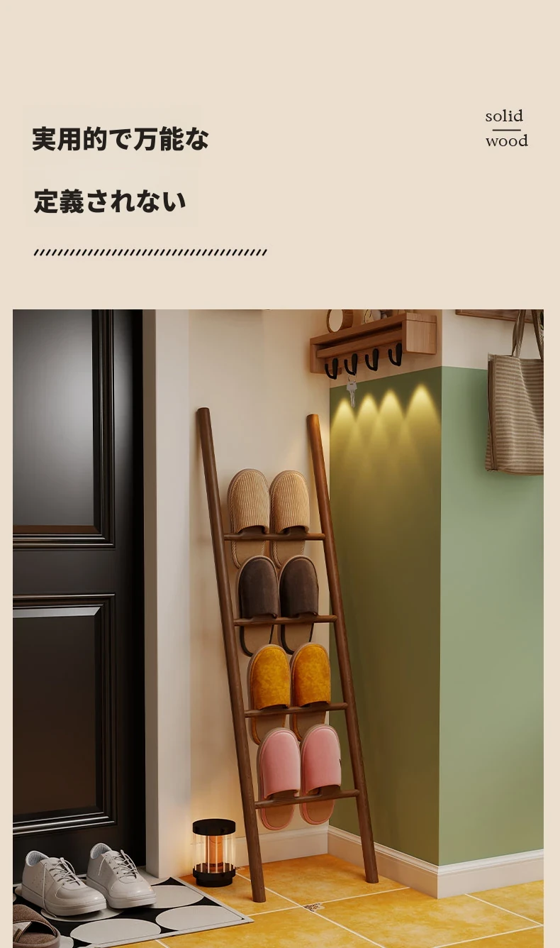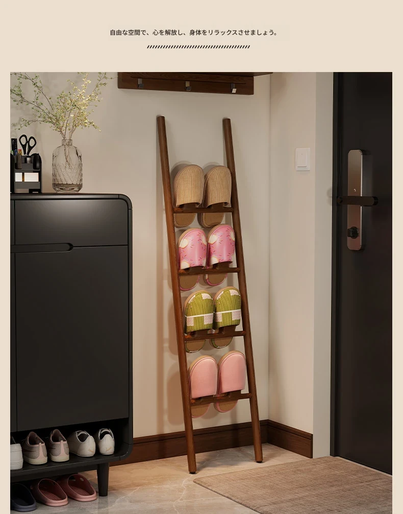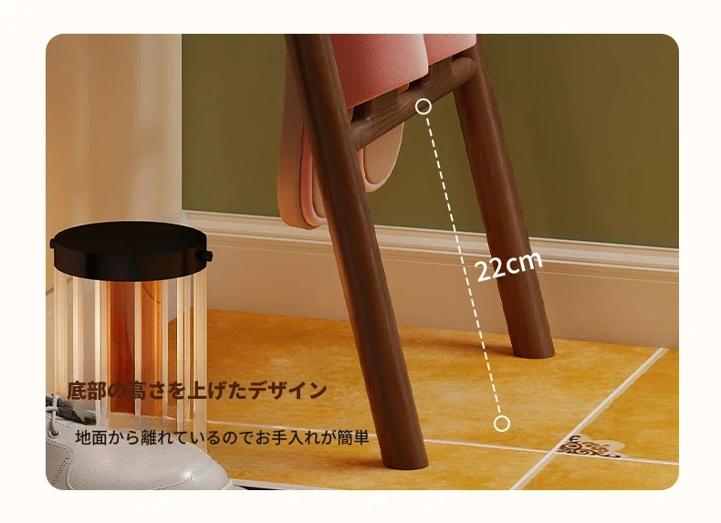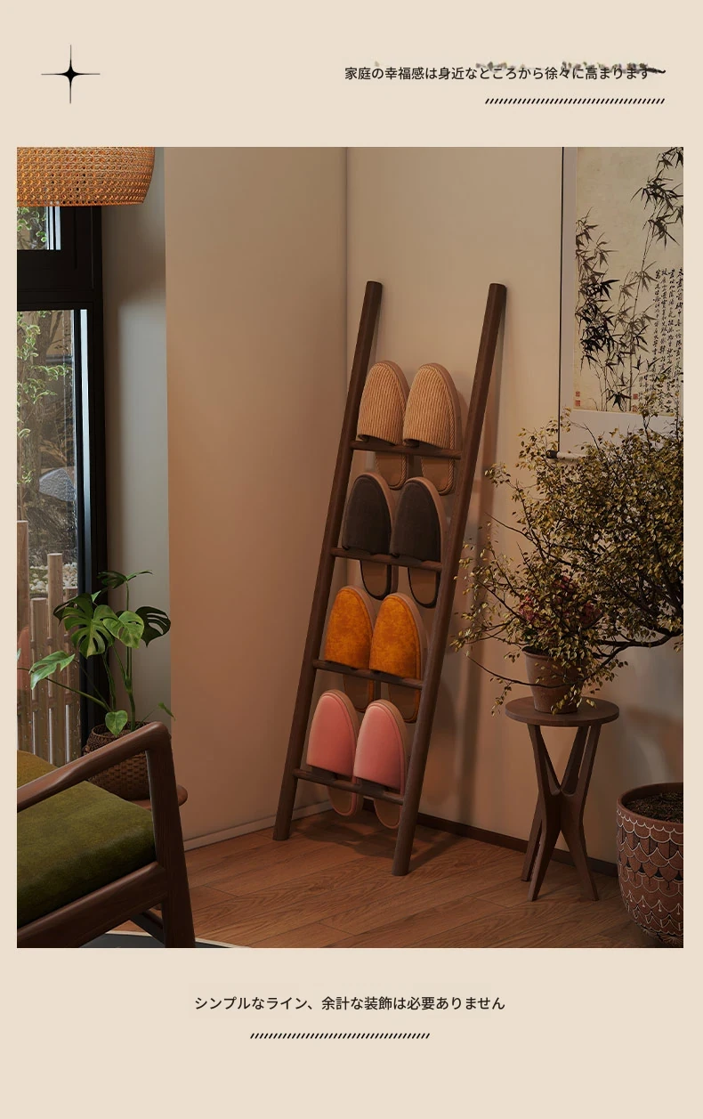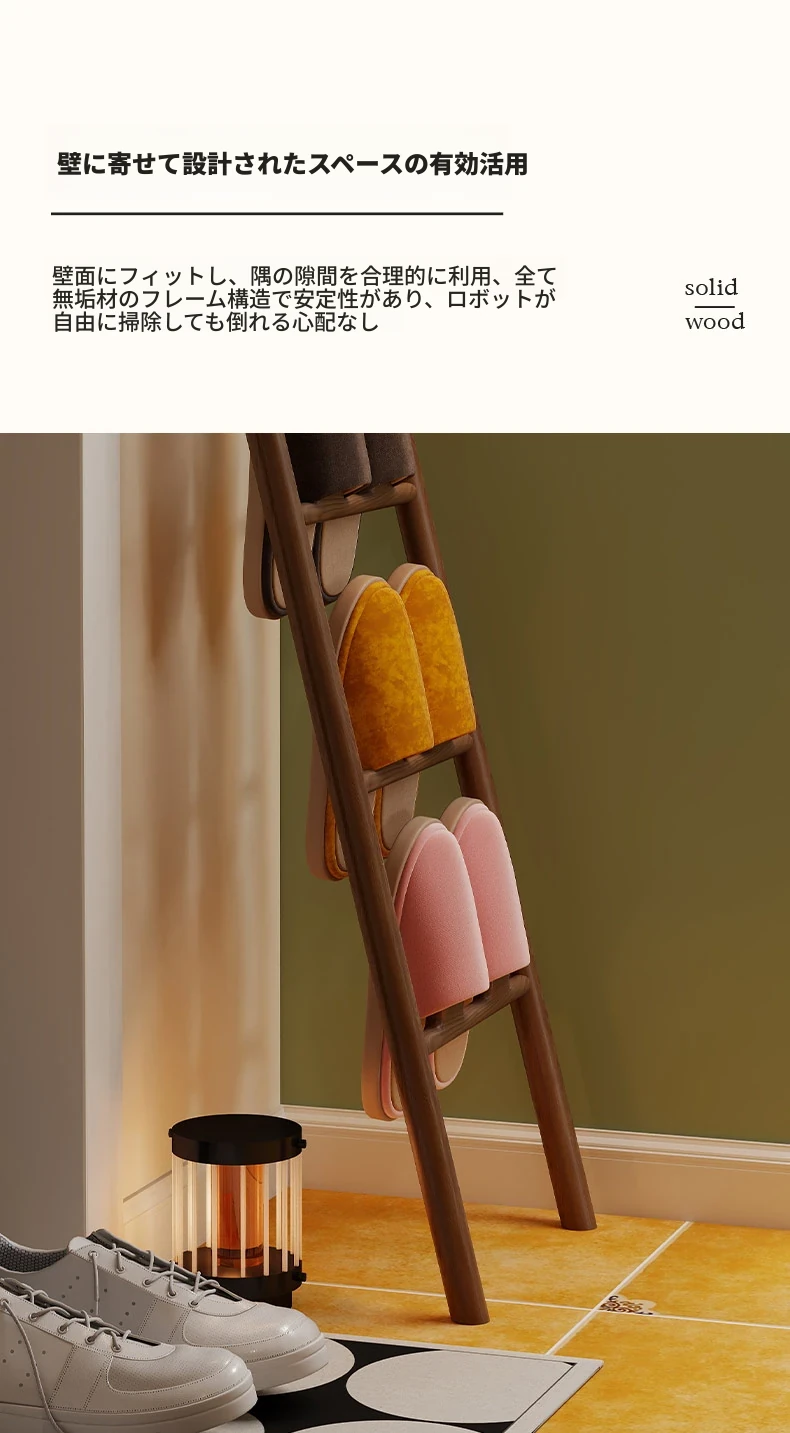 天然木製トライアングルシューズラック - スペース節約型!玄関や入室に最適なデザインで、スリッパや靴を整理整頓。スタイリッシュな収納でおしゃれな空間を演出します!