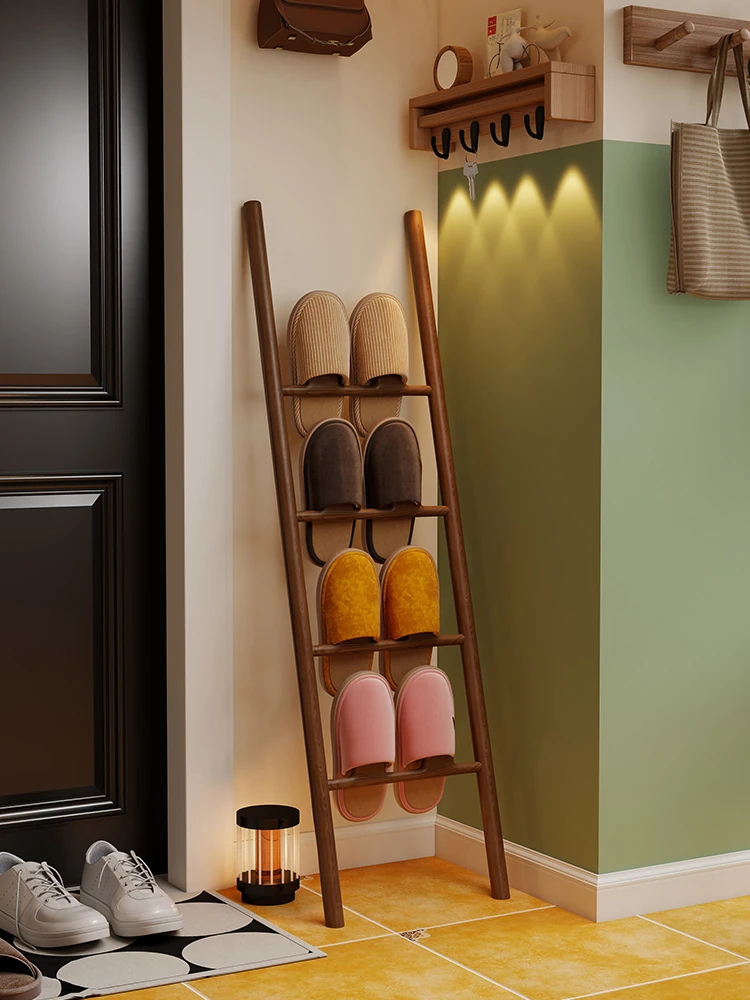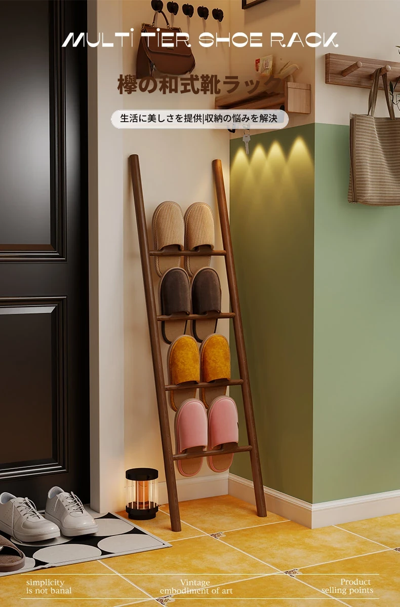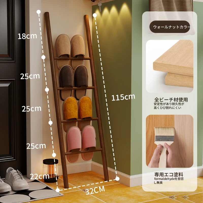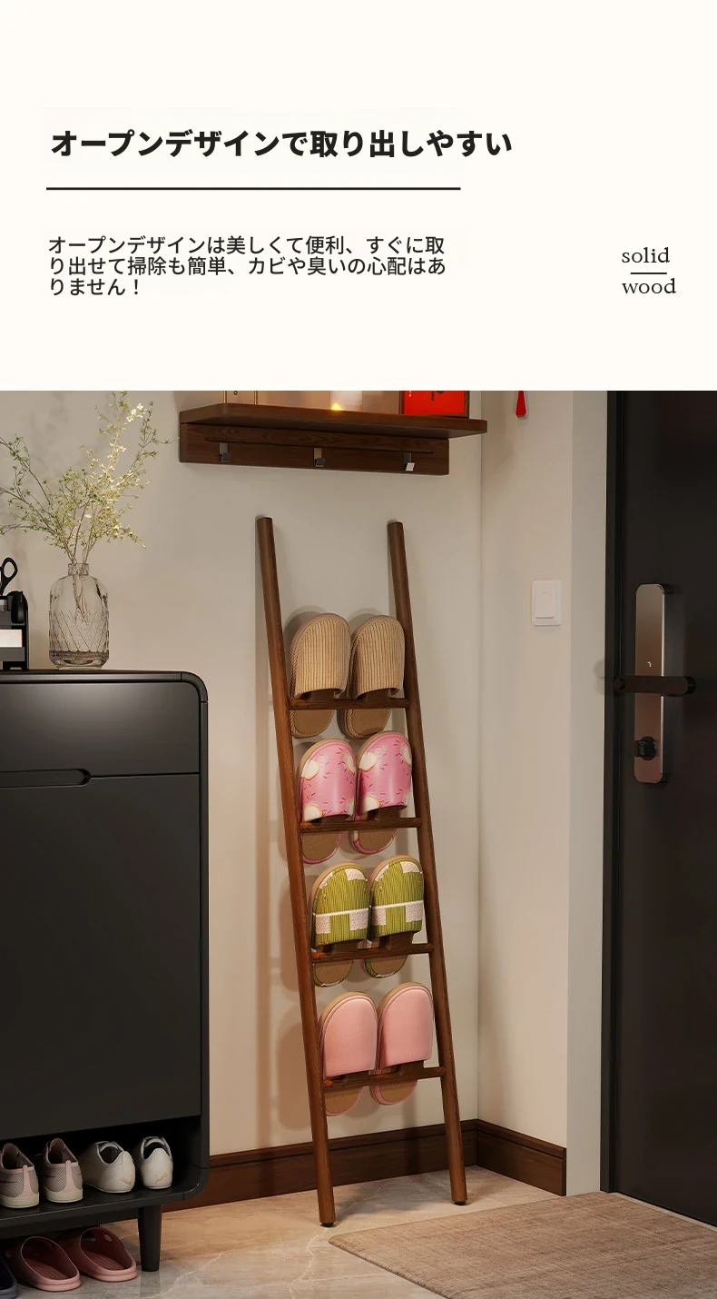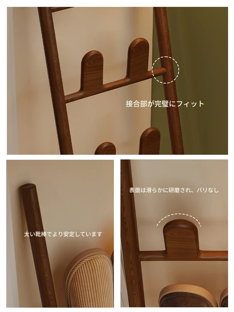 天然木製トライアングルシューズラック - スペース節約型!玄関や入室に最適なデザインで、スリッパや靴を整理整頓。スタイリッシュな収納でおしゃれな空間を演出します!