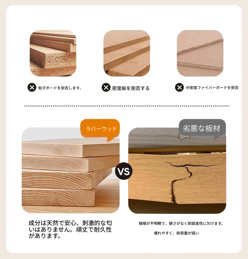 ウォールナットカラー【引き出しなし】輸入ゴムの木