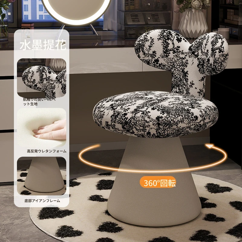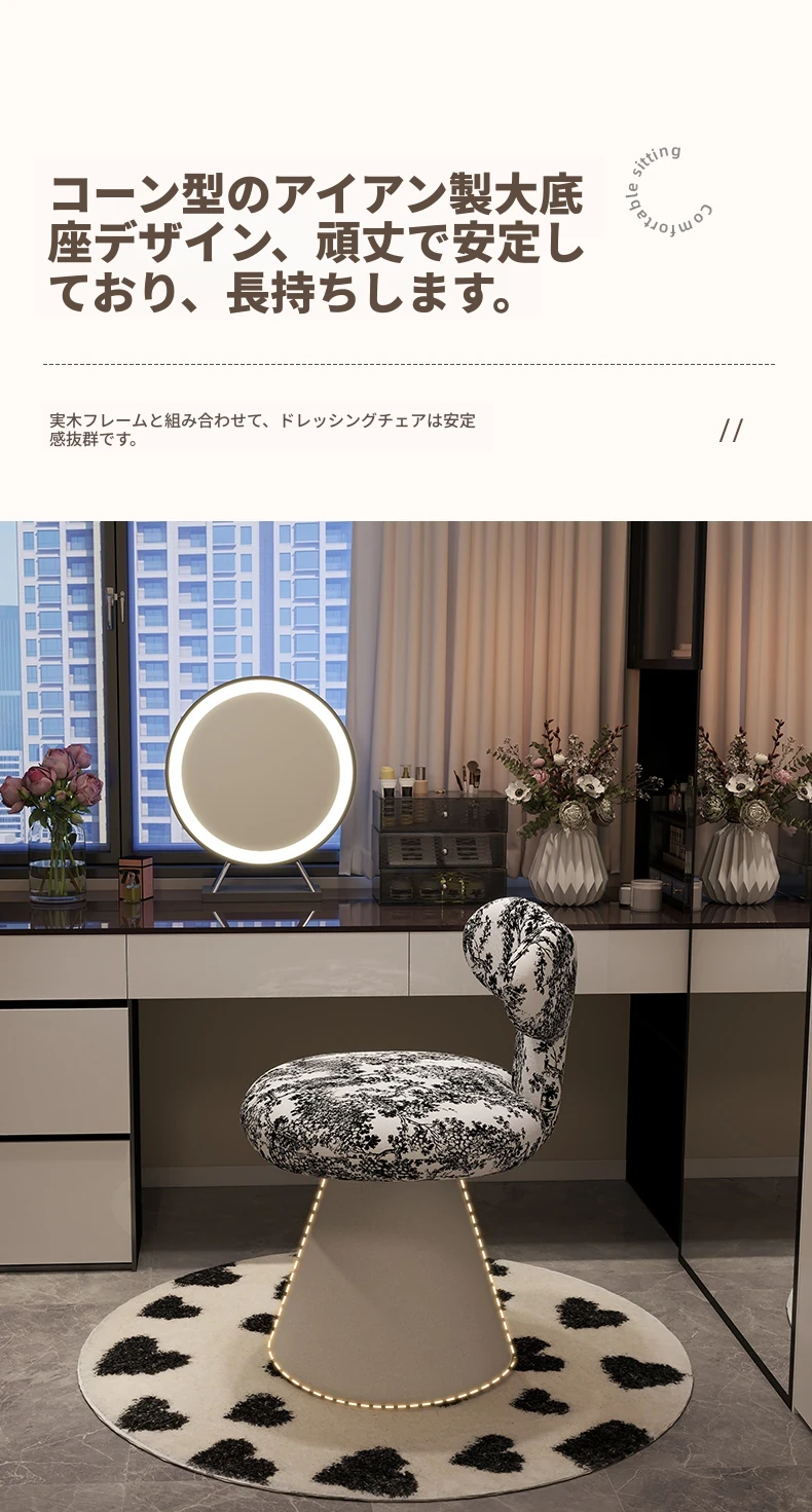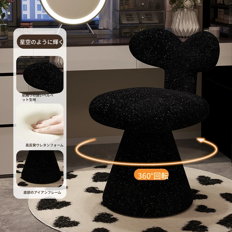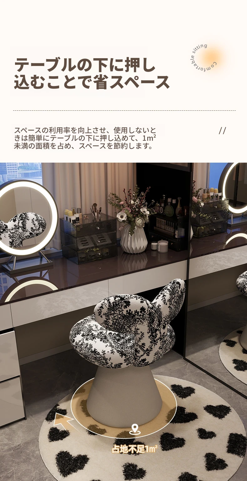 軽やかな高級感漂う化粧台用スツール!小型スペースにぴったりの回転式ドレッシングチェア。女性の寝室を華やかに彩る新作デザイン。おしゃれで機能的なアイテムを手に入れよう!