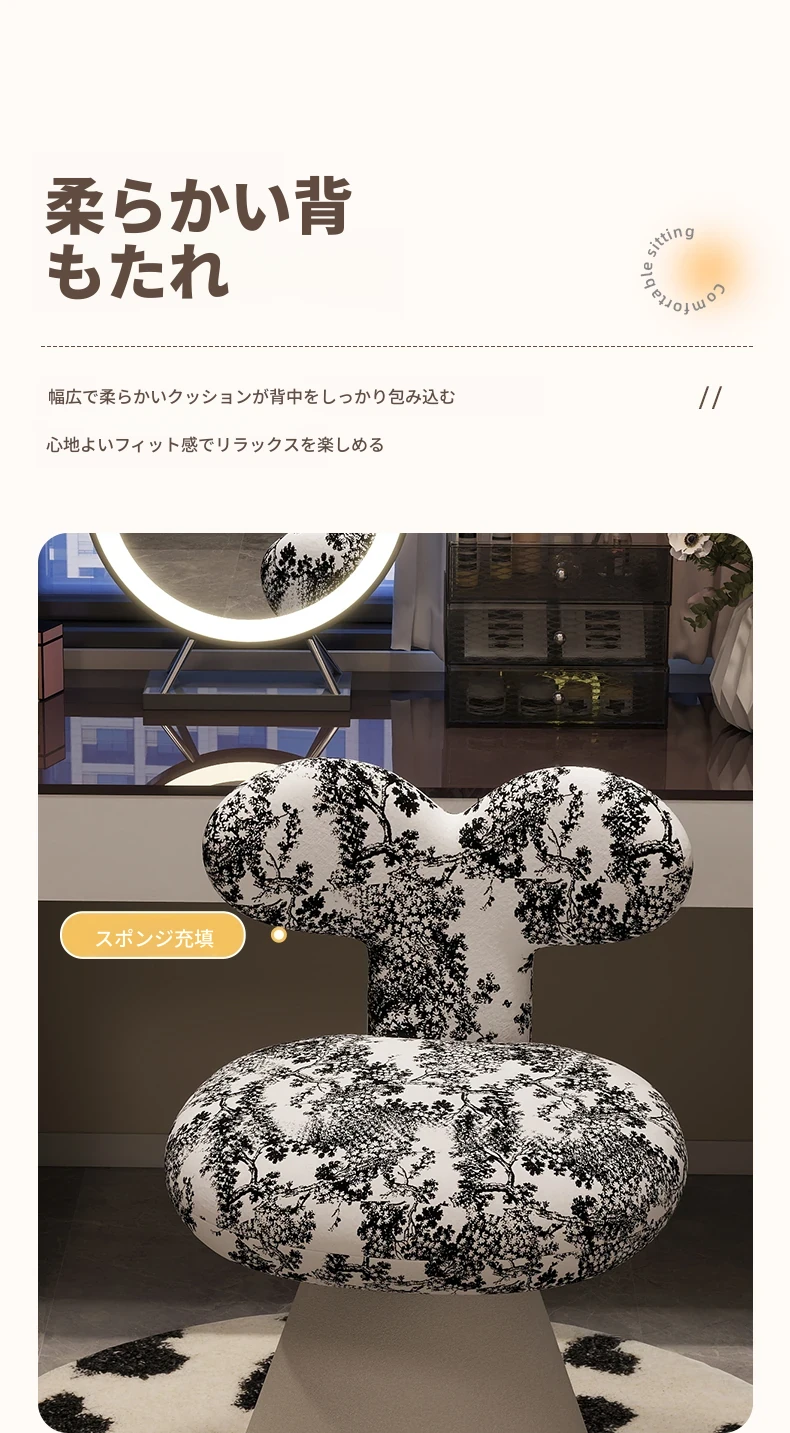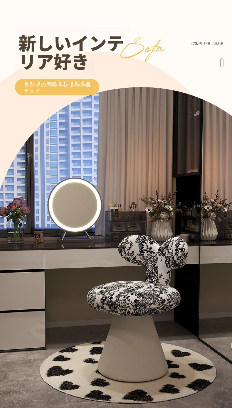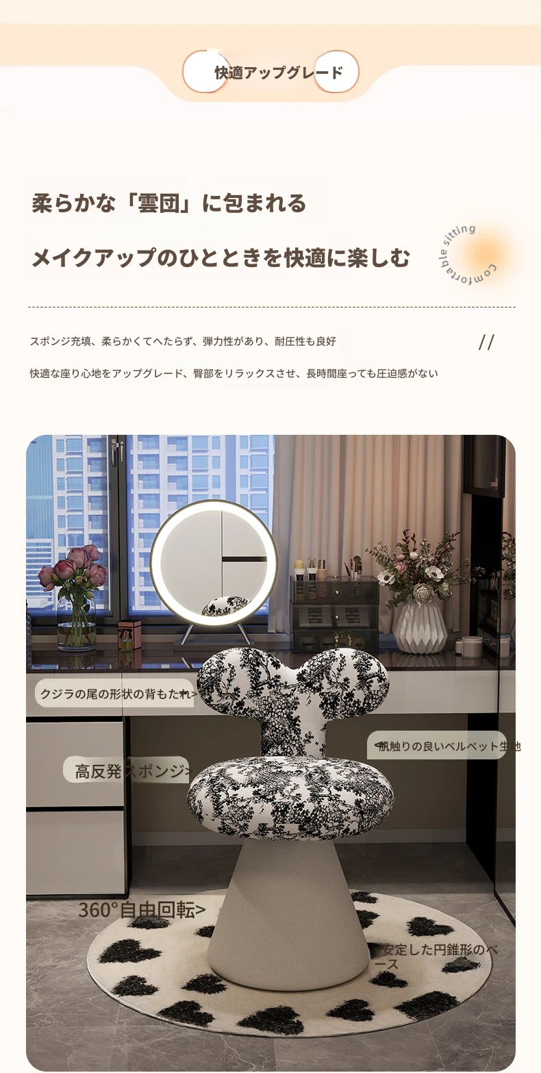 軽やかな高級感漂う化粧台用スツール!小型スペースにぴったりの回転式ドレッシングチェア。女性の寝室を華やかに彩る新作デザイン。おしゃれで機能的なアイテムを手に入れよう!