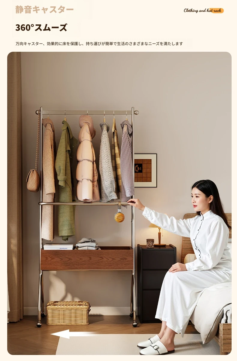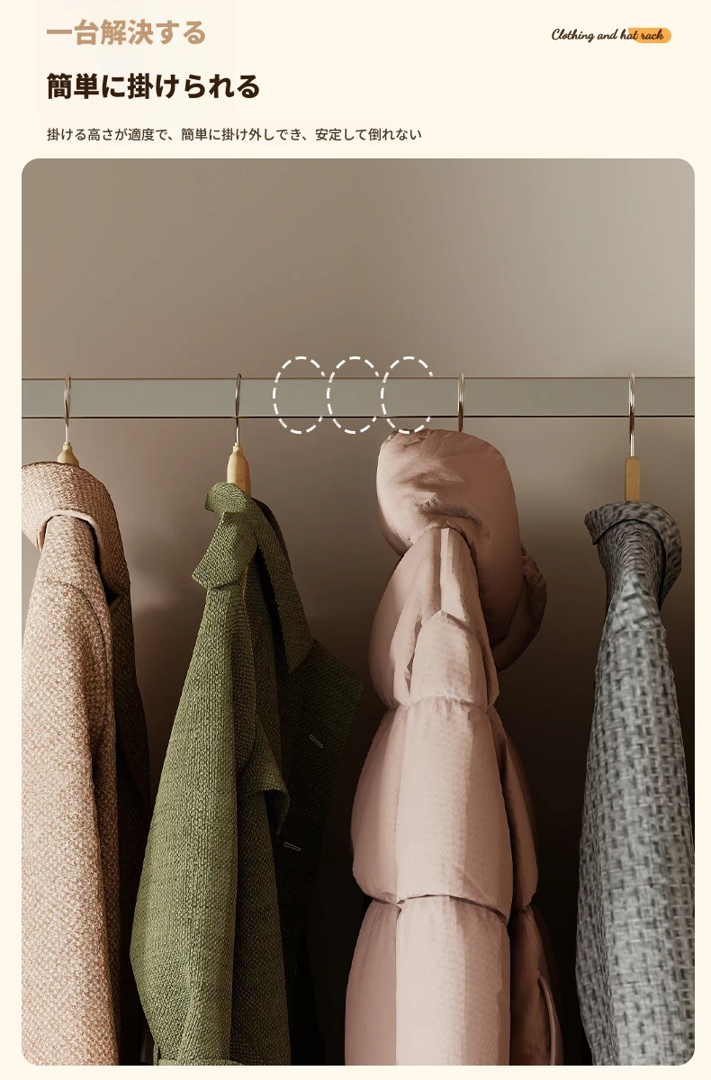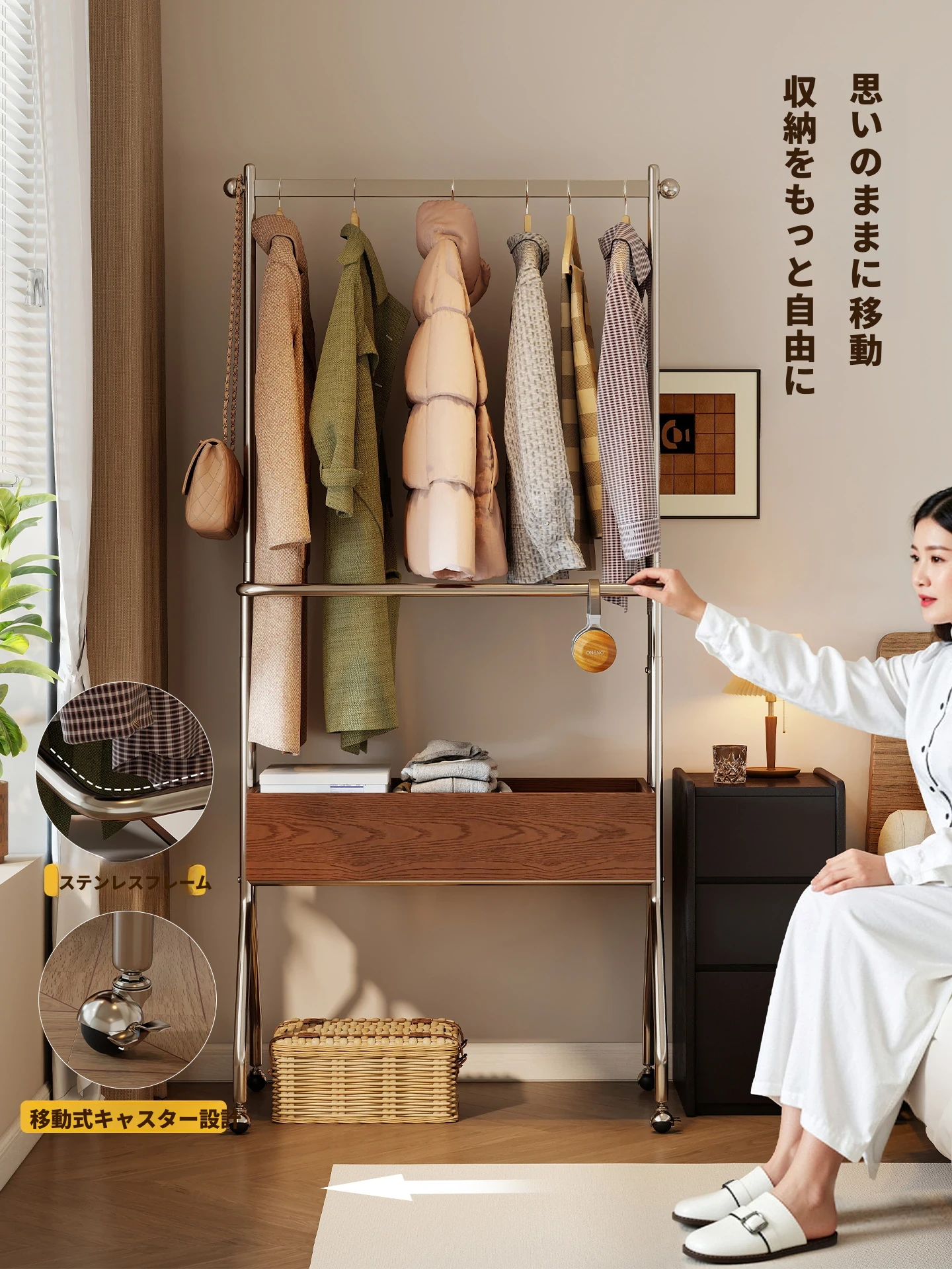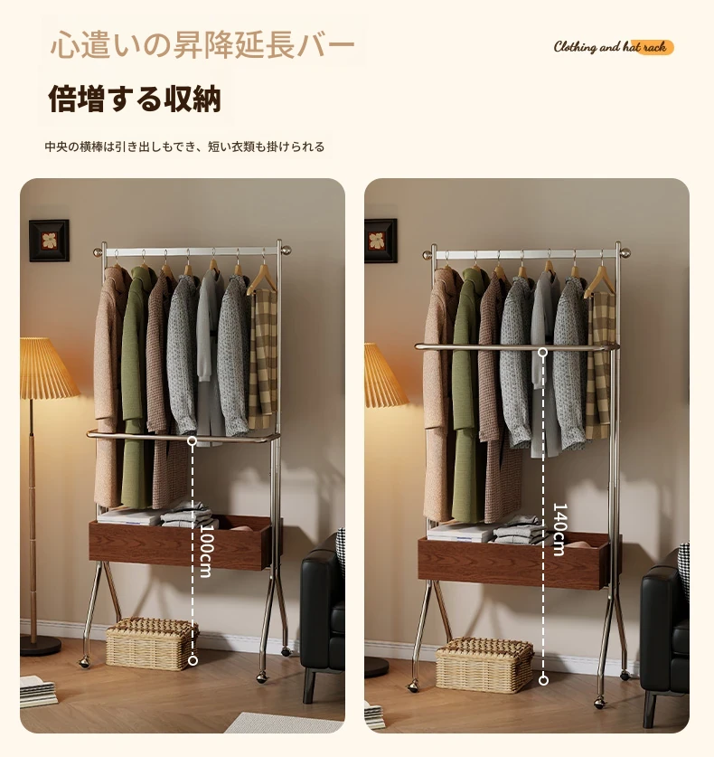 くるみ色-移動式コートラック【100-140cm調整可能な横棒】