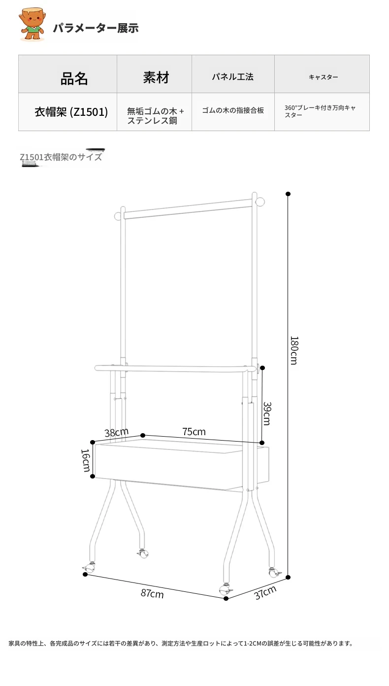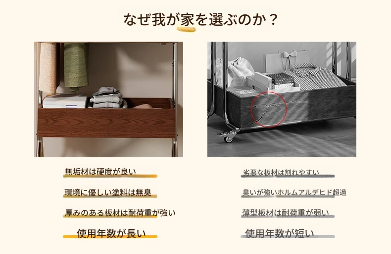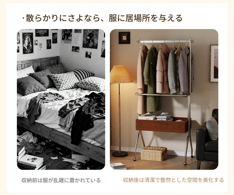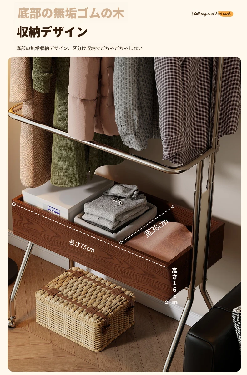 くるみ色-移動式コートラック【100-140cm調整可能な横棒】