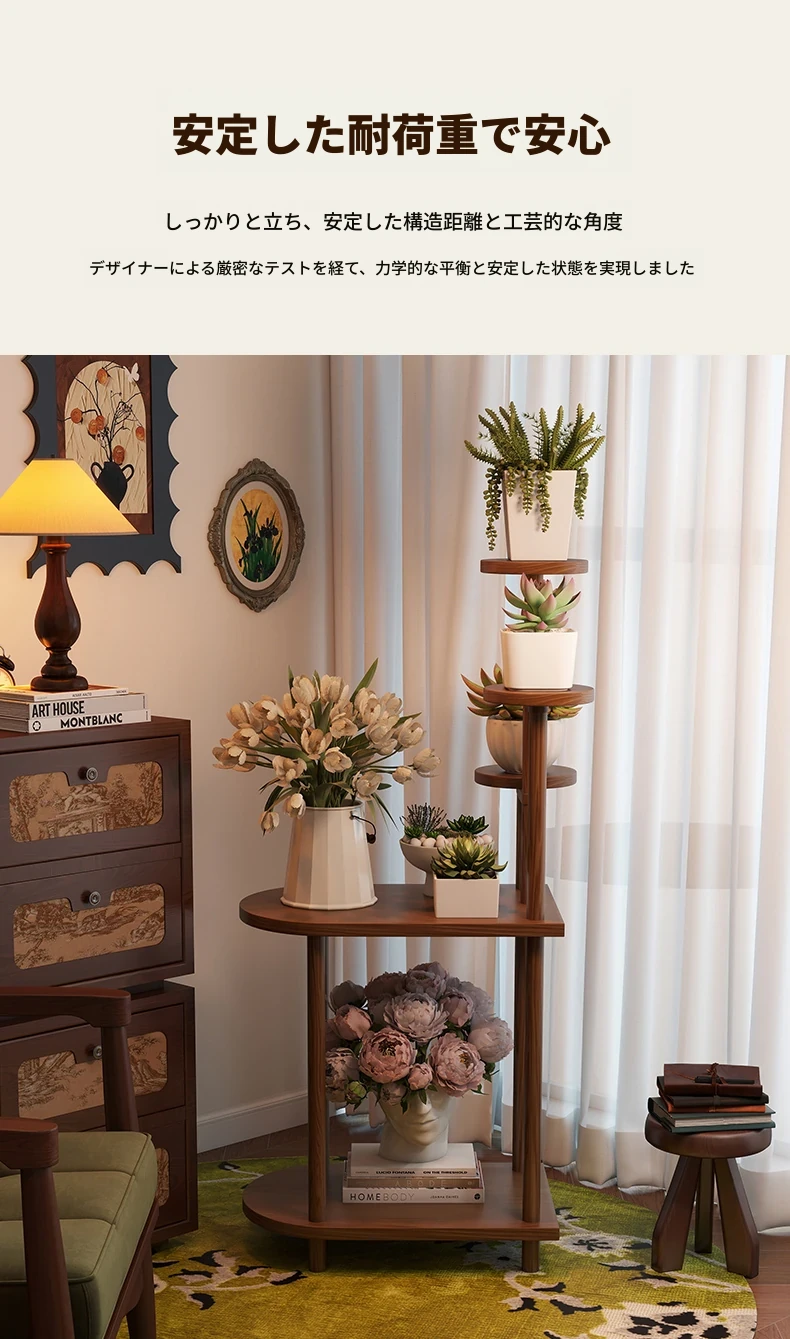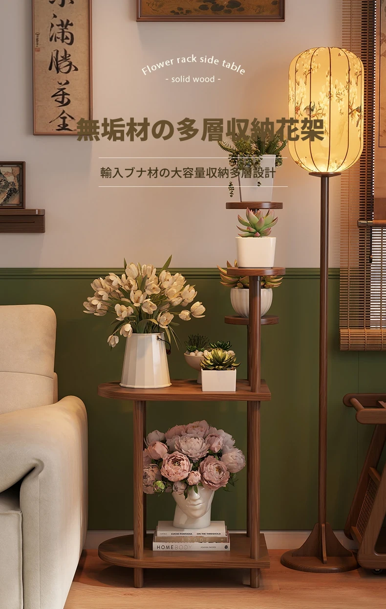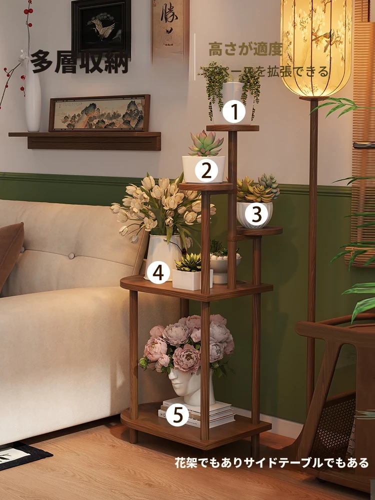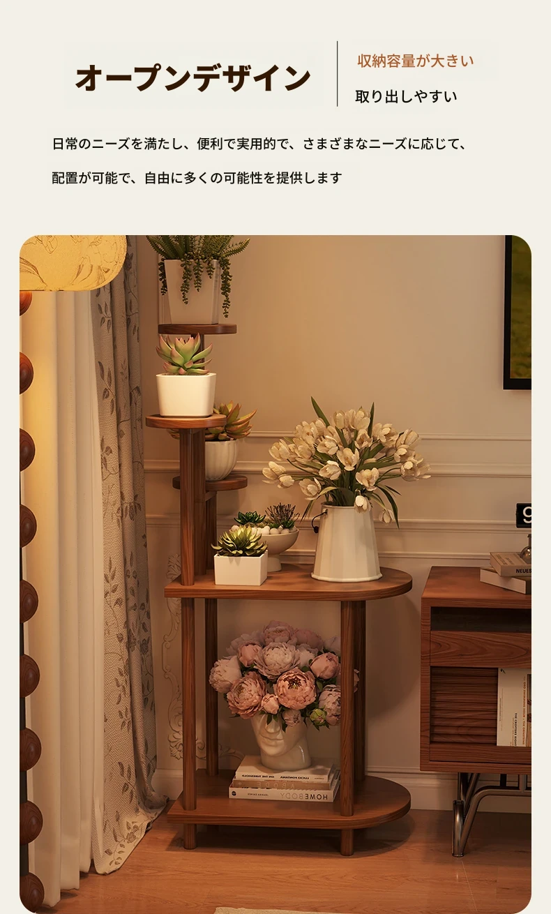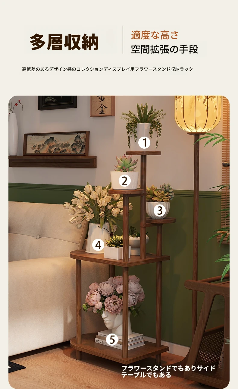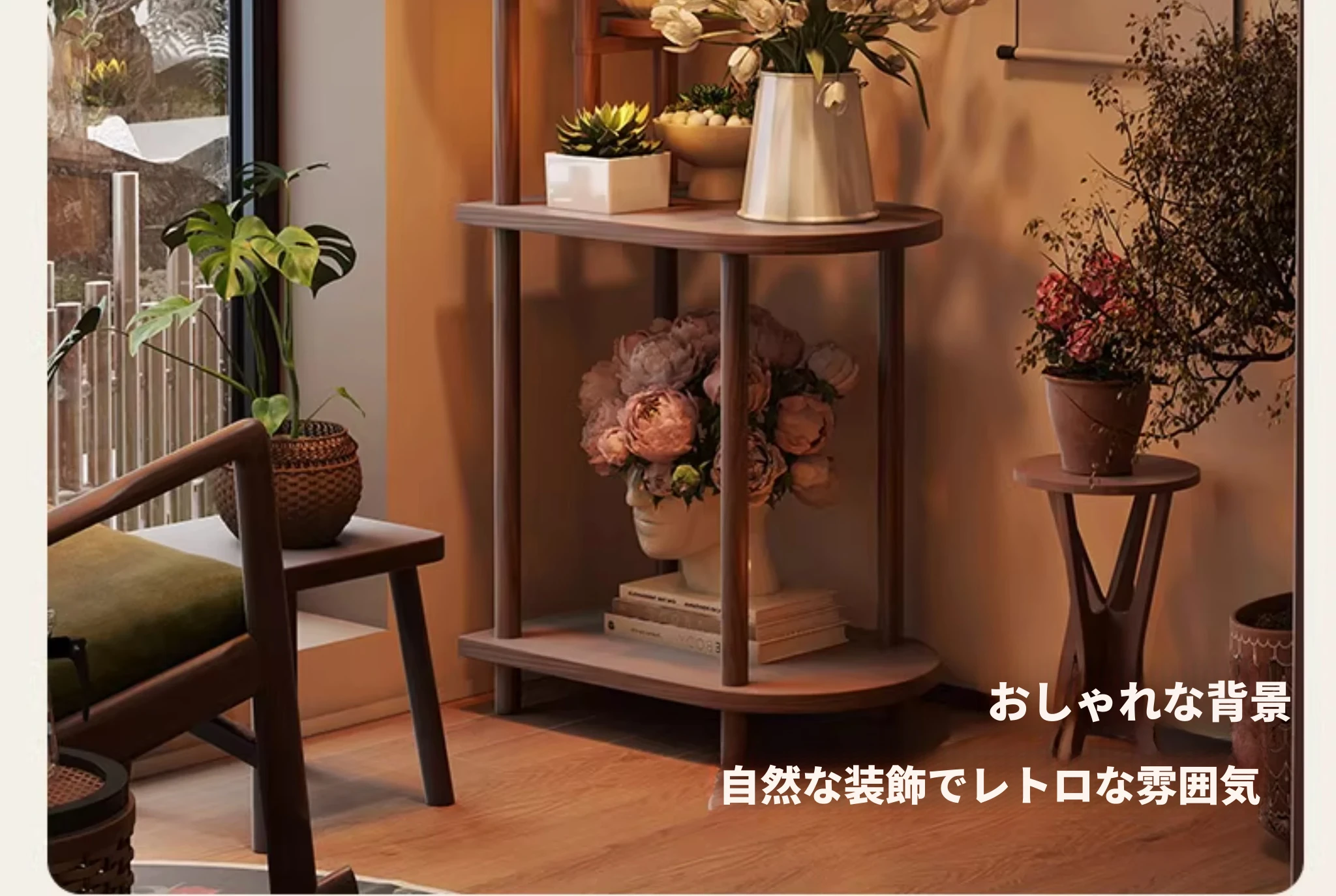 おしゃれなリビング向け!実木製のスタンドフラワーポットトレイ、バルコニーやソファ横にピッタリな多層収納ラック。アウトドアにも最適!お部屋を華やかに彩ります。
