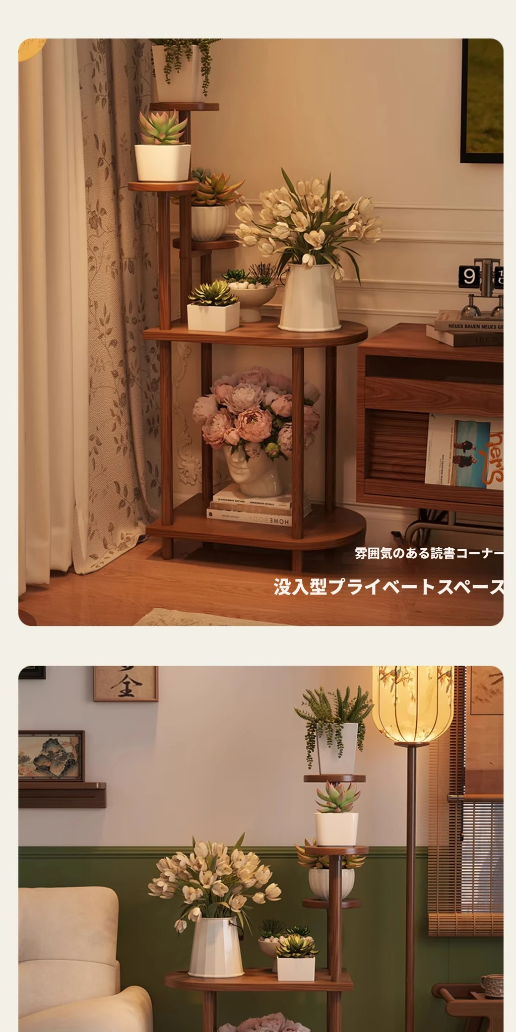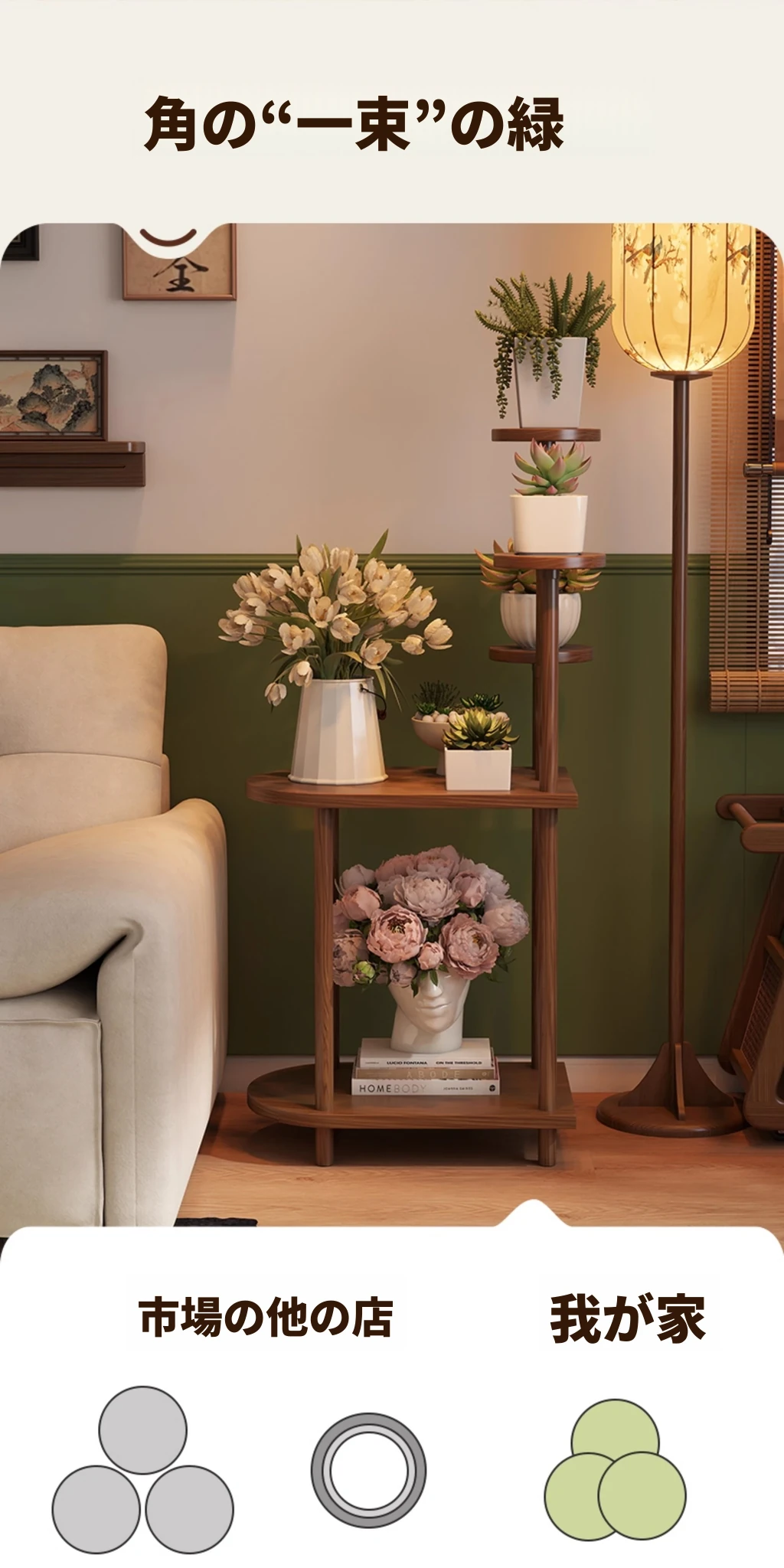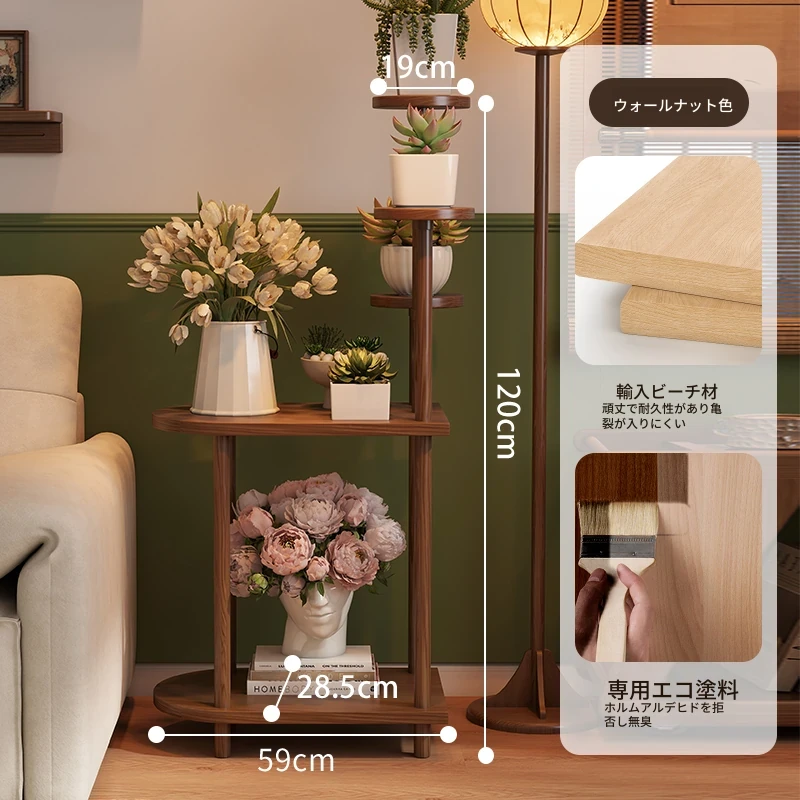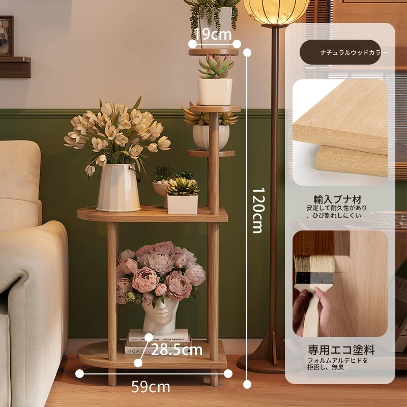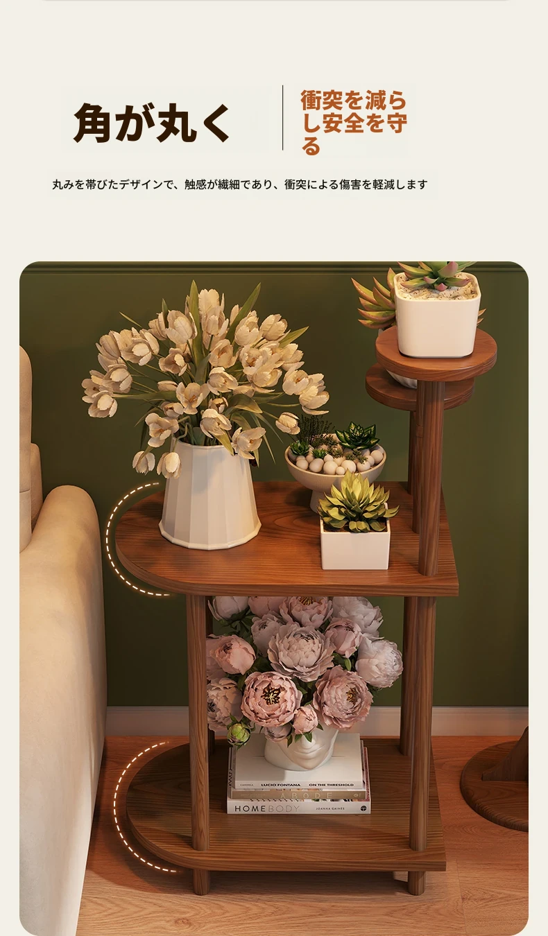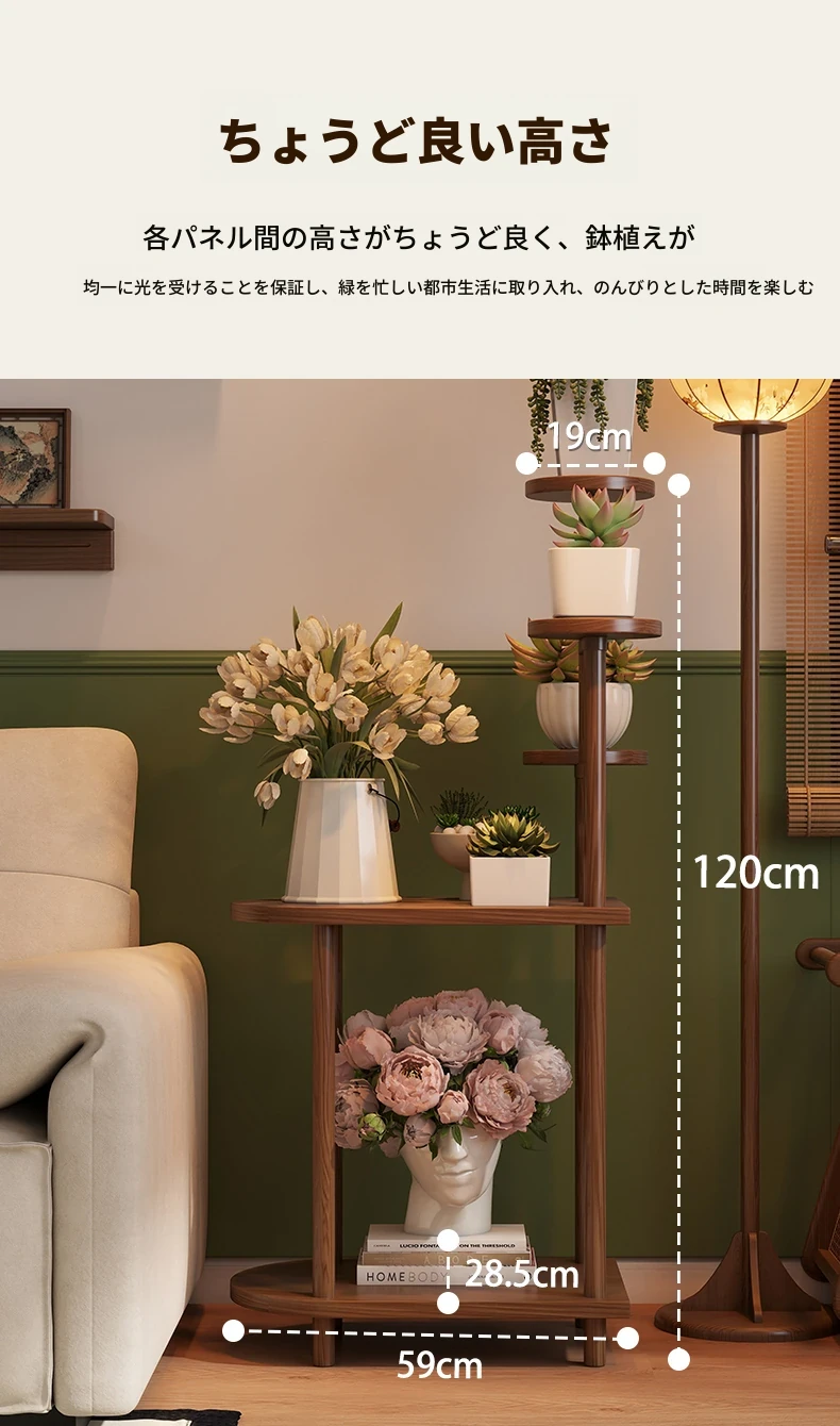 おしゃれなリビング向け!実木製のスタンドフラワーポットトレイ、バルコニーやソファ横にピッタリな多層収納ラック。アウトドアにも最適!お部屋を華やかに彩ります。